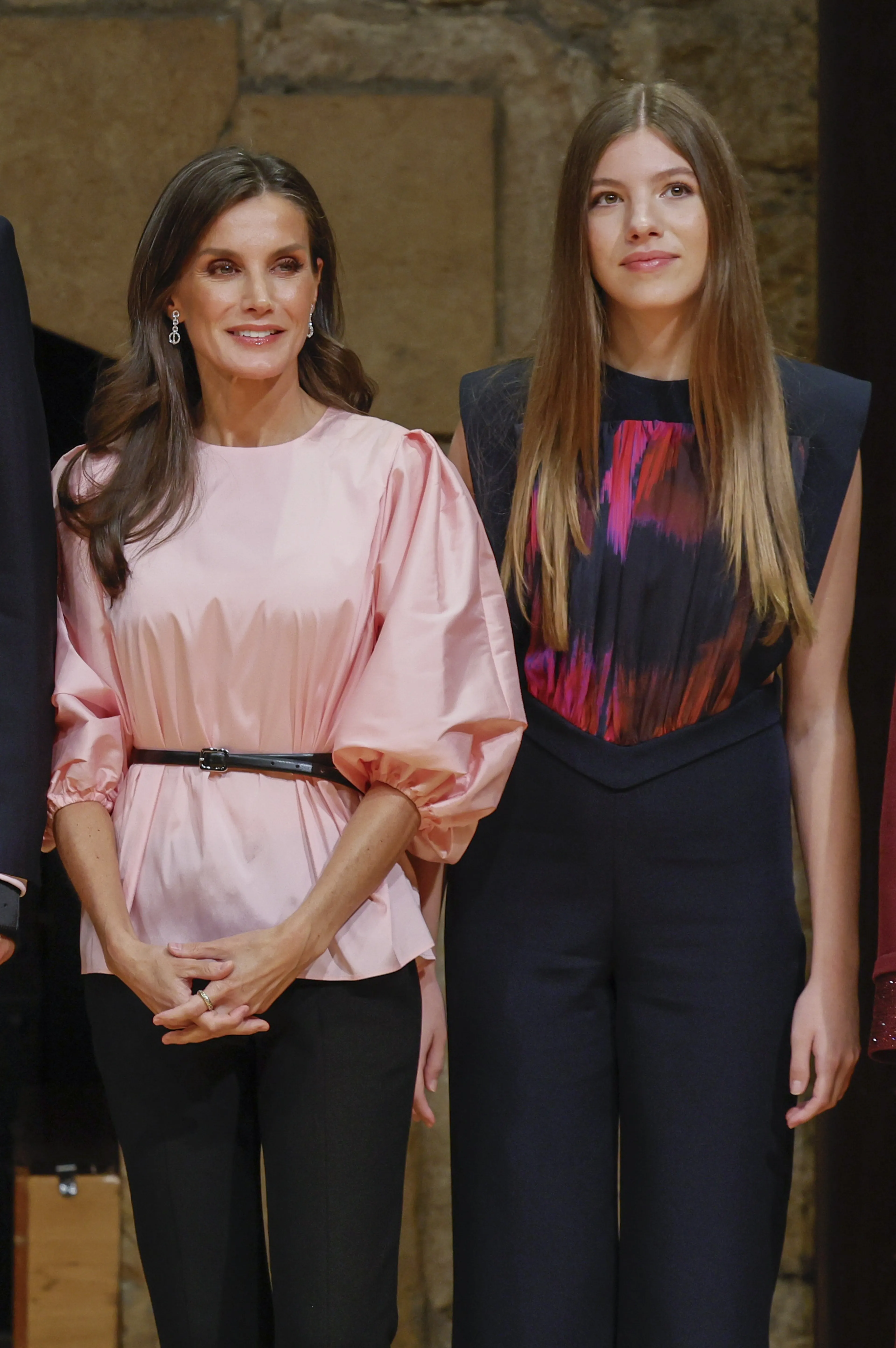 Voor de gelegenheid draagt prinses Leonor een jurkje van het Zweedse H&M en kiest zusje Sofía voor een stijlvolle jumpsuit van het Spaanse merk Cardié Moda.