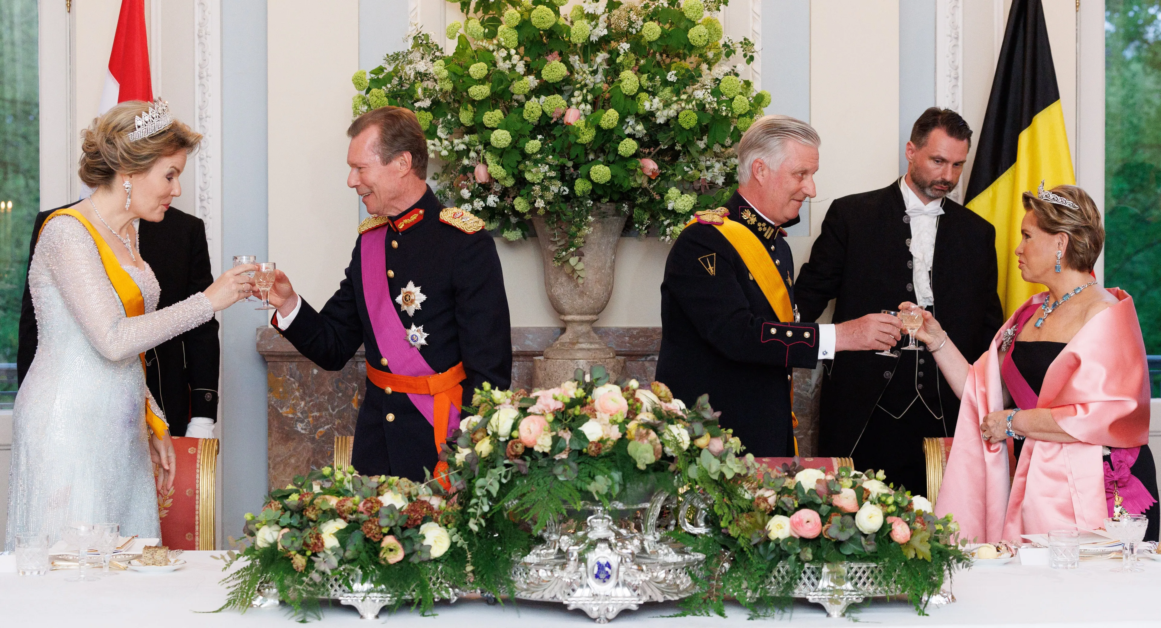 Deze week ontvangen koning Filip en koningin Mathilde van België groothertog Henri en groothertogin Maria Teresa van Luxemburg. Het Kasteel van Laken was gisteravond het toneel voor het staatsbanket ter ere van het Luxemburgse staatsbezoek aan België.