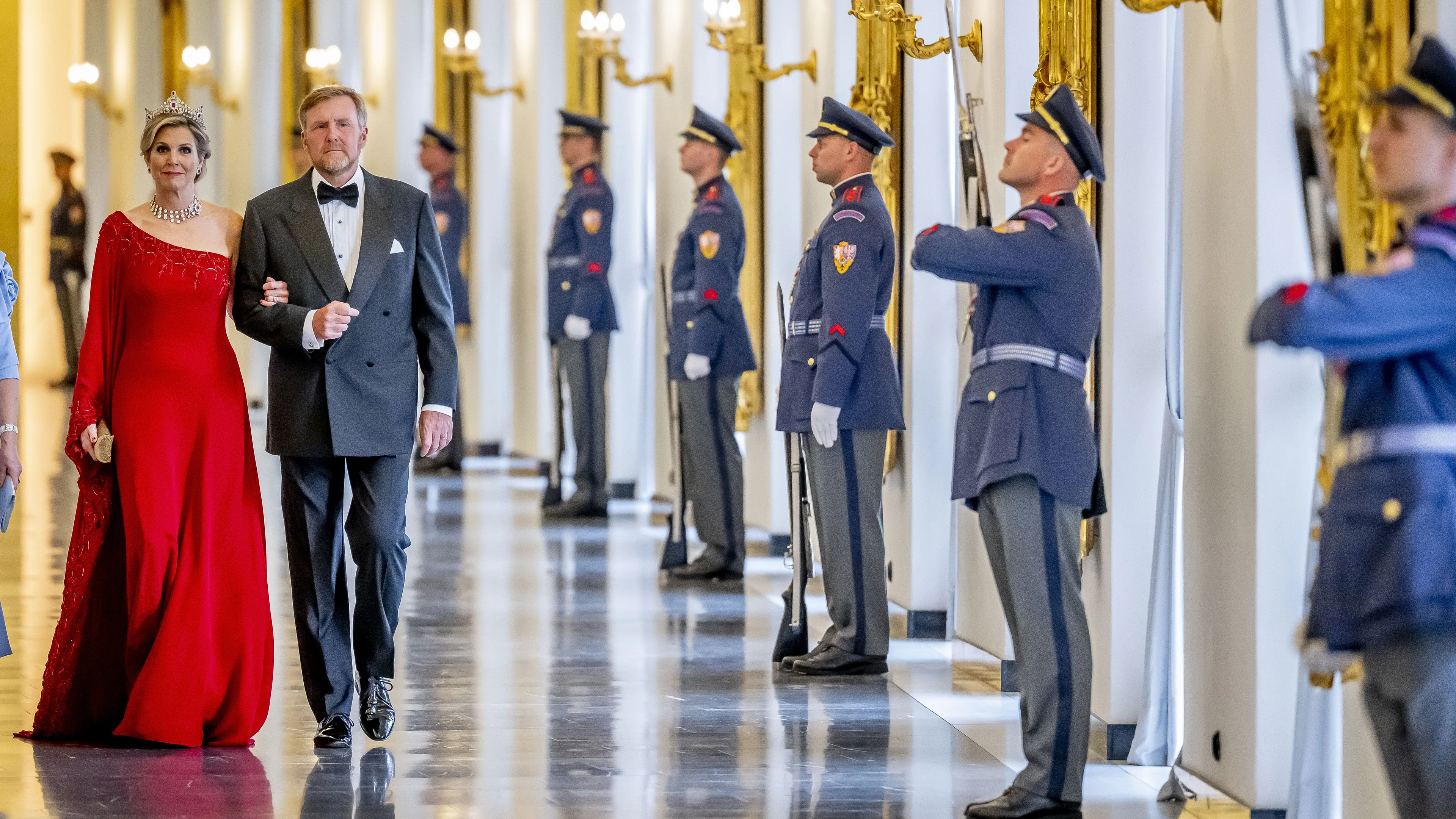 Op uitnodiging van president Pavel en zijn echtgenote arriveren vanavond koning Willem-Alexander en koningin Máxima voor het staatsbanket in de Praagse Burcht. Máxima heeft haar oog laten vallen op een rode galajurk van Jan Taminiau die ze al meerdere keren heeft gedragen, bijvoorbeeld in Italië in 2017. Qua juwelen draagt de koningin de Mellerio parure.
