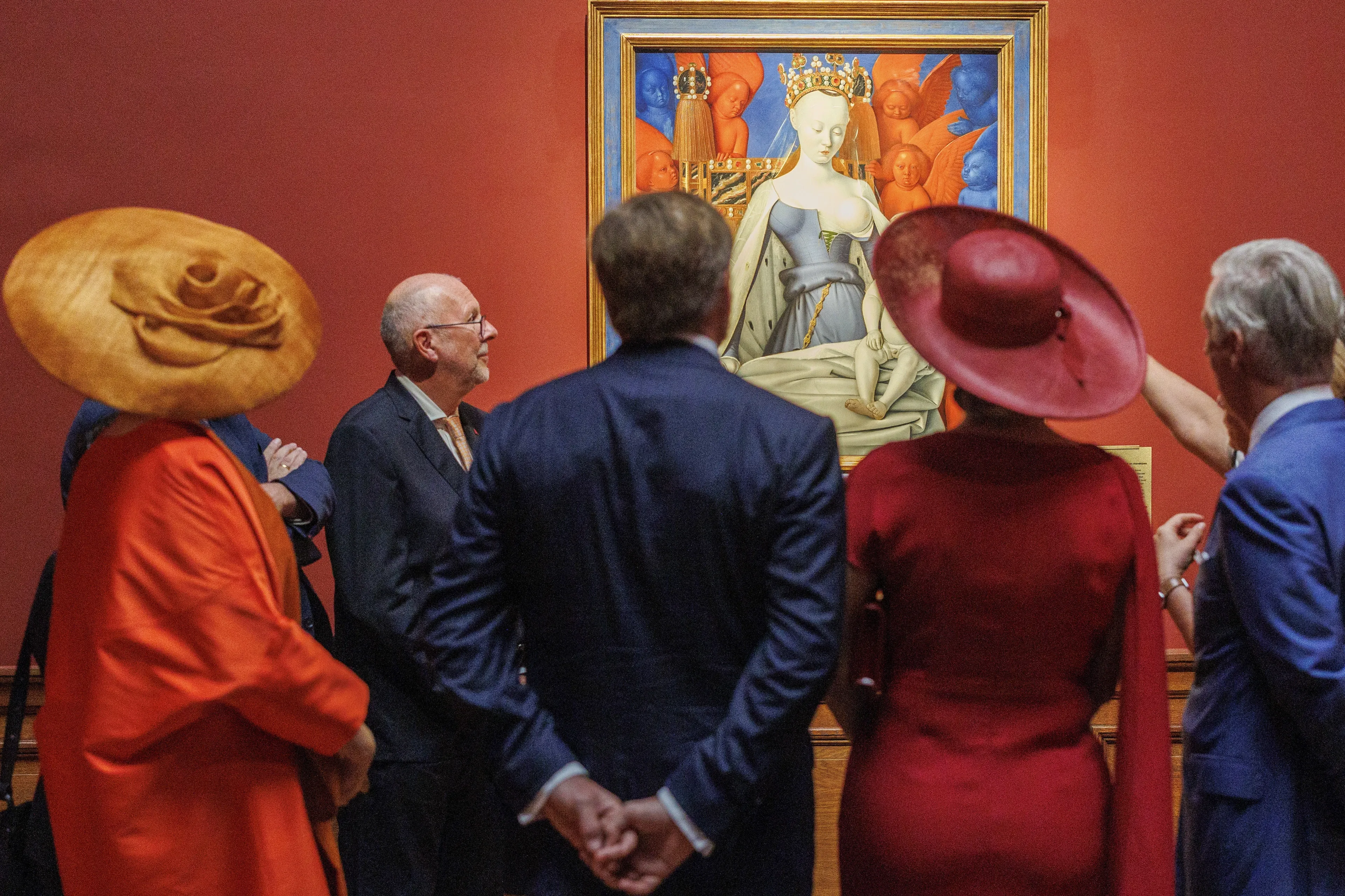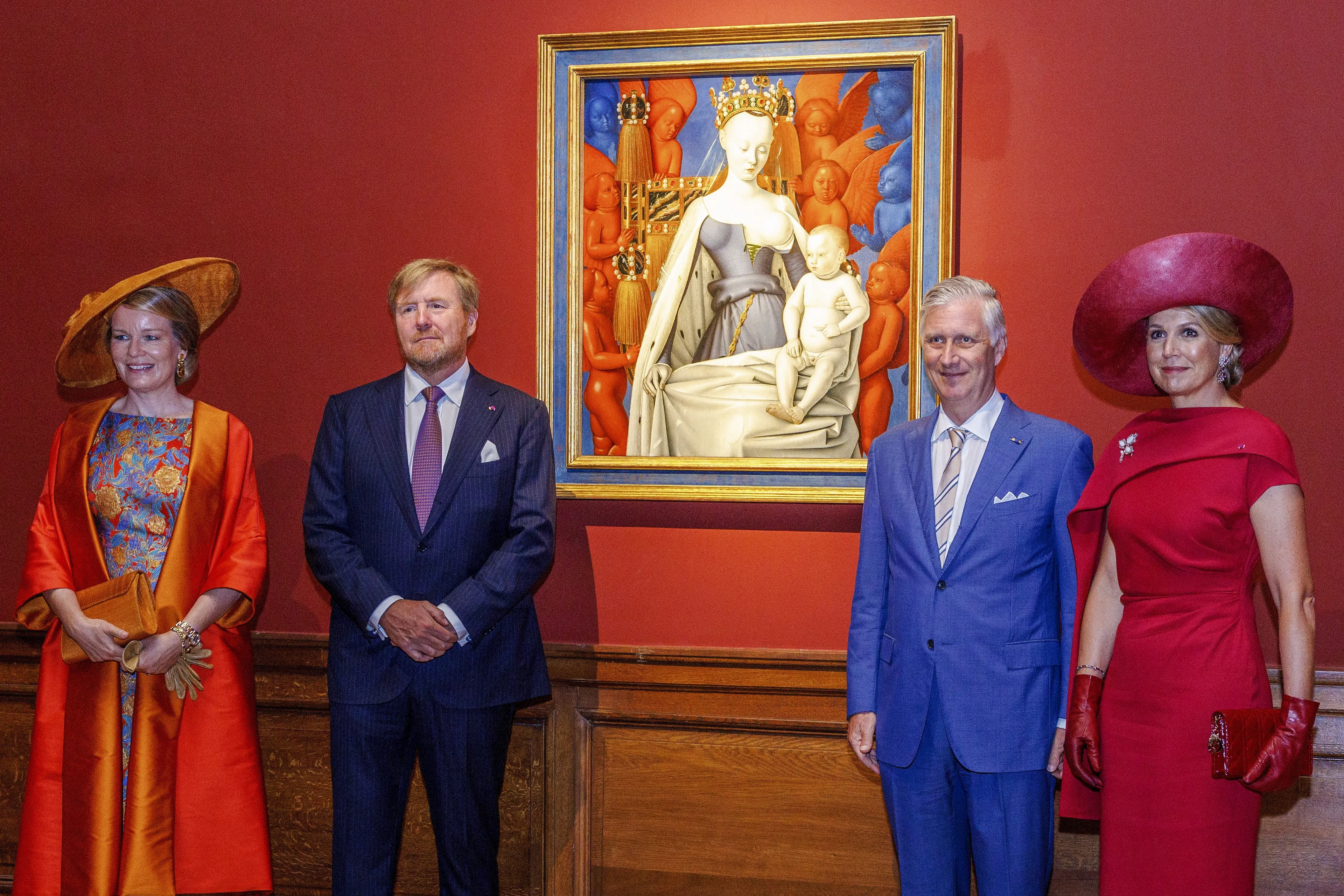 Het Nederlandse en Belgische koningspaar hebben het beroemde werk Madonna van Jean Fouquet bekeken in het Koninklijk Museum voor Schone Kunsten Antwerpen (KMSA).