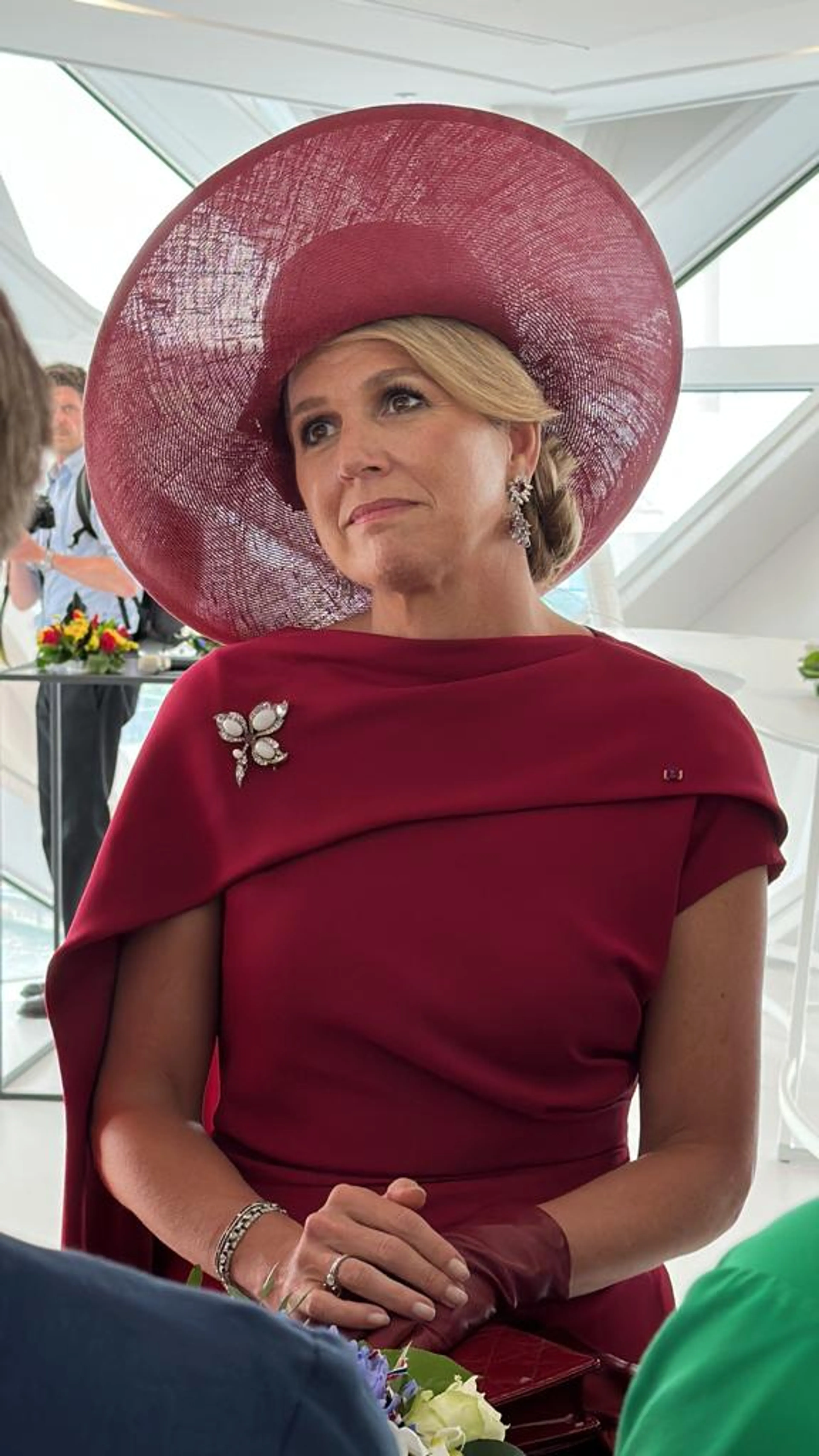 Máxima betrad en verliet het schip als eerste van het gezelschap. Met name de tocht naar beneden op de smalle, wiebelende trap van het schip vormde enigszins een uitdaging. Na gevraagd te hebben of ze het beste voor- of achterwaarts de trap kon af kon, begon de koningin uiteindelijk achterwaarts aan de afdaling. Achteraf was dat iets beter gegaan zonder hakken, zei de koningin, maar daar had ze dit keer niet aan gedacht.