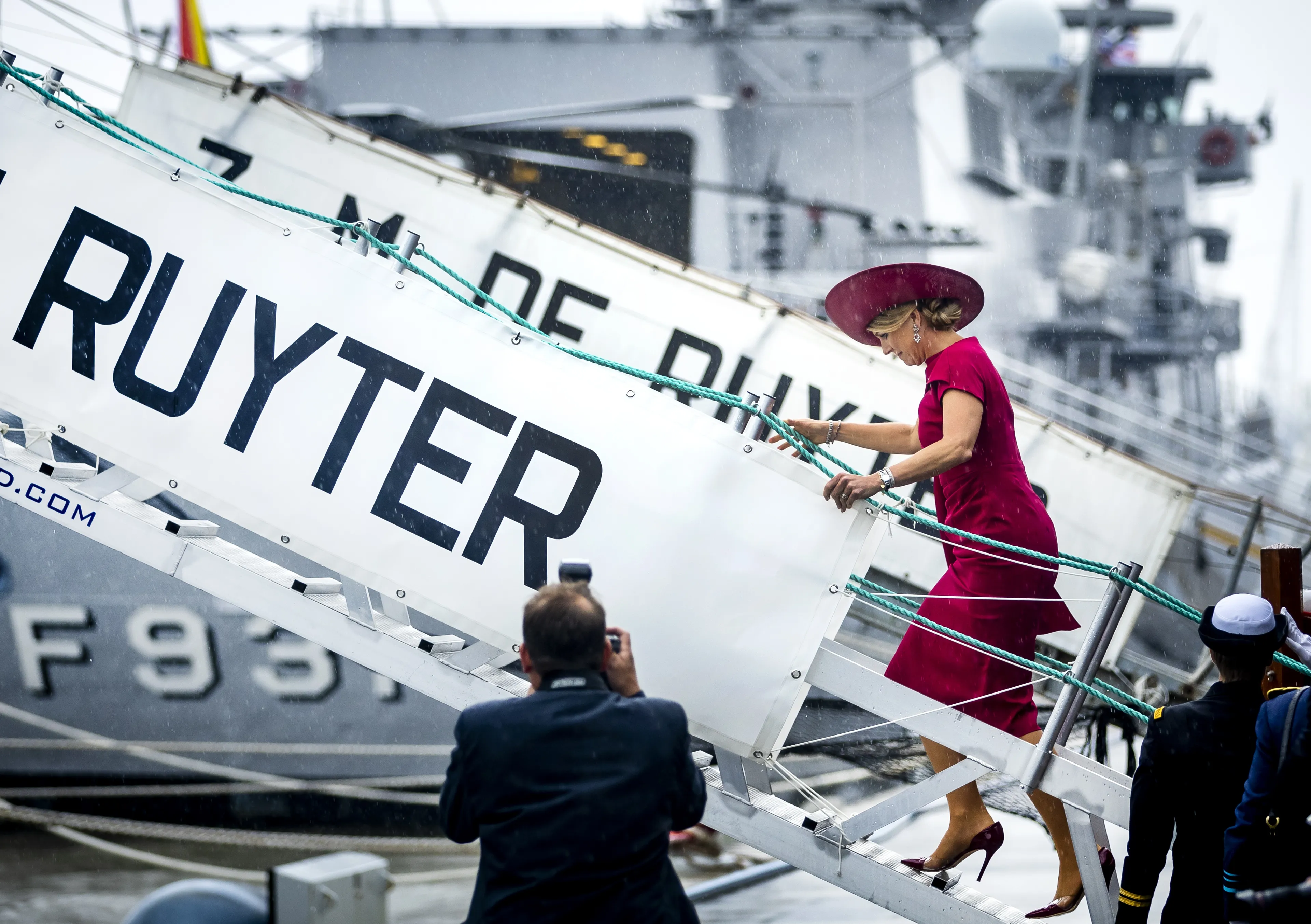 Koningin Máxima had achteraf gezien even andere schoenen aan moeten trekken voordat ze het schip op- en afging. Dat zei de koningin, die hoge hakken droeg, na afloop van het bezoek tegen een aantal aanwezigen