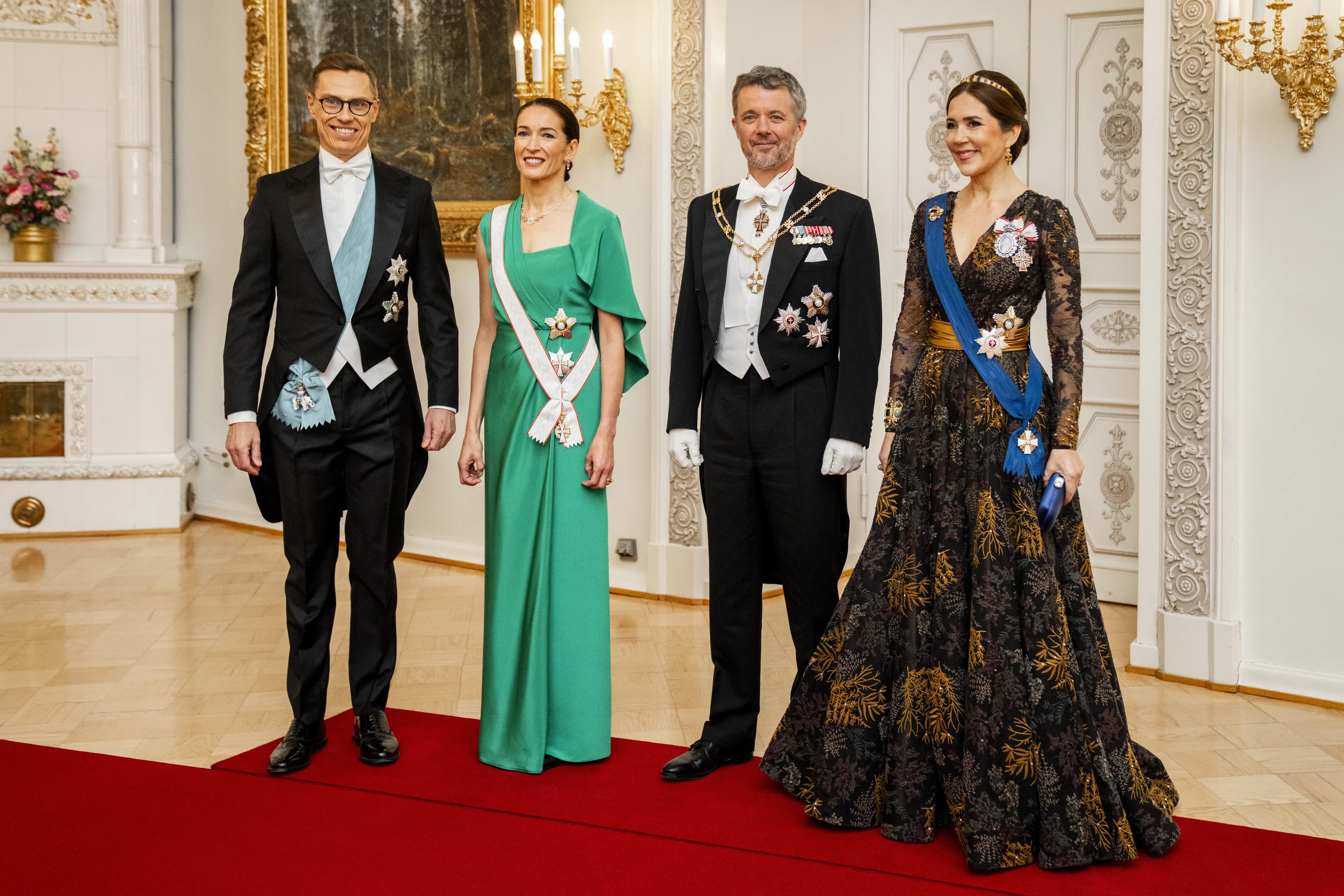 Niet alleen in het presidentiële paleis op Cyprus schitterde dinsdagavond een koningspaar tijdens een staatsbanket. Ook in Helsinki, Finland haalden koning Frederik en koningin Mary hun galakleding uit de kast. Het Deense koningspaar is op dinsdag 4 en woensdag 5 maart in het land voor een staatsbezoek aan president Alexander Stubb en zijn echtgenote Suzanne Innes-Stub.