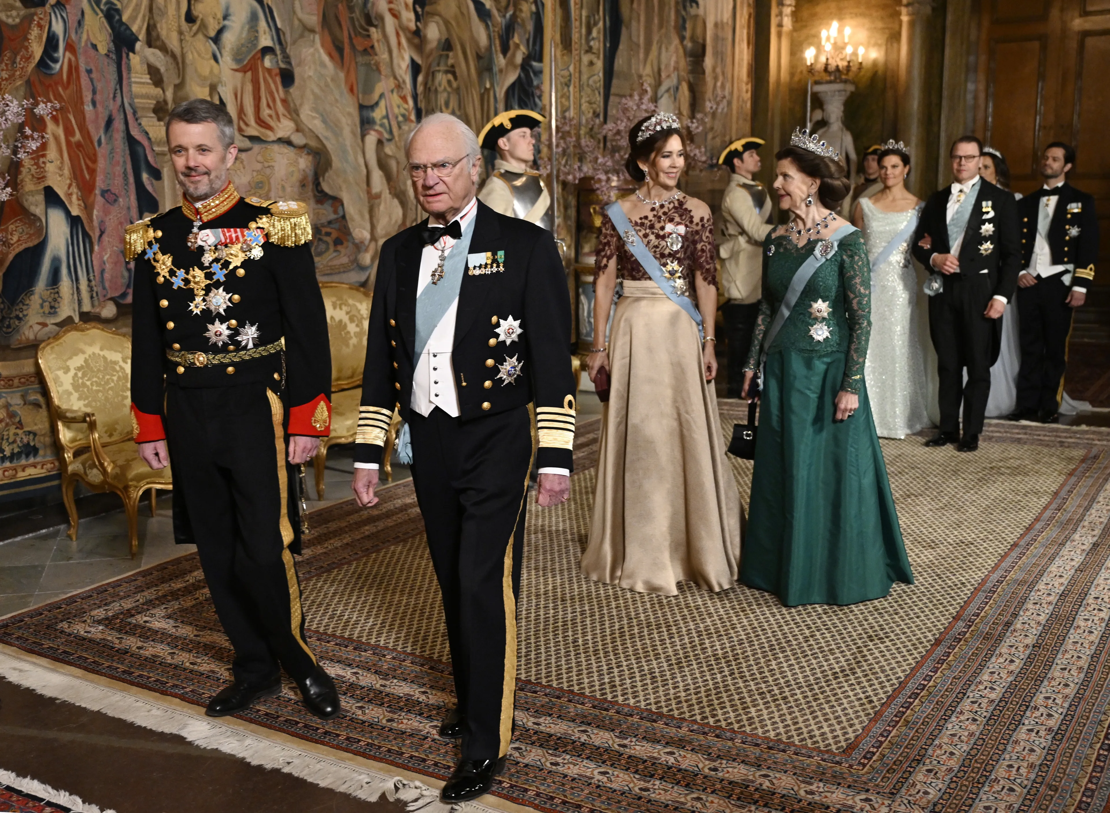 De eerste dag van het staatsbezoek werd afgesloten met een staatsbanket vol glitter en glamour. Tijdens de avond gaf koning Carl Gustaf welgemeend advies aan koning Frederik. In zijn toespraak bij het staatsbanket zei Carl Gustaf tegen Frederik dat het belangrijk is om ook als koning te blijven lachen. "Ik denk dat het belangrijk is om te midden van de verantwoordelijkheden als staatshoofd jezelf toe te staan om te lachen. Want juist deze momenten geven je de kracht en energie om door te gaan. Een goedbedoeld advies van mij", aldus de Zweedse koning.