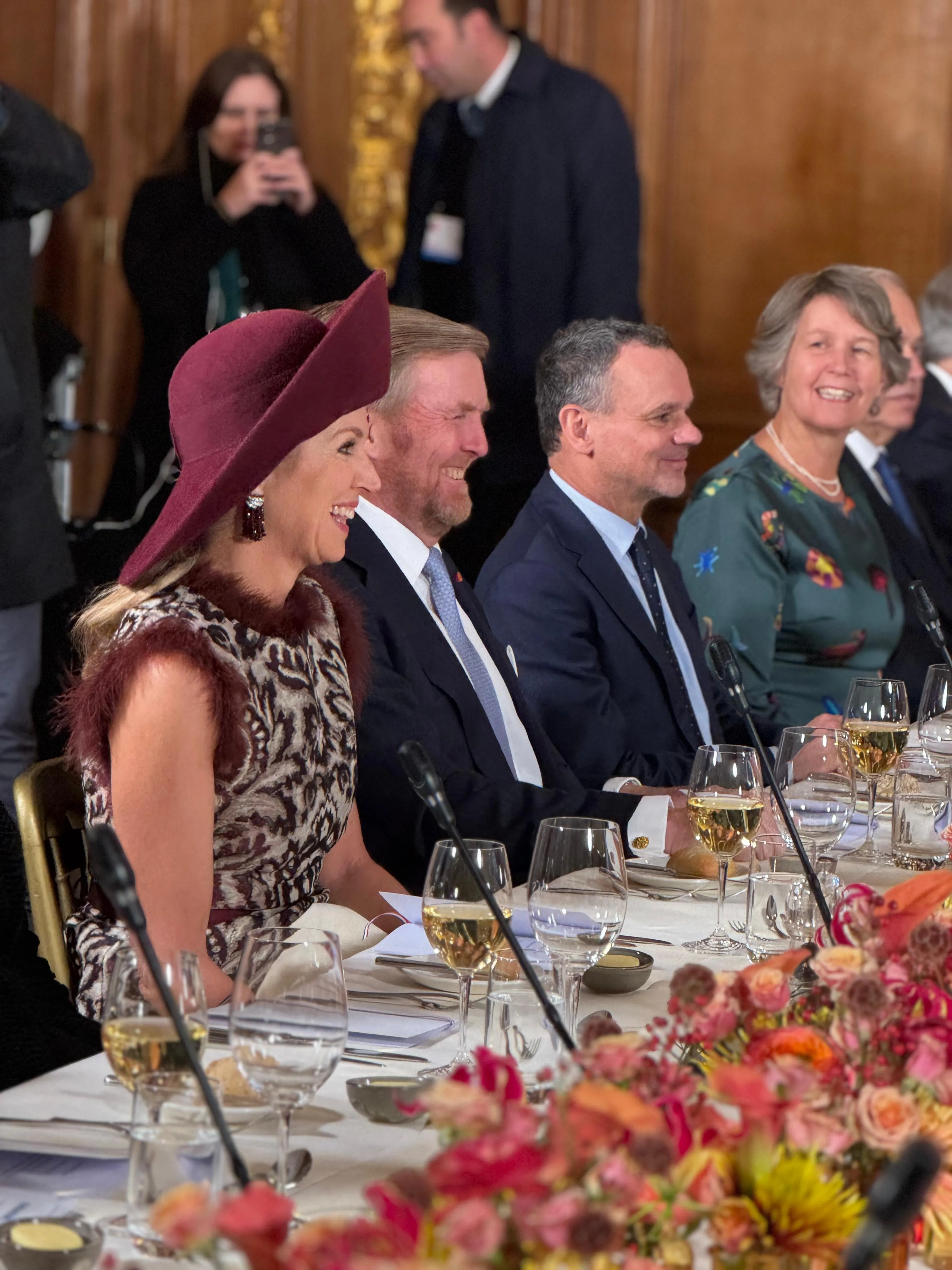 De eerste dag van het staatsbezoek wordt in stijl afgesloten met een staatsbanket. Ook prinses Amalia schuift aan. Op de eerste foto's is te zien dat de prinses schittert in een feestelijke japon.