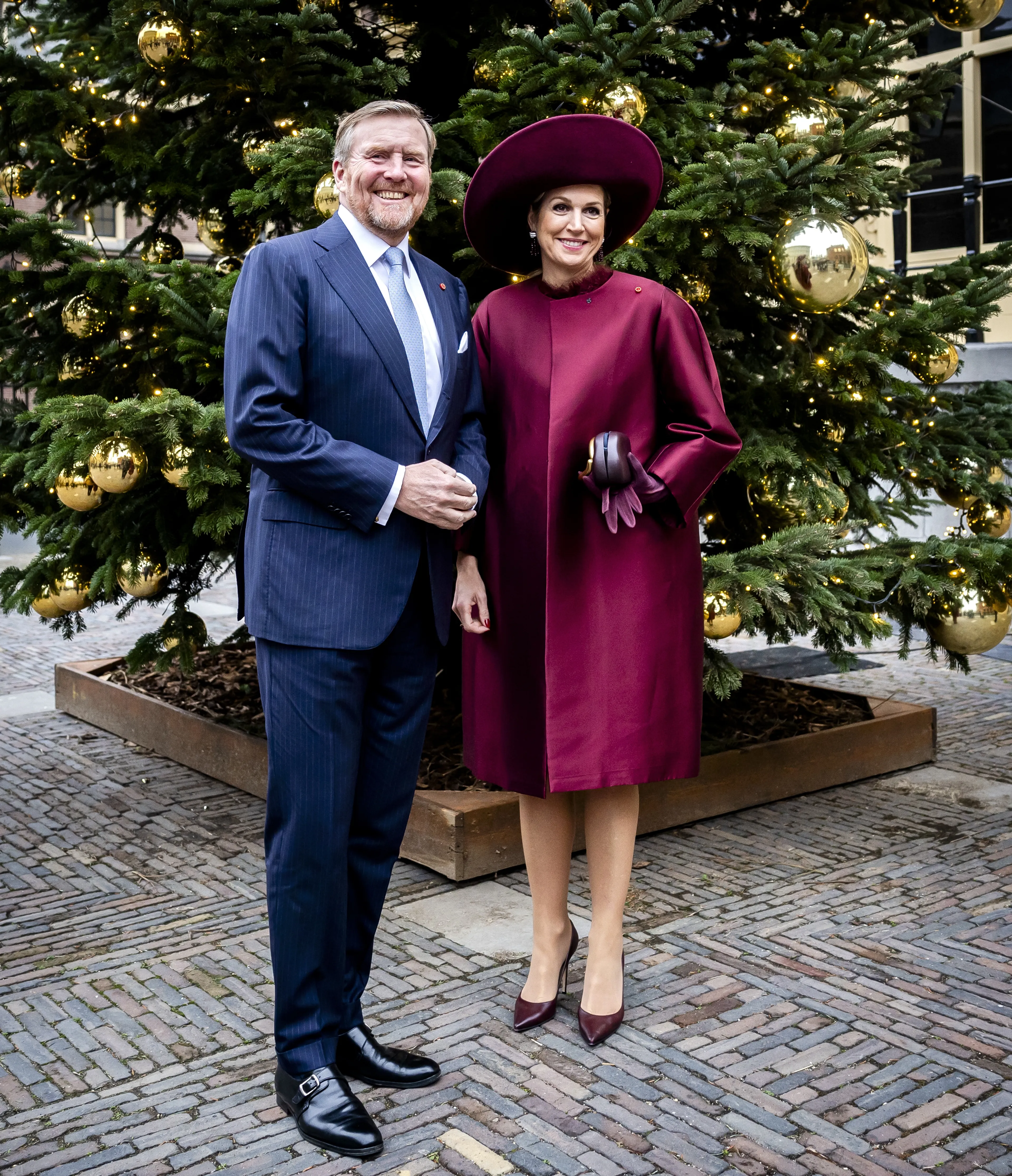 Koningin Máxima kiest vandaag voor een bordeauxrode zijden mantel van modehuis Natan, met bijpassende hoed van Fabienne Delvigne. Daaronder draagt ze een mouwloze japon met ingeweven dessin aan de halslijn, rond de armgaten en aan de onderzijde een rand van tule. De combinatie droeg ze al eens eerder, onder andere tijdens een streekbezoek aan de regio Eemland.