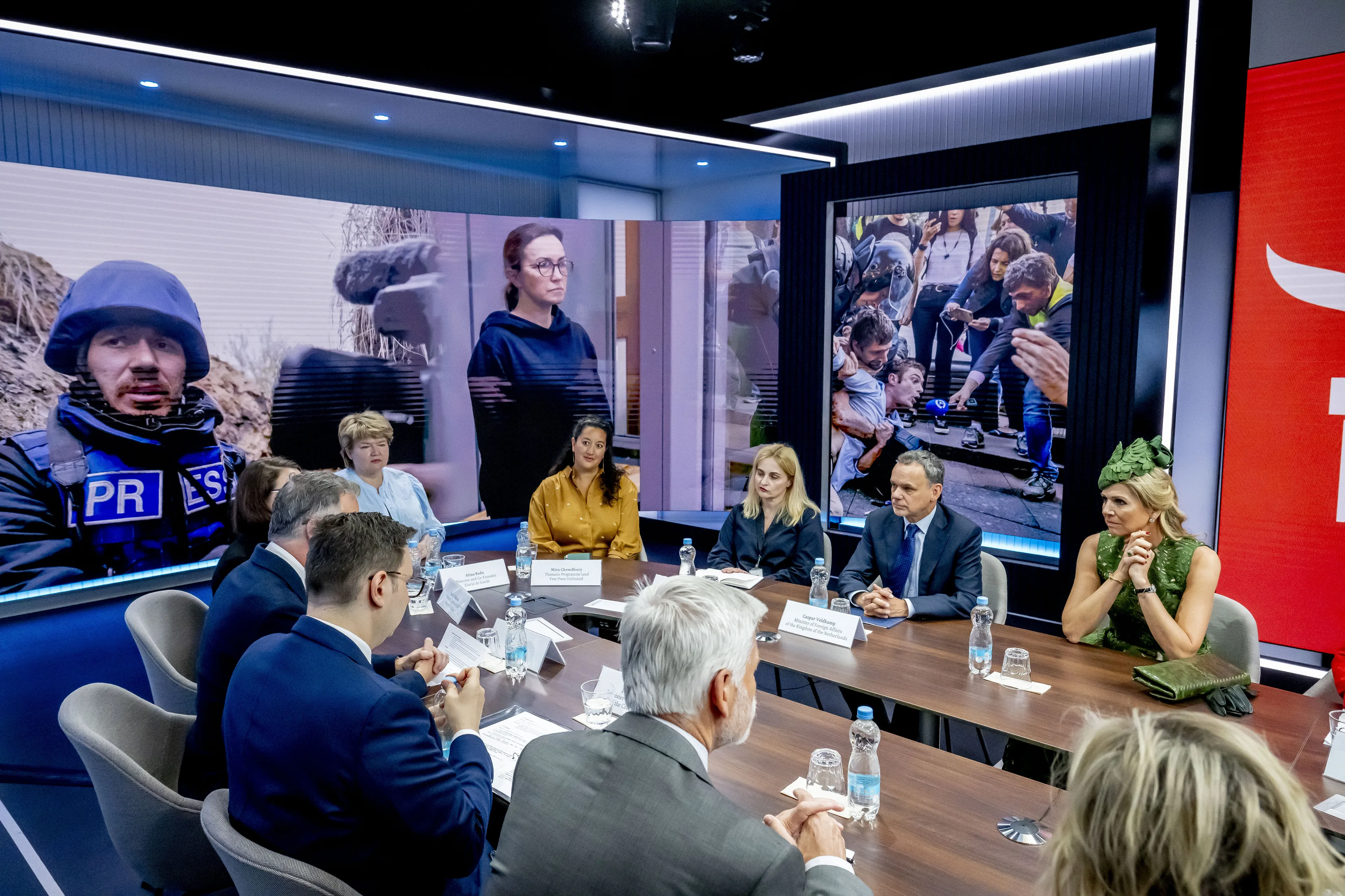 In de middag bezoekt de koningin samen met de president en zijn vrouw Free Europe/Radio Liberty. Dit is een organisatie die zich inzet voor onafhankelijk nieuws op plekken waar de journalistiek onder druk staat. Het belang van persvrijheid wordt ook besproken tijdens het bezoek. In het persgesprek geeft de koningin aan onder de indruk te zijn. "Het ongelofelijke doorzettingsvermogen van al die journalisten, die met heel veel weerstand hun job proberen te doen."s.