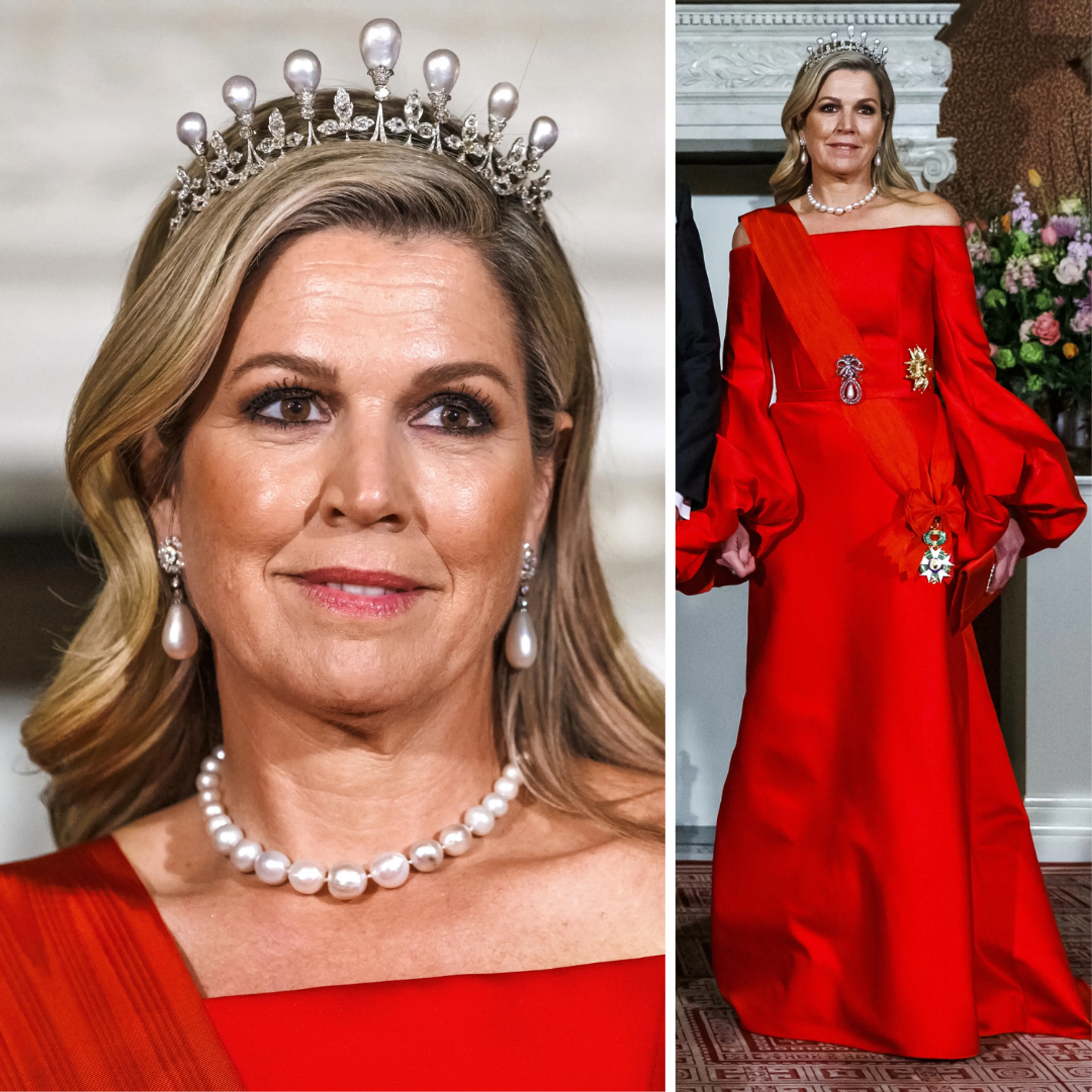 #3 De nieuwe rode galajurk van Claes Iversen. Tijdens het inkomende staatsbezoek van Frankrijk aan Nederland in april trok koningin Máxima deze nieuwe rode galajurk van Claes Iversen aan voor het staatsbanket.