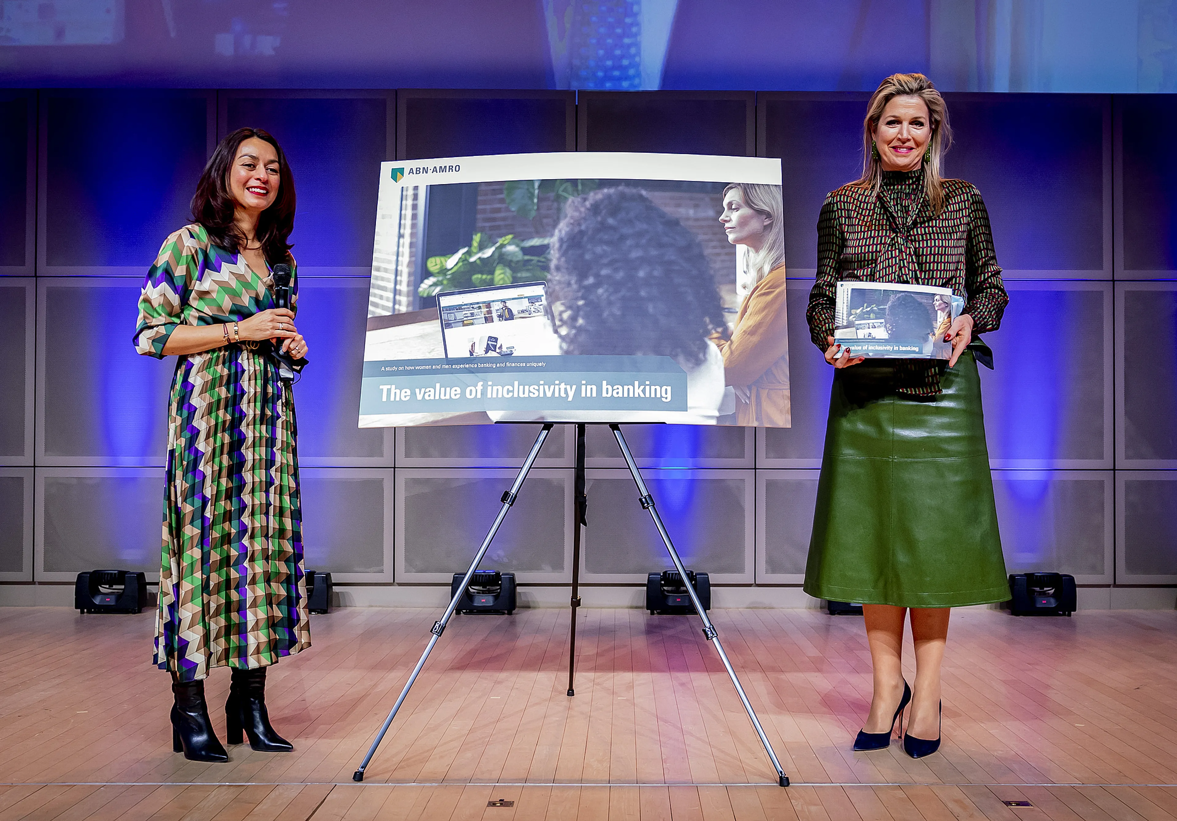 Het waaide behoorlijk toen koningin Máxima woensdagmiddag bij de presentatie van het onderzoek 'Het belang van inclusiviteit bij financiële dienstverlening' aankwam. De presentatie werd gedaan door ABN AMRO, samen met McKinsey en Better Future. In het onderzoek concludeert de bank onder meer dat vrouwelijke ondernemers meer moeite hebben met het aantrekken van kapitaal dan mannen. De koningin nam op het hoofdkantoor van ABN AMRO het eerste exemplaar in ontvangst