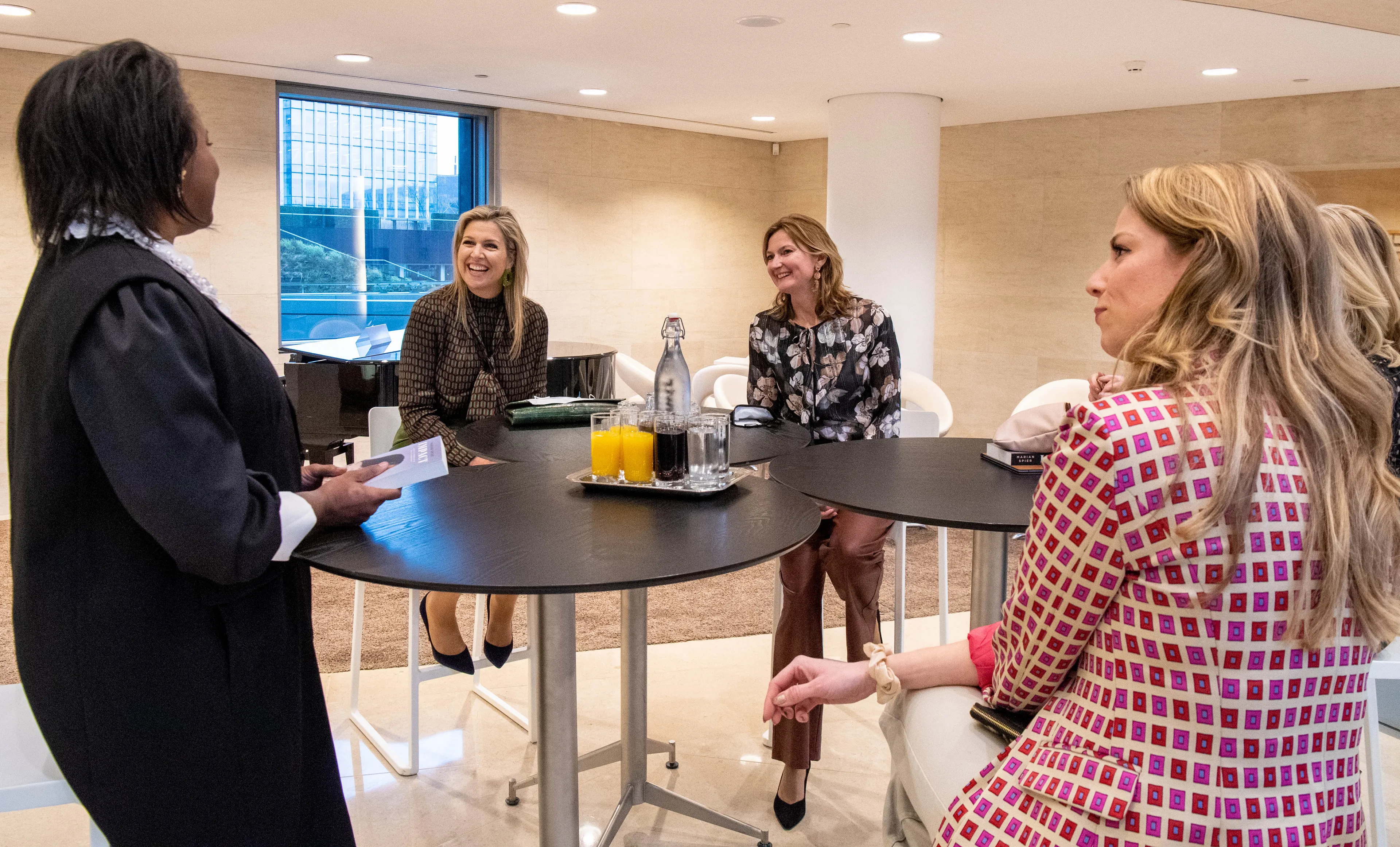 De koningin sprak de genodigden toe in haar rol als speciale pleitbezorger van de secretaris-generaal van de Verenigde Naties voor inclusieve financiering voor ontwikkeling (UNSGSA). Sinds 2009 zet zij zich wereldwijd in om financiële diensten voor iedereen toegankelijk te maken en hiermee hun kansen op ontwikkeling te vergroten.