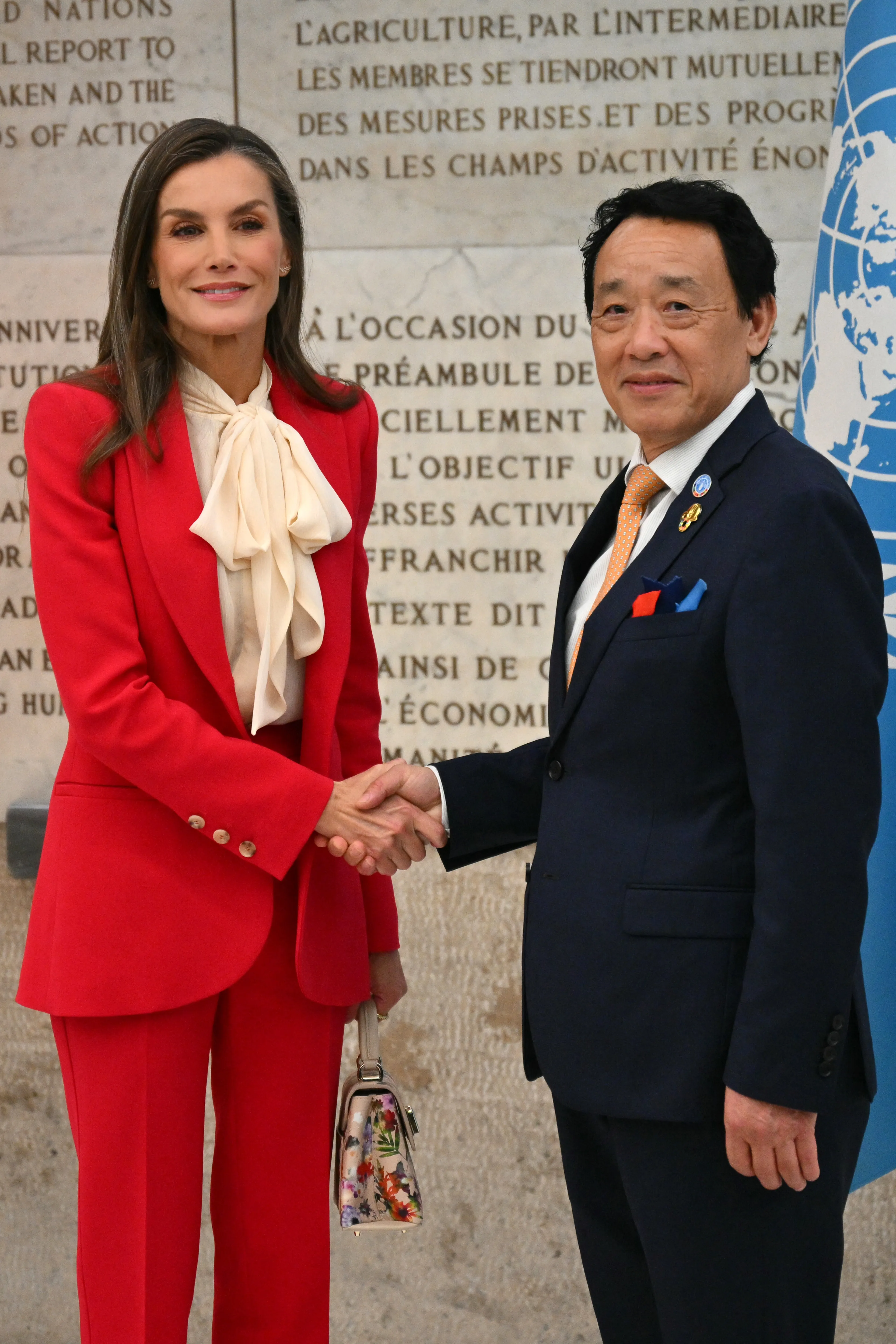 Afgelopen donderdag droeg de Spaanse koningin Letizia in Rome een van haar favoriete kledingstukken: een vuurrood pak van Carolina Herrera. Onder dat pak pronkt een roomwitte blouse mét een grote striksluiting. Daarmee geeft Letizia een vrouwelijke touch aan een zakelijk en statig pak. De gelegenheid van het bezoek was overigens de Wereldvoedseldag in Rome waar de Spaanse ook Paus Leo XIV ontmoette.