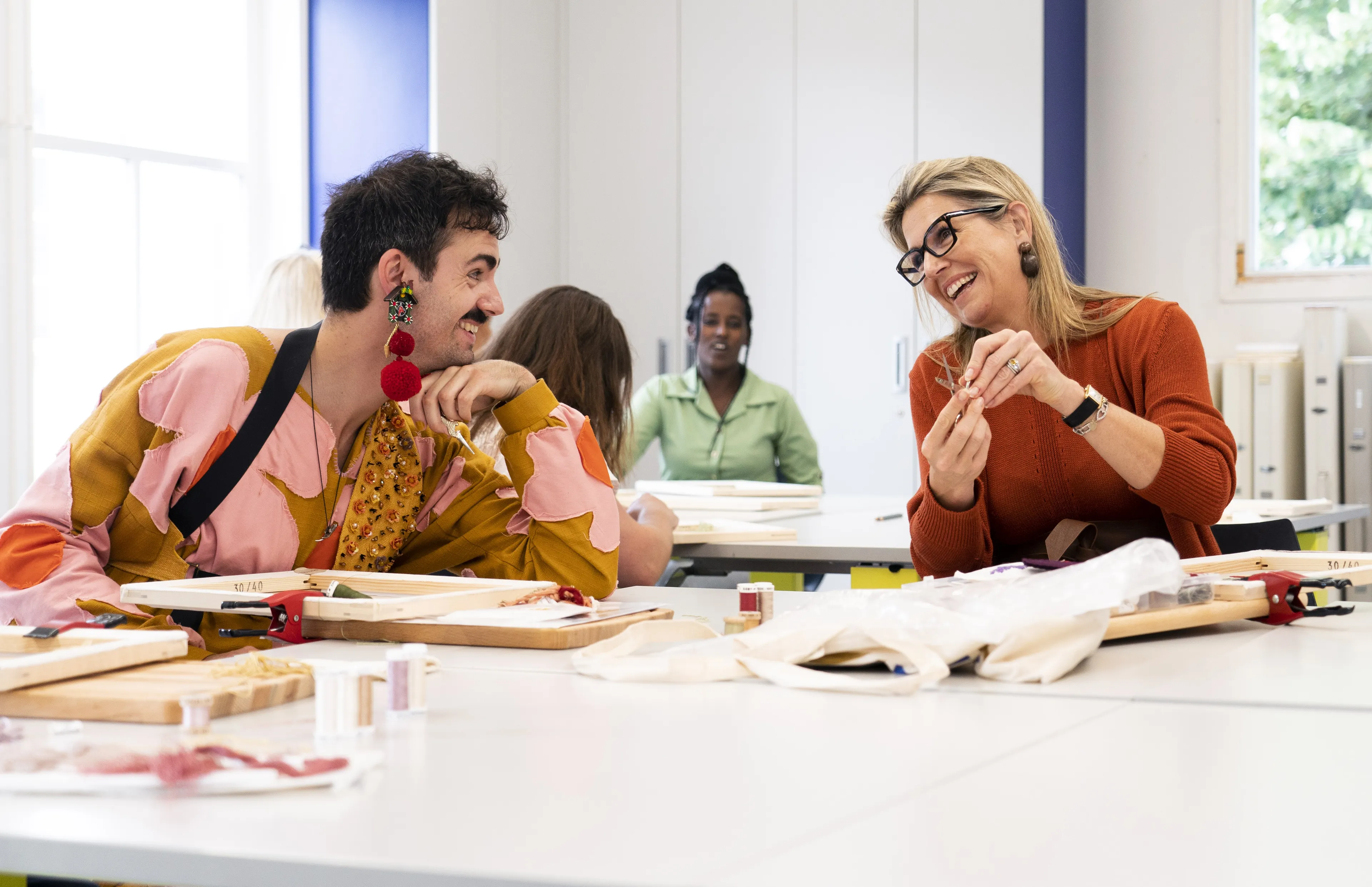 In juni was Máxima ook al eens in het TextielMuseum. Ze hielp toen de handwerkers van de organisaties Queer Needlework Circle uit Arnhem en het Pennywafelhuis uit Middelburg. Het was een wens van de koningin om de gordijnen samen met alle Nederlanders te maken. Aangezien dat een beetje ingewikkeld was, zijn zo'n 150 mensen uit alle lagen van de samenleving geselecteerd. Máxima zei toen dat de gordijnen "nóg mooier" worden dan ze "ooit had verwacht".