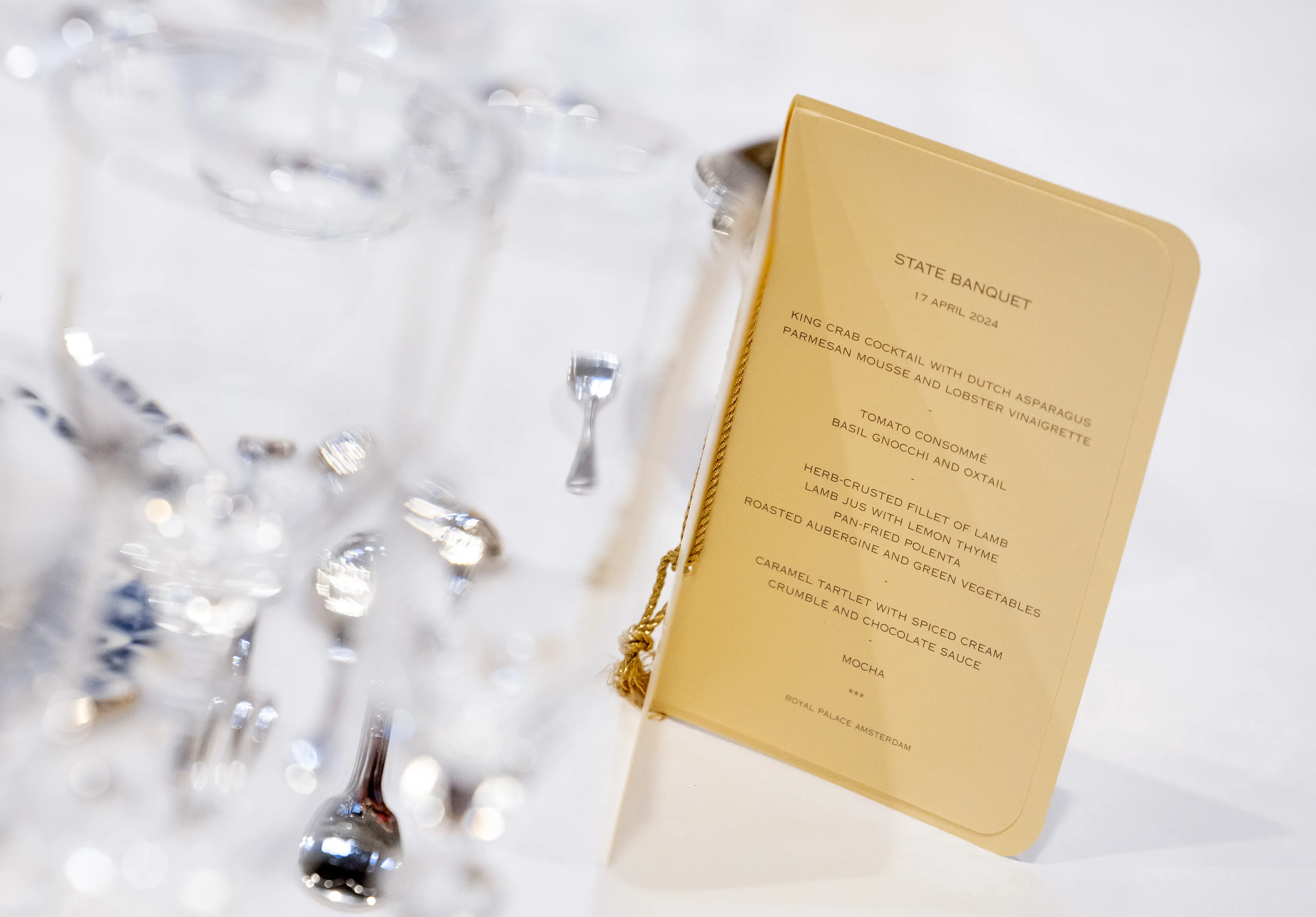Andere onderdelen van een koninklijke kersttafel zijn wijnglazen en een menukaart met daarop de gerechten die je serveert. "Zoals de meeste mensen wel weten, gebruik je het bestek van buiten naar binnen. En aan het bestek kun je ook heel goed zien welke gerechten er aankomen." Als je graag wijn drinkt, weet je misschien wel dat een kleiner wijnglas voor witte wijn is en dat rode wijn in een groter wijnglas wordt geschonken. "Het rode wijnglas hoort altijd boven het mes van het hoofdgerecht te staan."