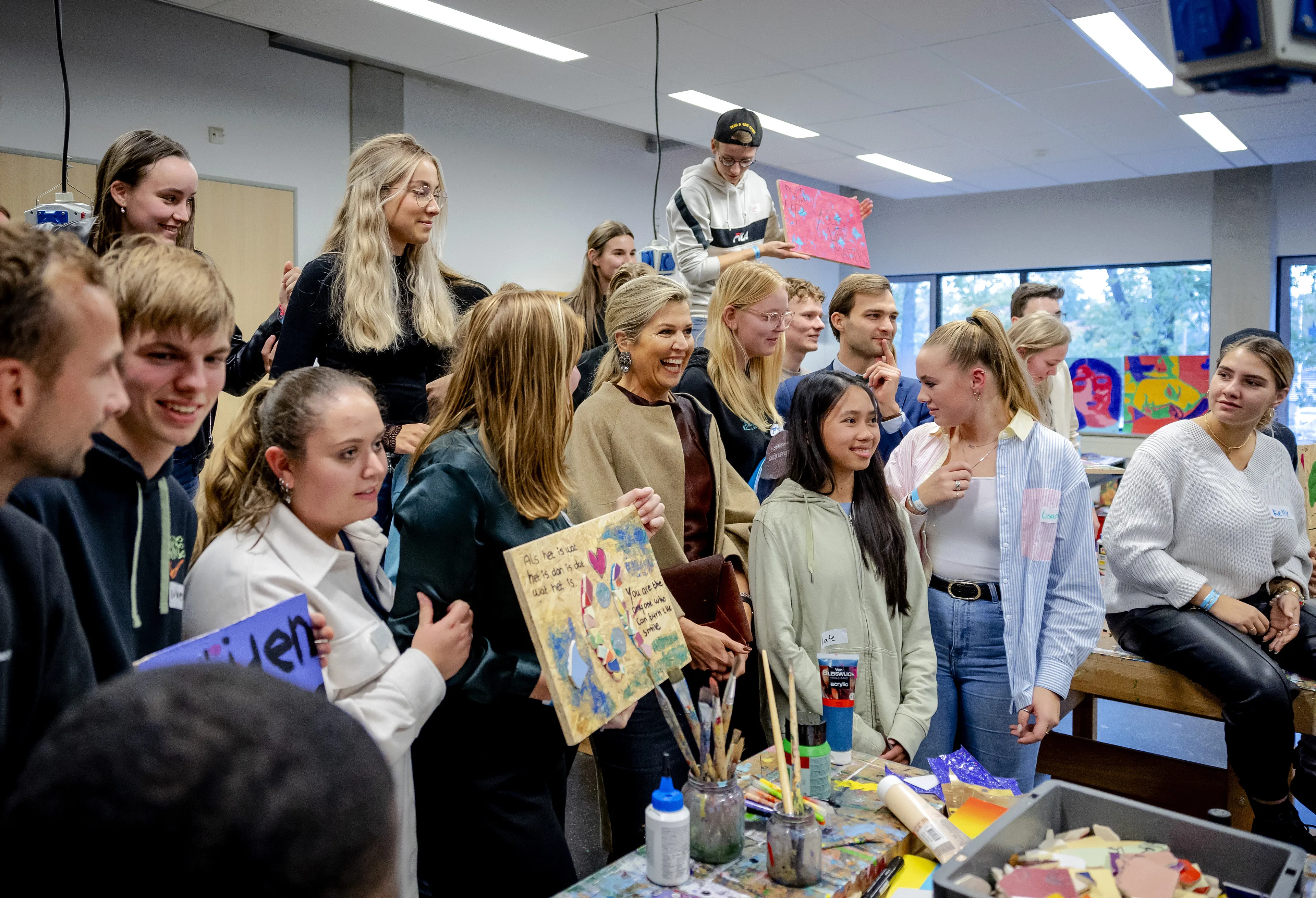 Koningin Máxima, net terug van een driedaags staatsbezoek aan Griekenland, was donderdagmiddag samen met staatssecretaris Maarten van Ooijen (Volksgezondheid, Welzijn en Sport) bij de 'Young Impact take-over' van ROC Friese Poort in Emmeloord. De jongerenbeweging Young Impact organiseerde een projectdag voor de hele school. Het bezoek stond donderdag onder meer in het teken van de mentale gezondheid van jongeren.