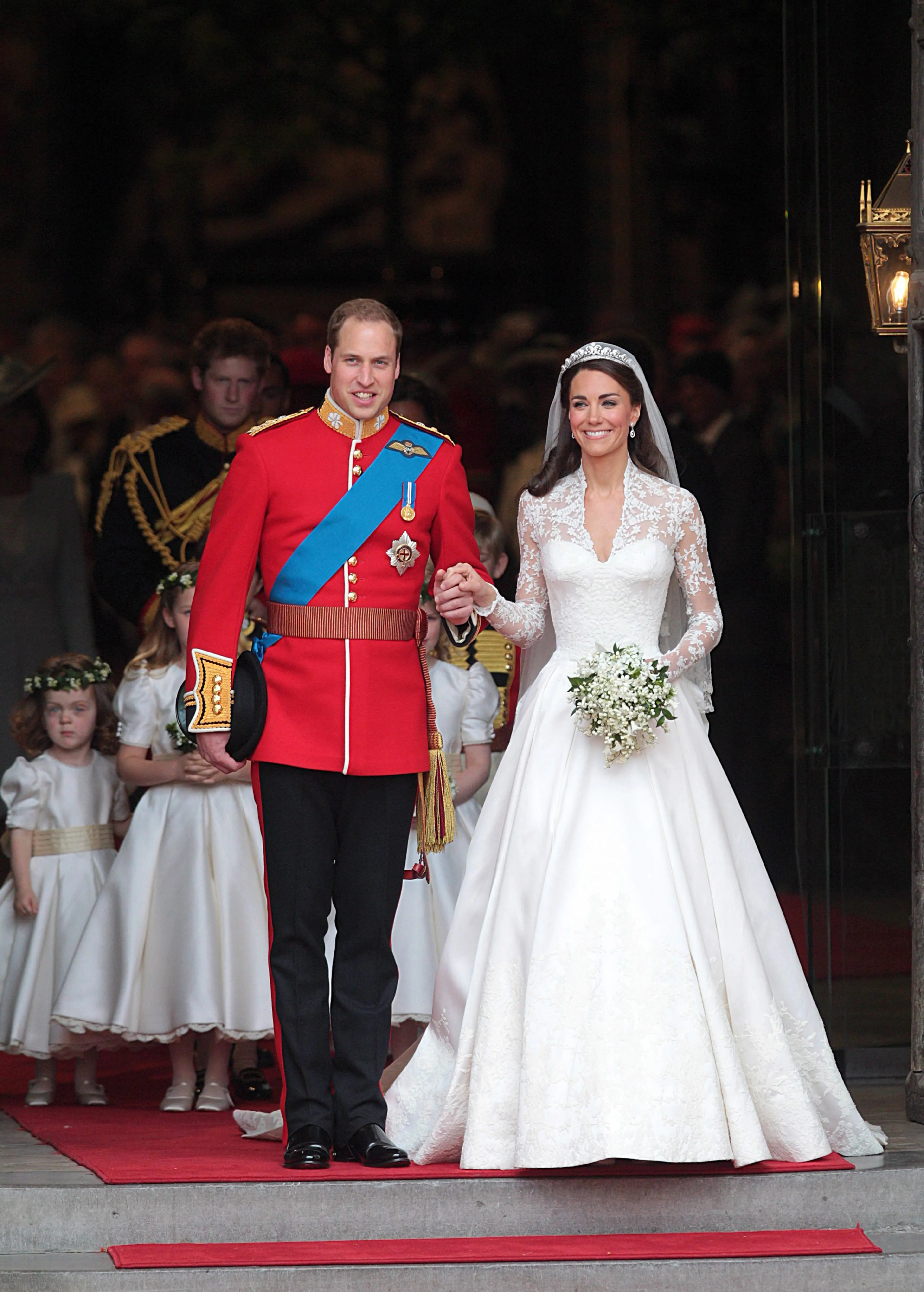 Het huwelijk vindt plaats op 29 april 2011. Onder de genodigden zijn veel koninklijke gasten, waaronder Willem-Alexander en Máxima, dan nog als prins en prinses. De bruid draagt een trouwjapon van het Britse modehuis Alexander McQueen. De jurk kent een paar bijzondere details.