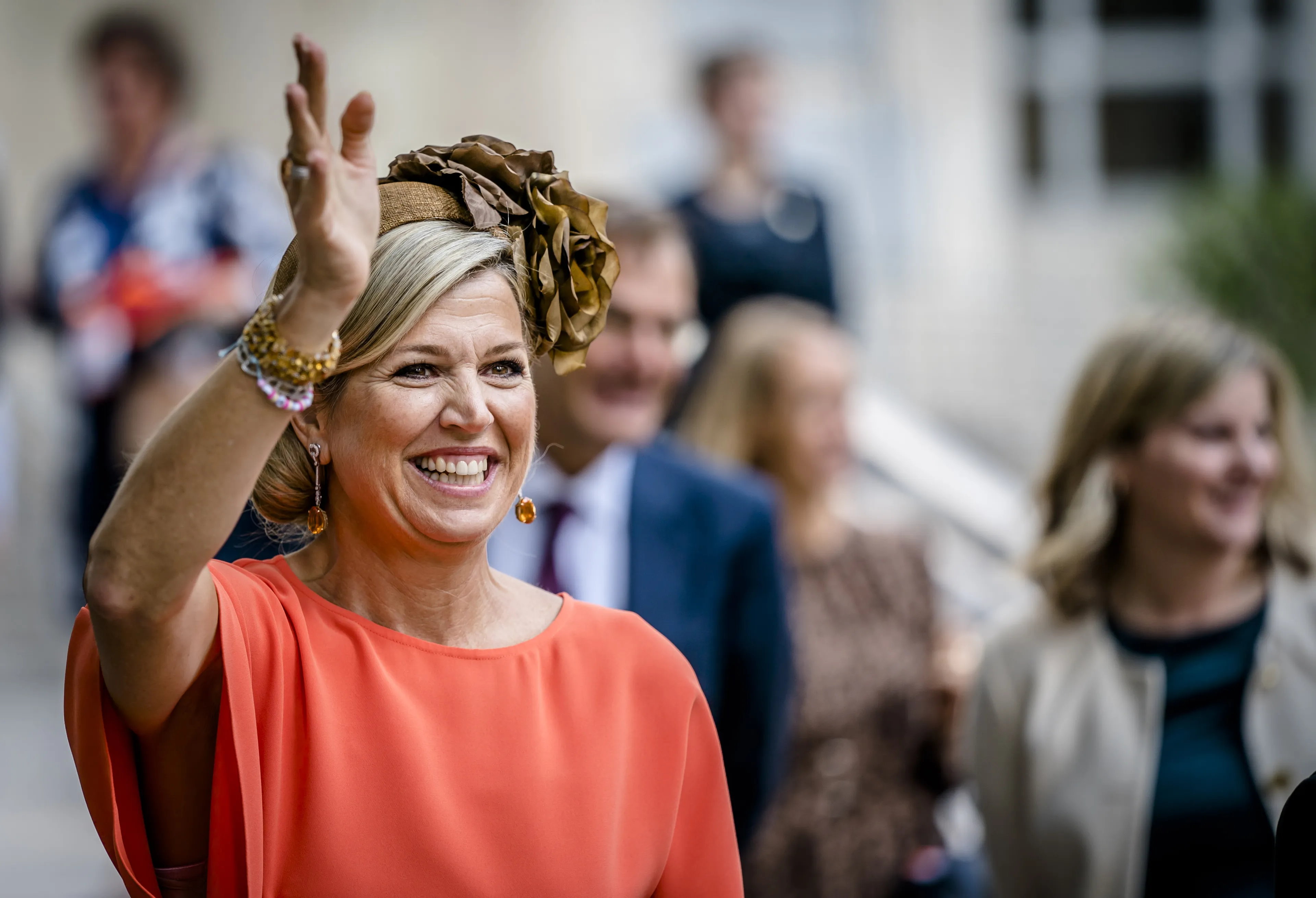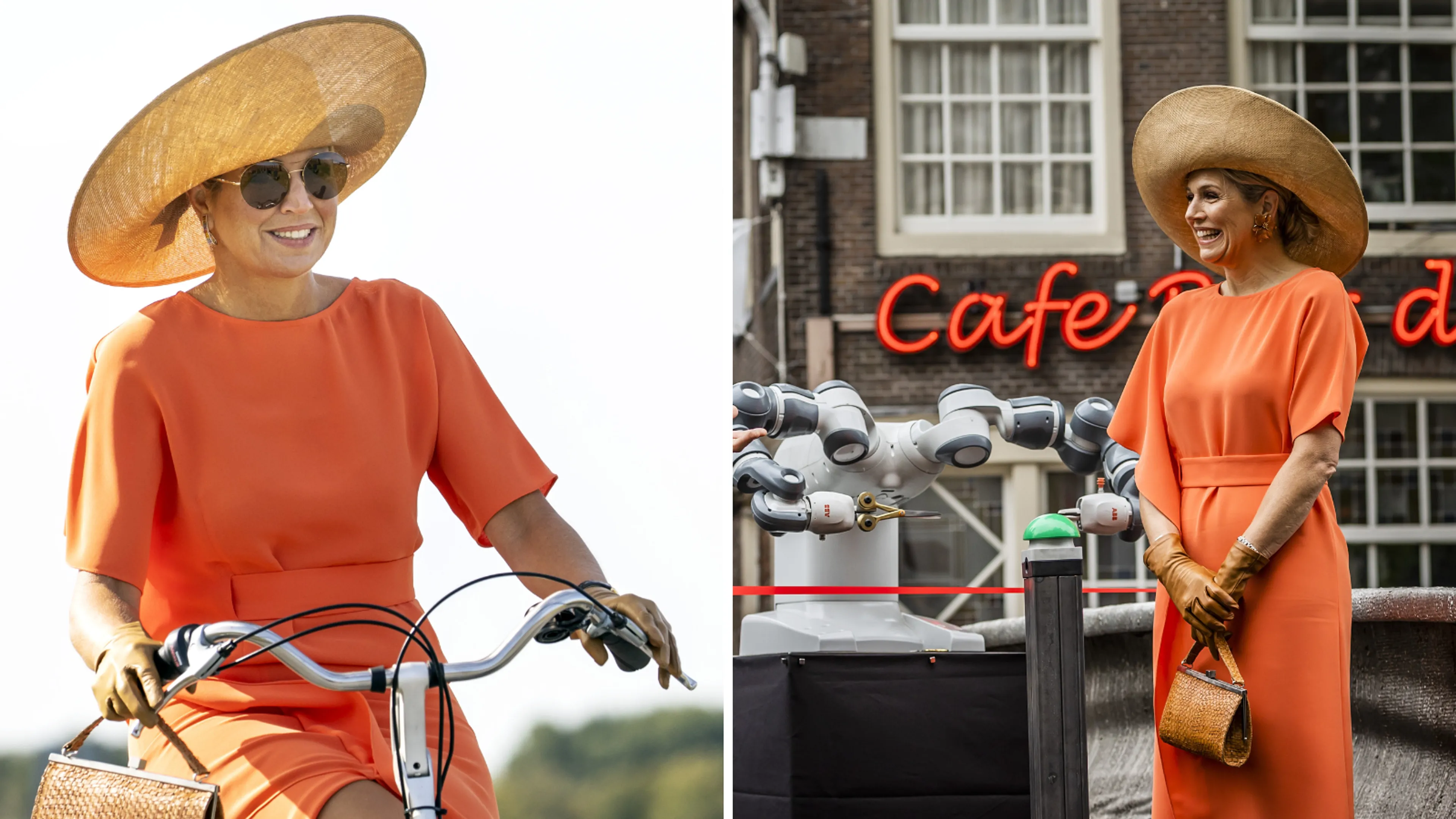 Koningin Máxima was het eerste deel van de vrijdag gekleed in een oranje jurk van Natan. Zij droeg dit ontwerp voor het eerst tijdens een streekbezoek aan Zuidoost Friesland in 2020. Een jaar later, in de zomer van 2021, kregen we de jurk opnieuw te zien toen Máxima een burg opende in Amsterdam.
