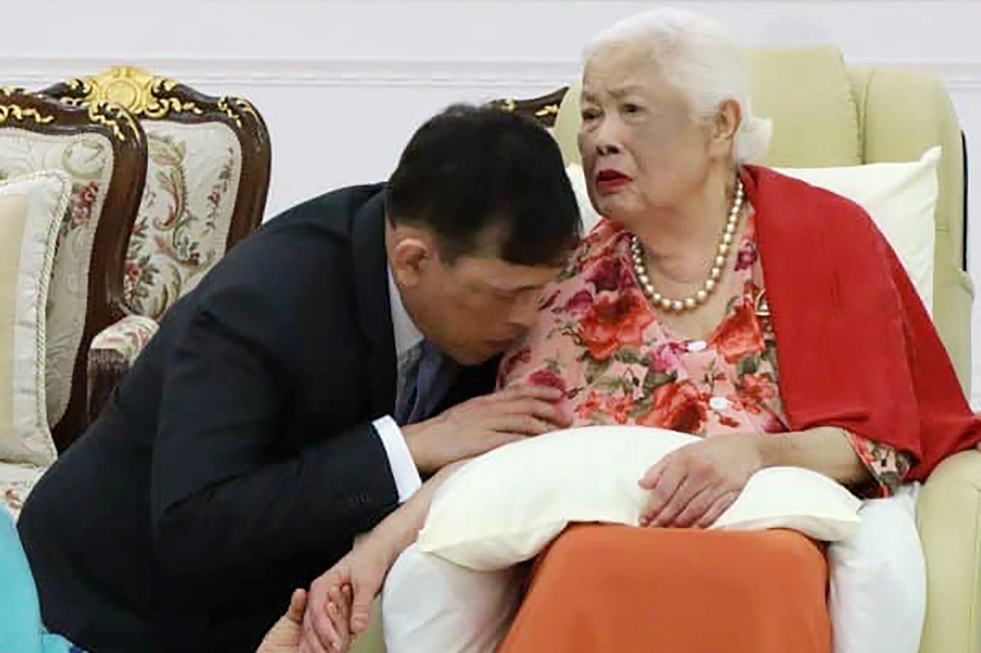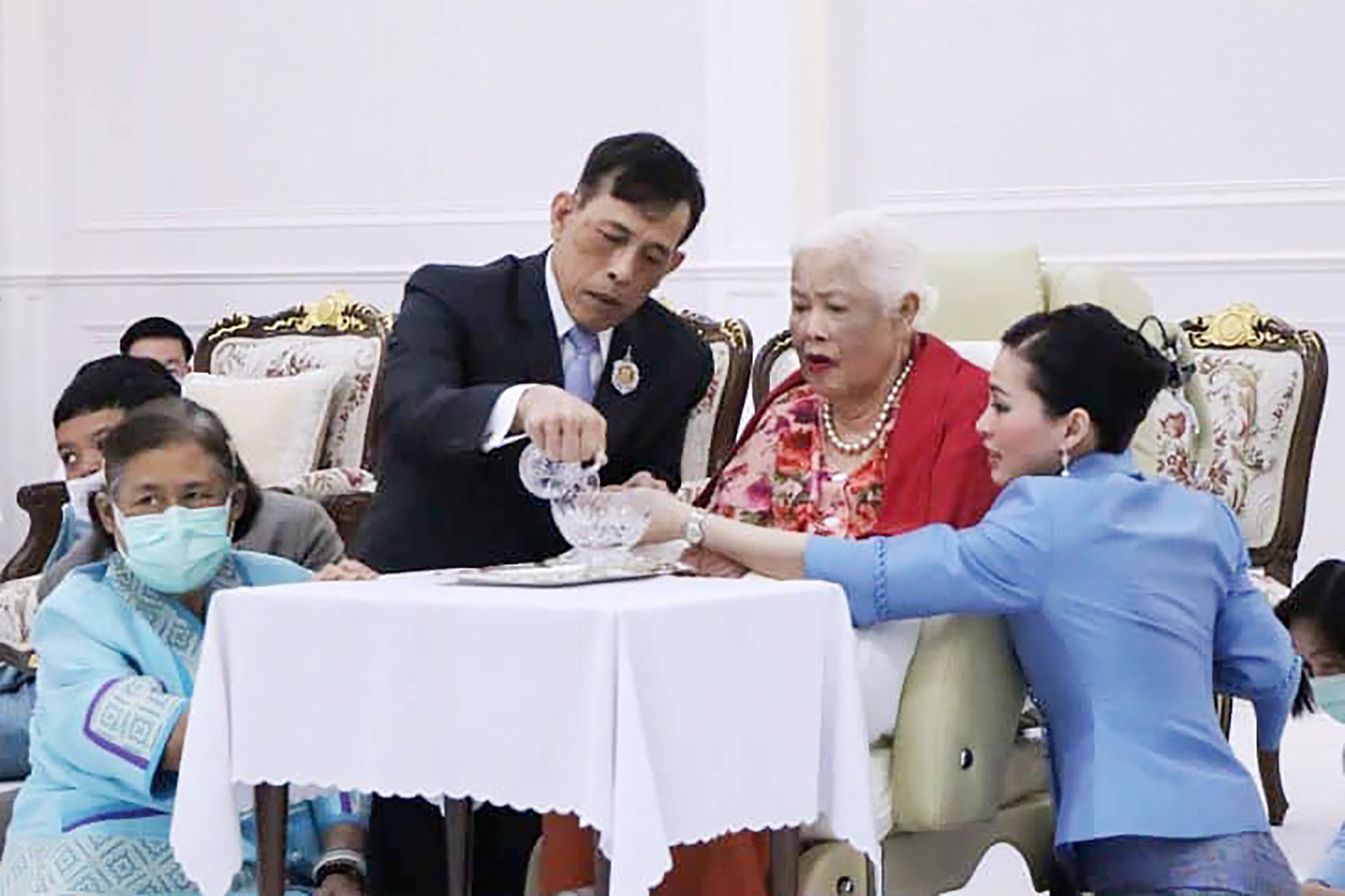 Uit de opnamen die het paleis na afloop vrijgaf lijkt het of de koningin-moeder zich niet bewust is van wat zich om haar heen afspeelt. Sirikit kreeg in 2012 een zware beroerte en is sindsdien niet meer zelfstandig in het openbaar getreden.