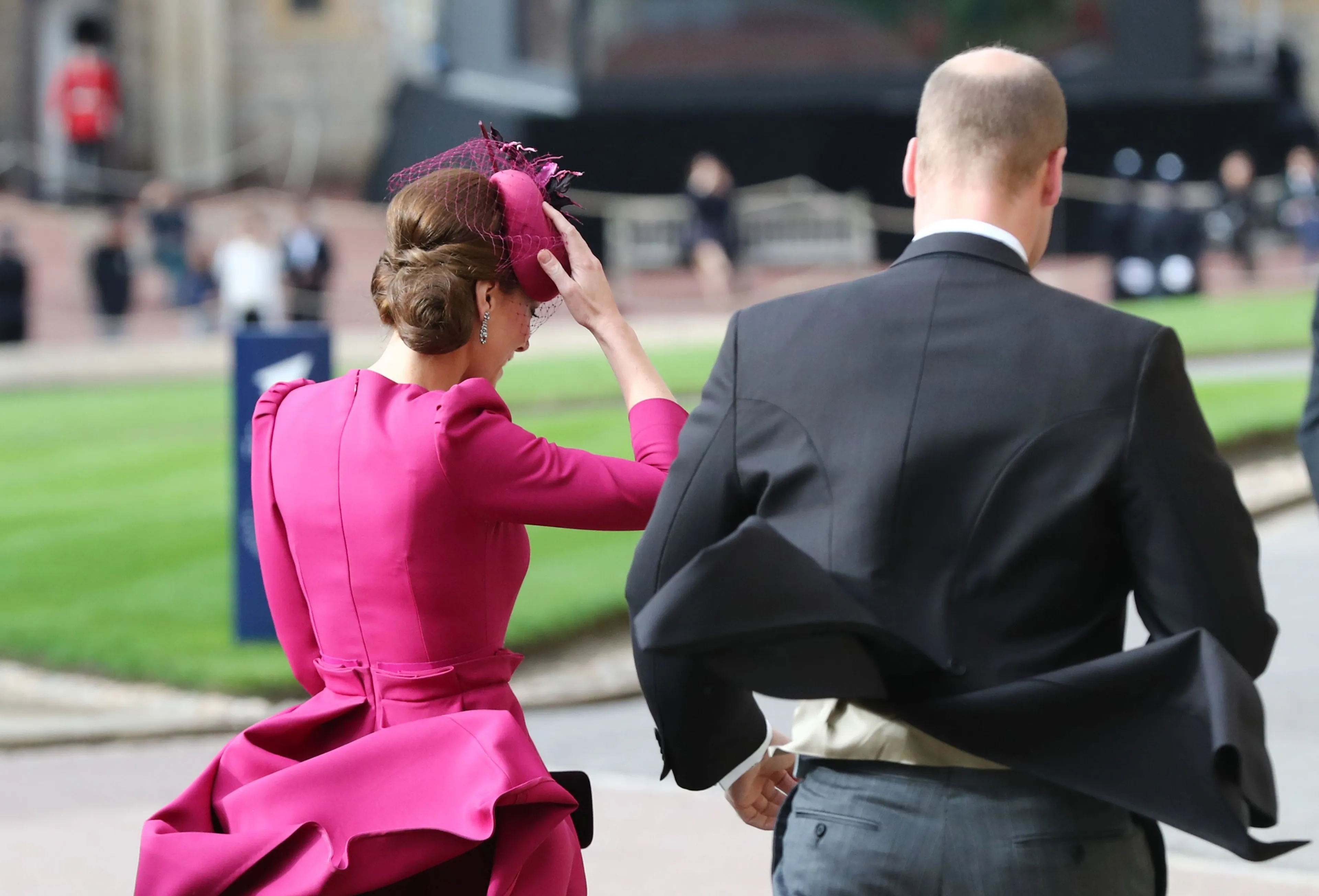 Hertogin Catherine koos voor een ontwerp van Alexander McQueen, het Britse modehuis dat ook haar bruidsjapon ontworpen heeft. Toeval of niet? Meghan draagt een mantel van Givenchy, het Franse modehuis dat haar bruidsjurk heeft gemaakt.