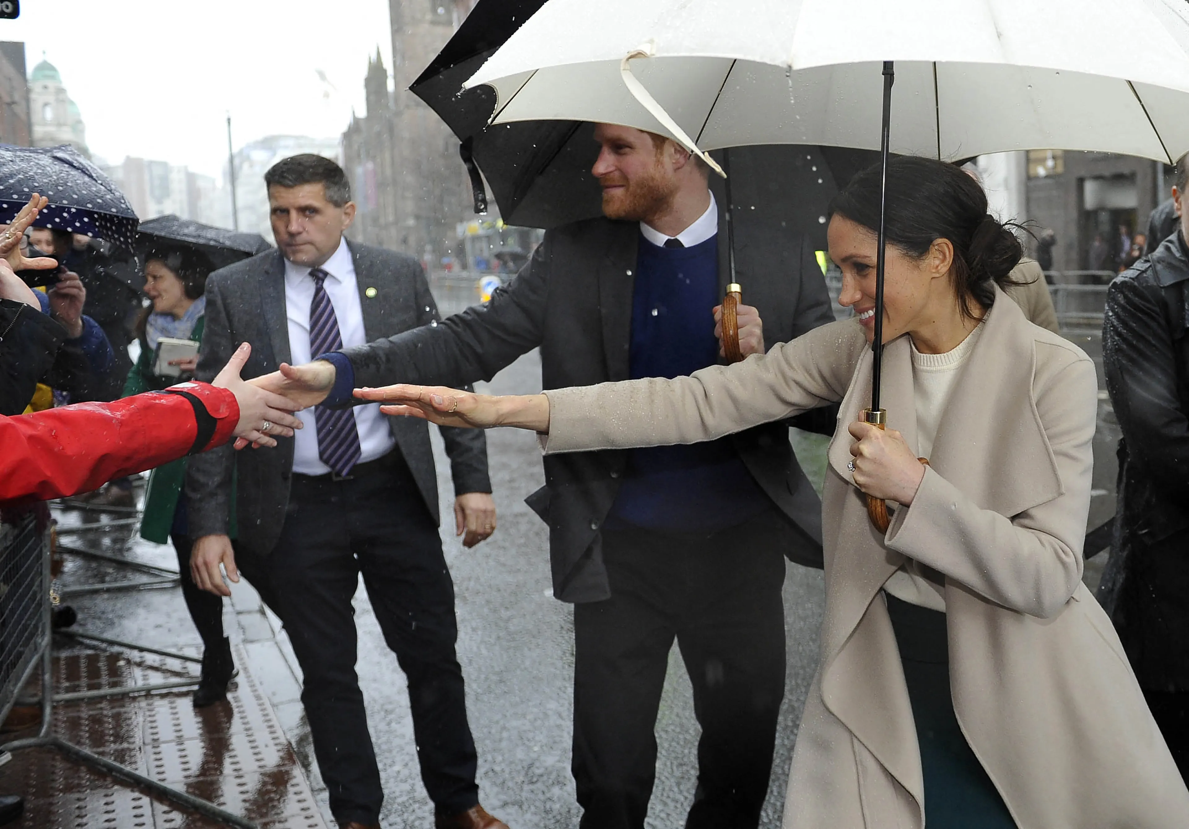 Als actrice was Meghan al gewend om in de spotlight te staan en ze was zich bewust van haar invloed. Dit hielp haar enorm in de periode vlak na haar verloving. Meghan werd, anders dan Catherine, meteen in het diepe gegooid. Meghan was nerveus, maar kon rekenen op de steun van haar aanstaande Harry die liefkozend een arm om haar heen sloeg en haar alles leerde over de protocollen. Tijdens haar eerste Trooping the Colour vroeg ze bijvoorbeeld aan hem wanneer ze precies een curtesy moest maken voor de koningin. Hij antwoorde precies op tijd "nu" en Meghan volgde met een diepe buiging. Het ging ook wel mis, want ondanks het advies om bij koninklijke verplichtingen een hoed te dragen, verscheen ze bij haar eerste uitje alleen met koningin Elizabeth met een onbedekt hoofd. De koningin deed alsof ze het niet merkte.