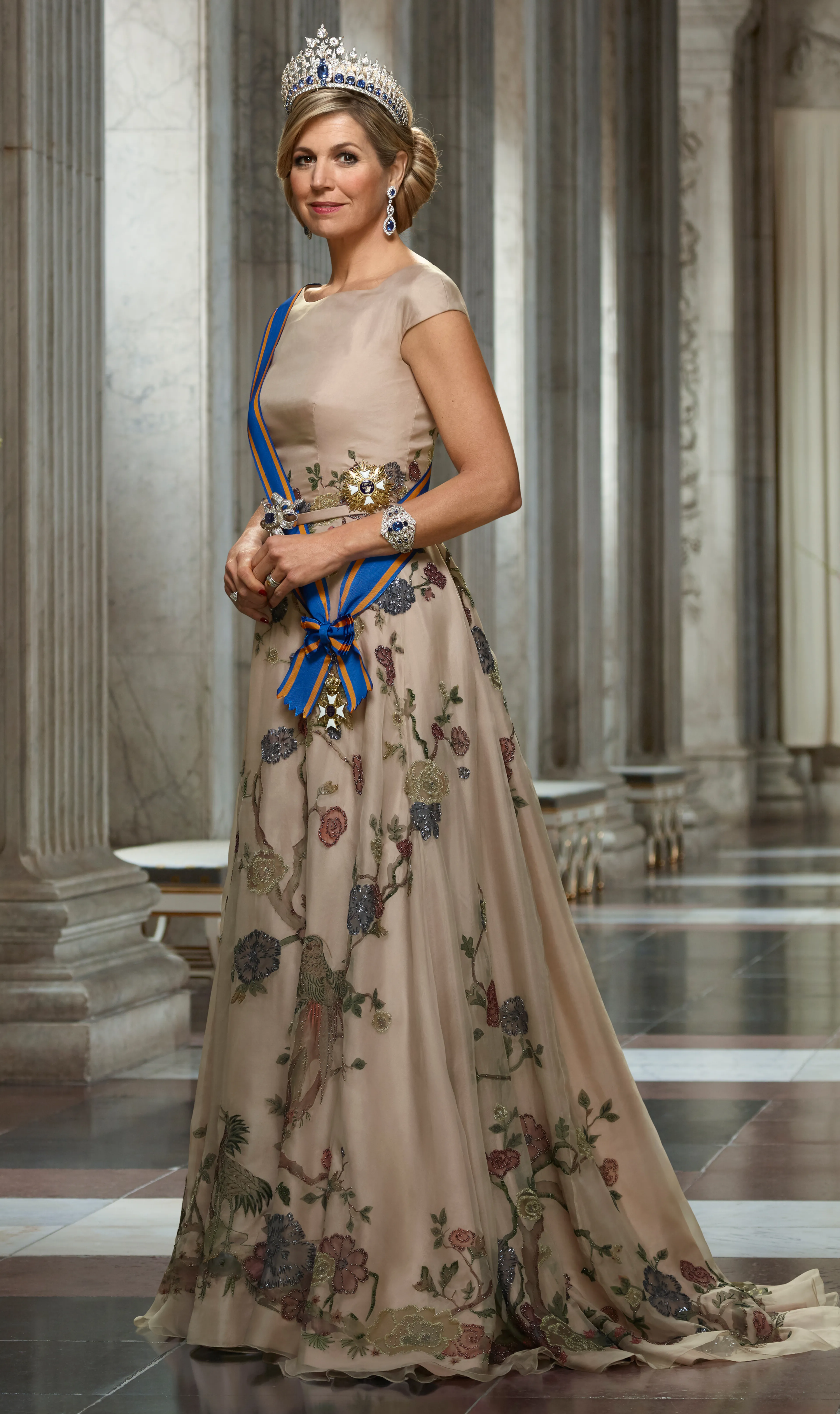 Het tafereel op de japon is helemaal met de hand geverfd en vervolgens gedecoreerd met heel verfijnd borduurwerk. Koninklijker kan bijna niet en dan hebben we het nog niet eens gehad over de Japanse Zaal van Huis ten Bosch, waar deze japon op is geïnspireerd. Hopelijk gaan we deze jurk in de toekomst nog veel vaker zien!
