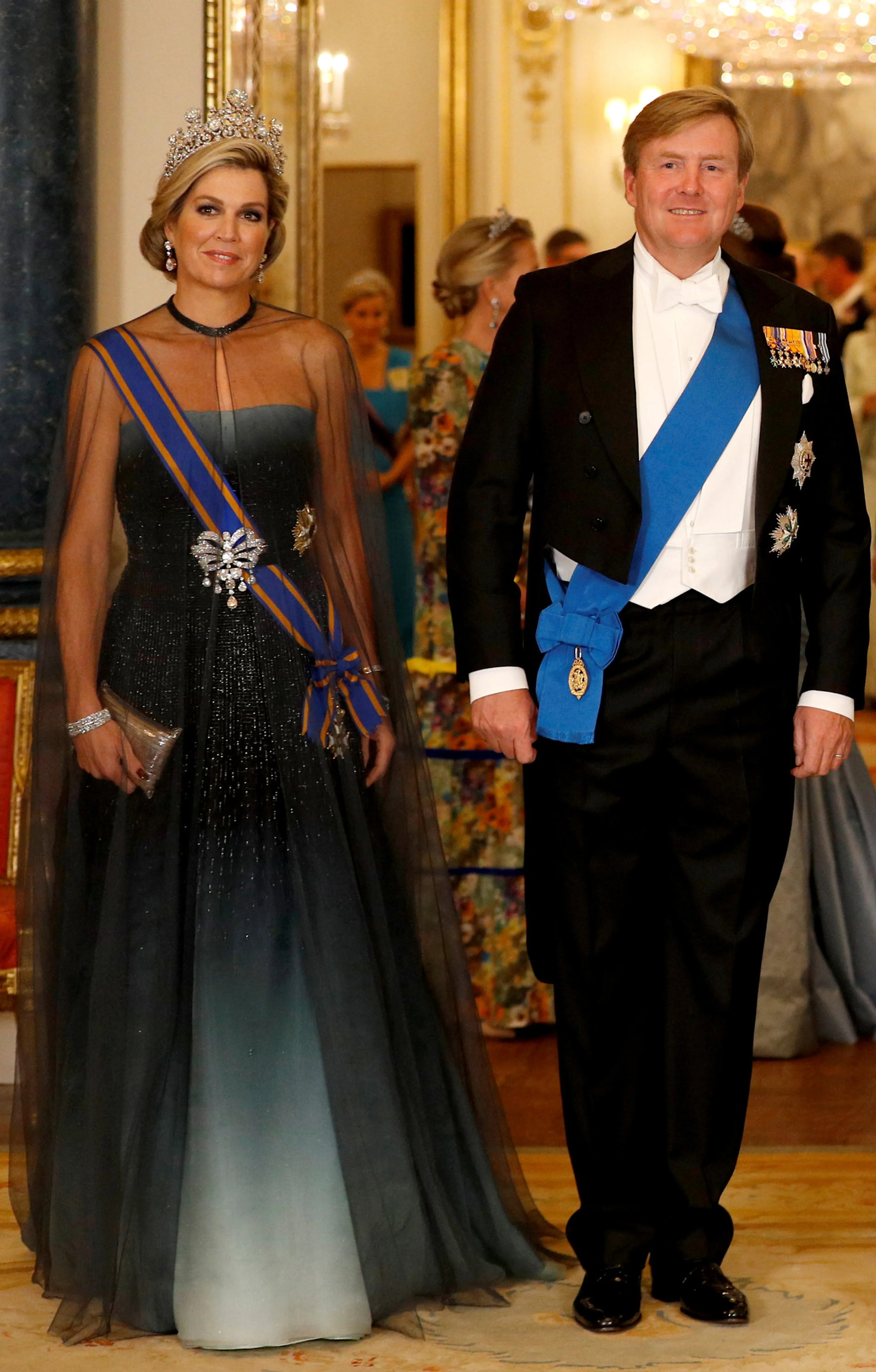 Wow! Ook plek 2 is voor een creatie van couturier Jan Taminiau. Met 2.218 stemmen staat de nieuwe jurk die koningin Máxima droeg tijdens het staatsbanket in Buckingham Palace op de tweede plaats. Tijdens dit historische moment schitterde Máxima op en top. De japon sloot qua kleur perfect aan bij haar juwelenkeuze. De lichtblauwe kleur van de Stuart-diamant kwam namelijk subtiel terug in de halslijn en het rokgedeelte van de jurk.