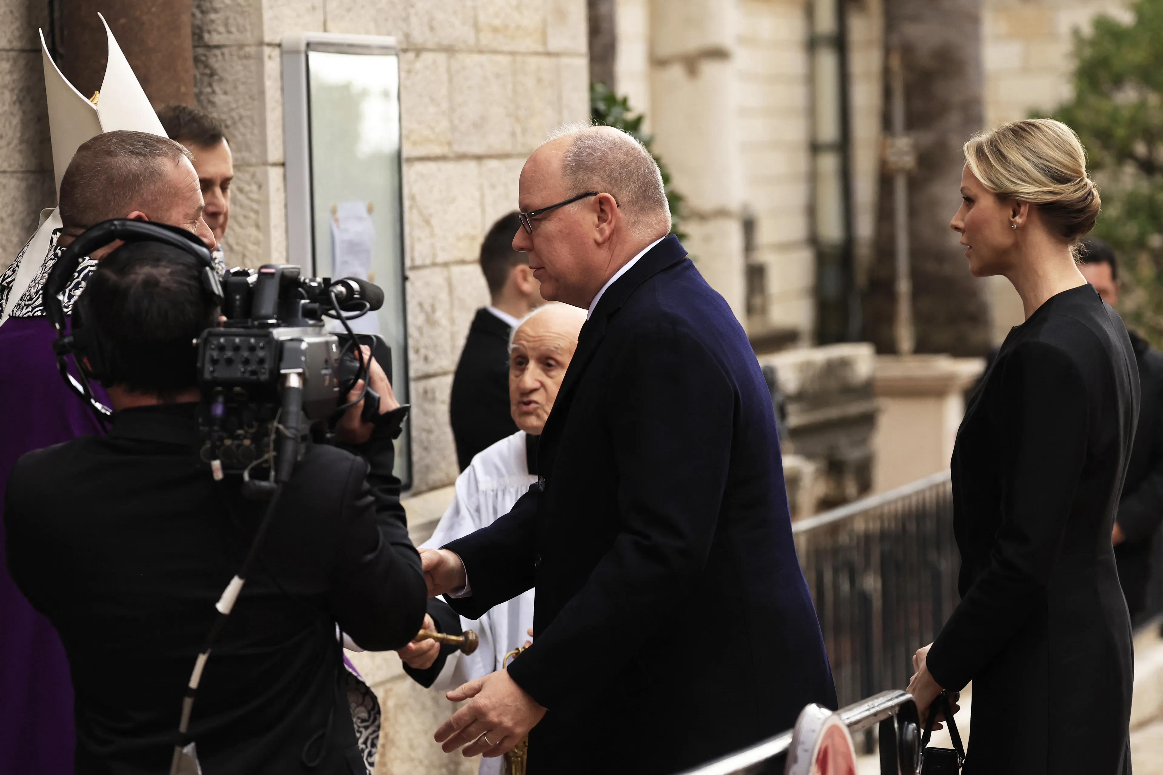 Prins Albert en prinses Charlène bij uitvaart Monegaskische premier