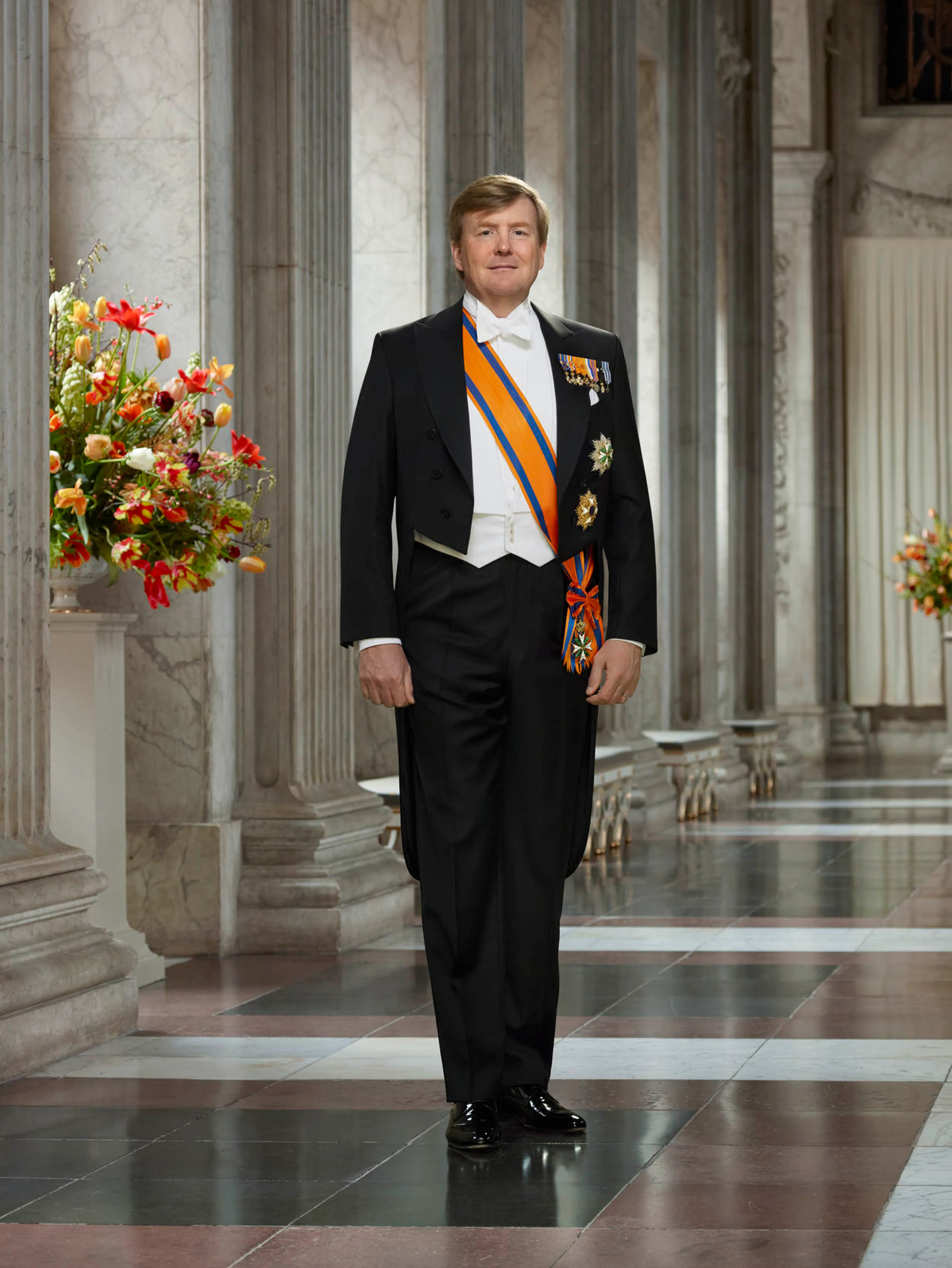 Koning Willem-Alexander draagt het Ridder-Grootkruis Militaire Willemsorde. Koningin Máxima draagt het Grootkruis in de Orde van de Nederlandse Leeuw.