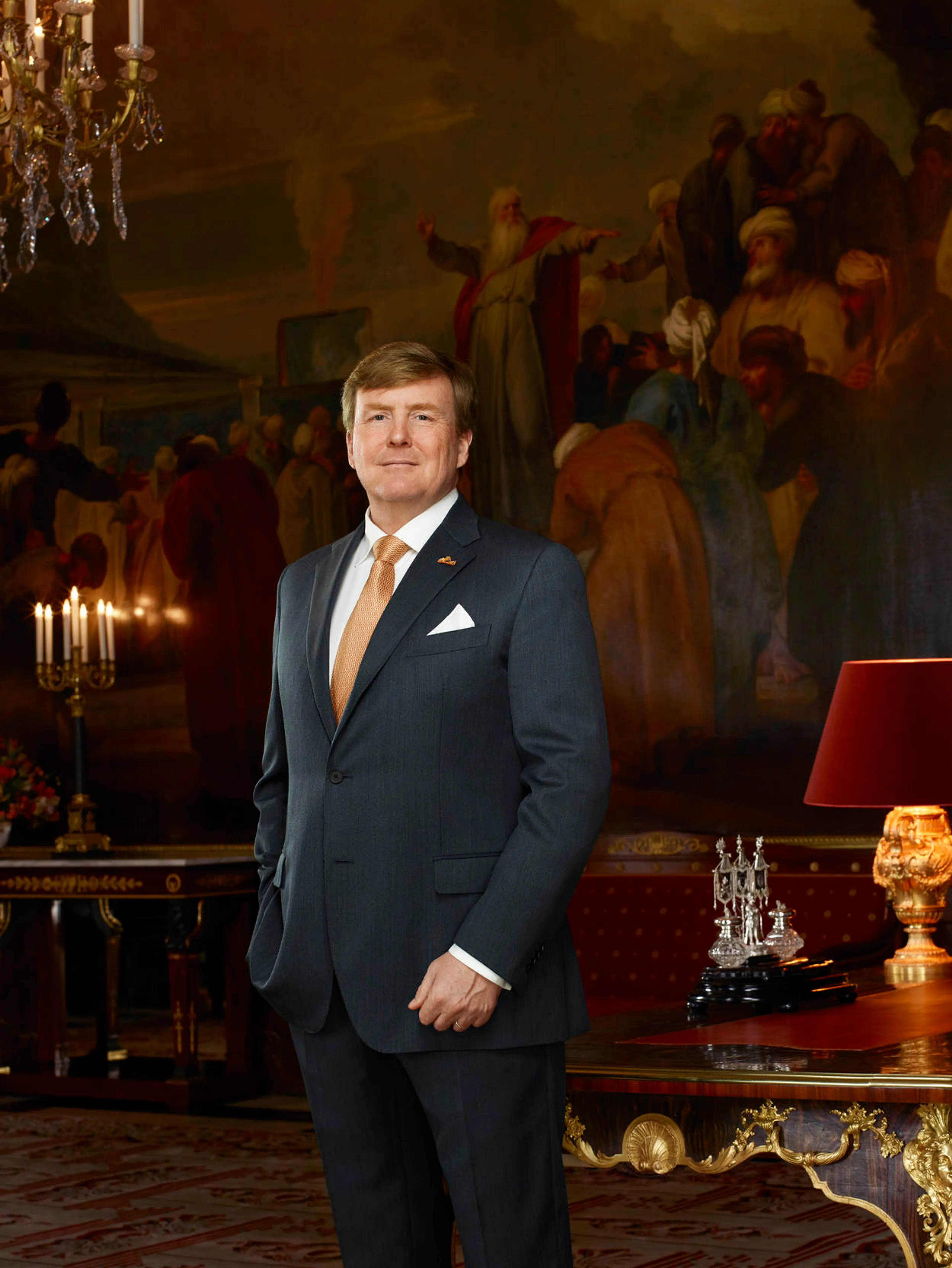 Koning Willem-Alexander poseerde ook in de Mozeszaal in het Koninklijk Paleis Amsterdam.