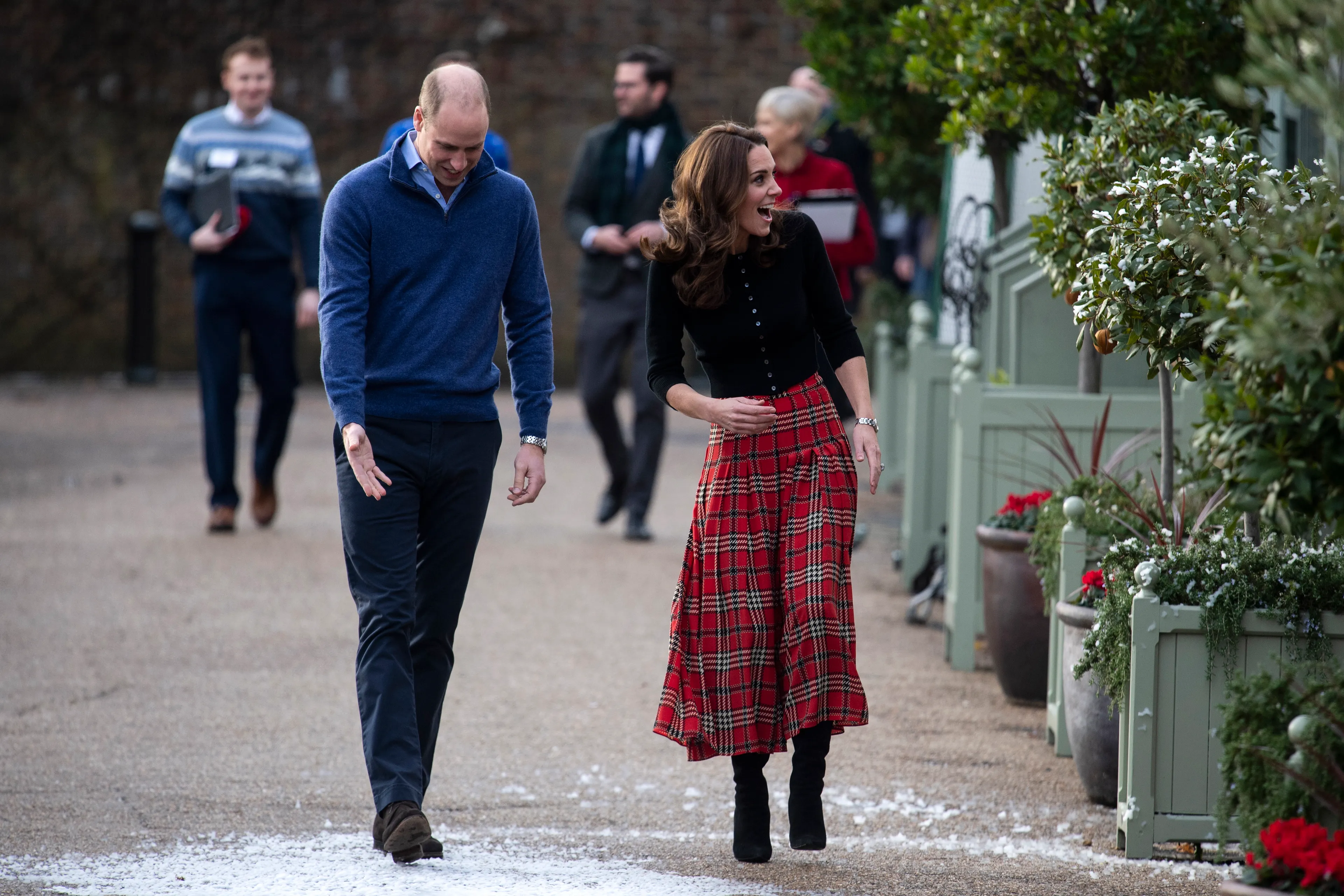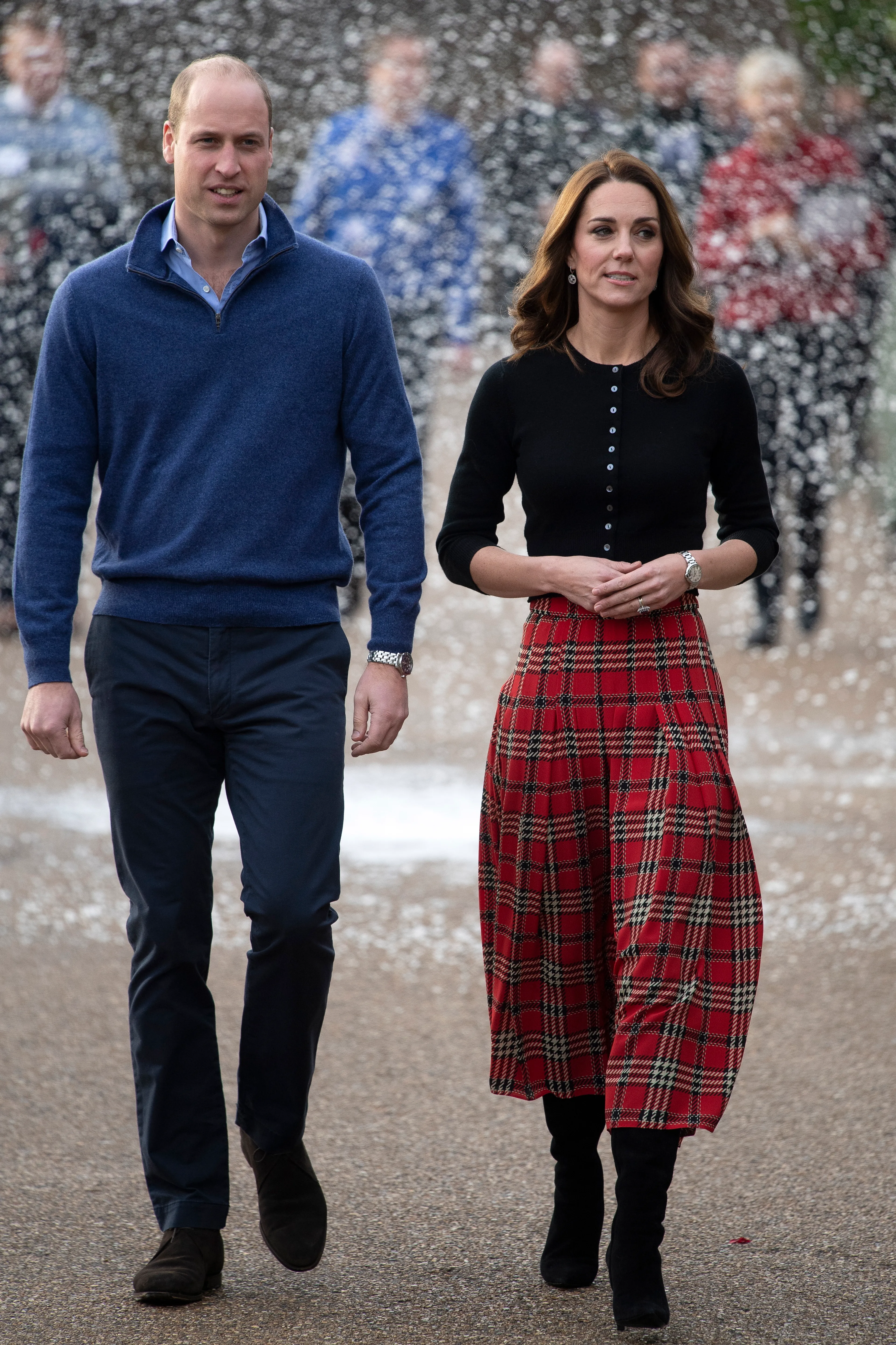 Prins William en zijn echtgenote Catherine zijn al in kerststemming. Dinsdag woonden ze op Kensington Palace een kerstfeest voor families van uitgezonden militairen bij. De hertogin kwam in een feestelijke tartanrok van Emilia Wickstead met een kasjmier vest en bijpassende laarzen. William droeg voor de gelegenheid een blauwe trui met opstaande kraag.