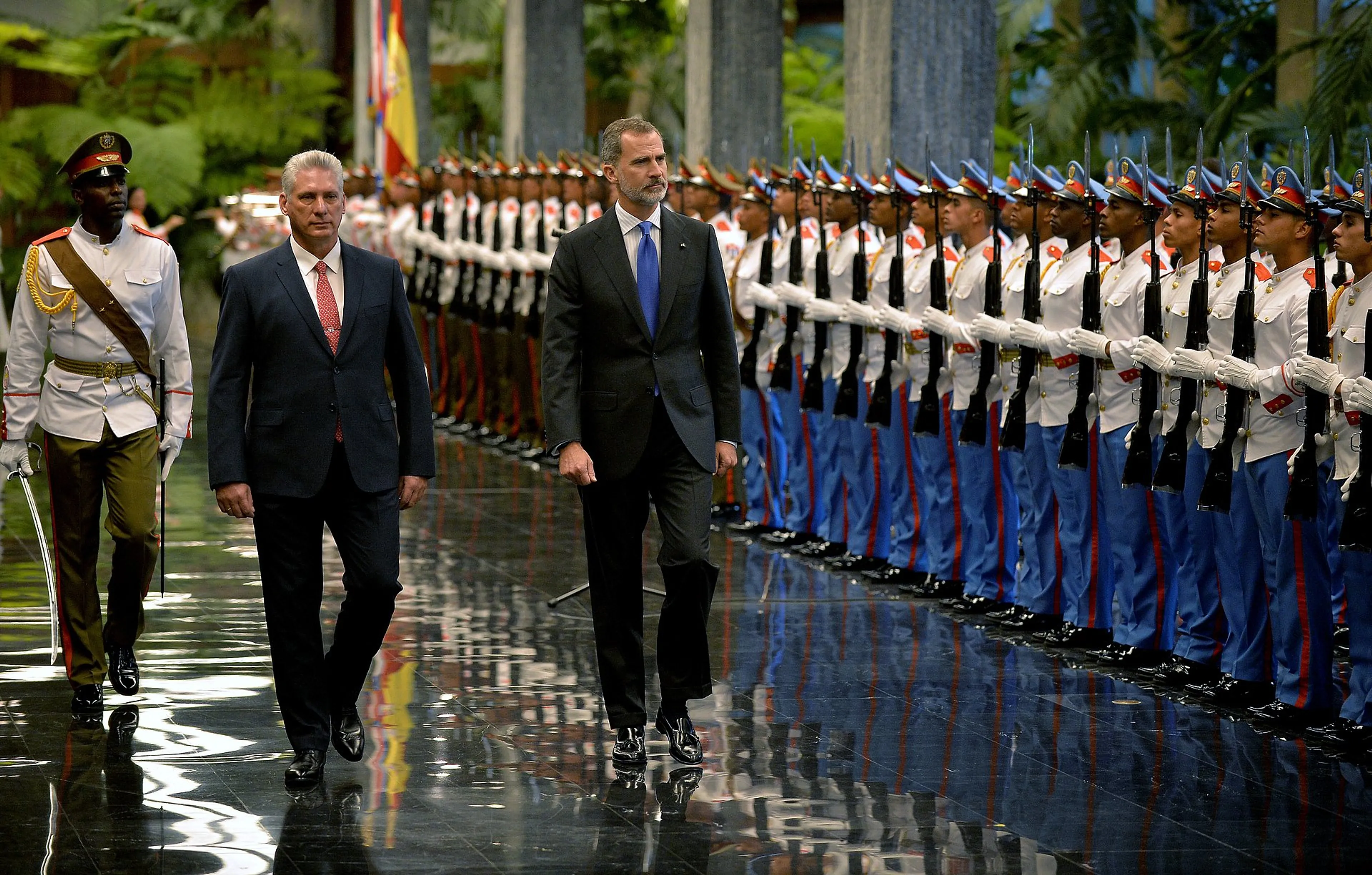 Eerder op de dag bracht Felipe samen met de Cubaanse president Miguel Diaz een groet gebracht aan de militaire garde in het Paleis van de Revolutie in Havana.