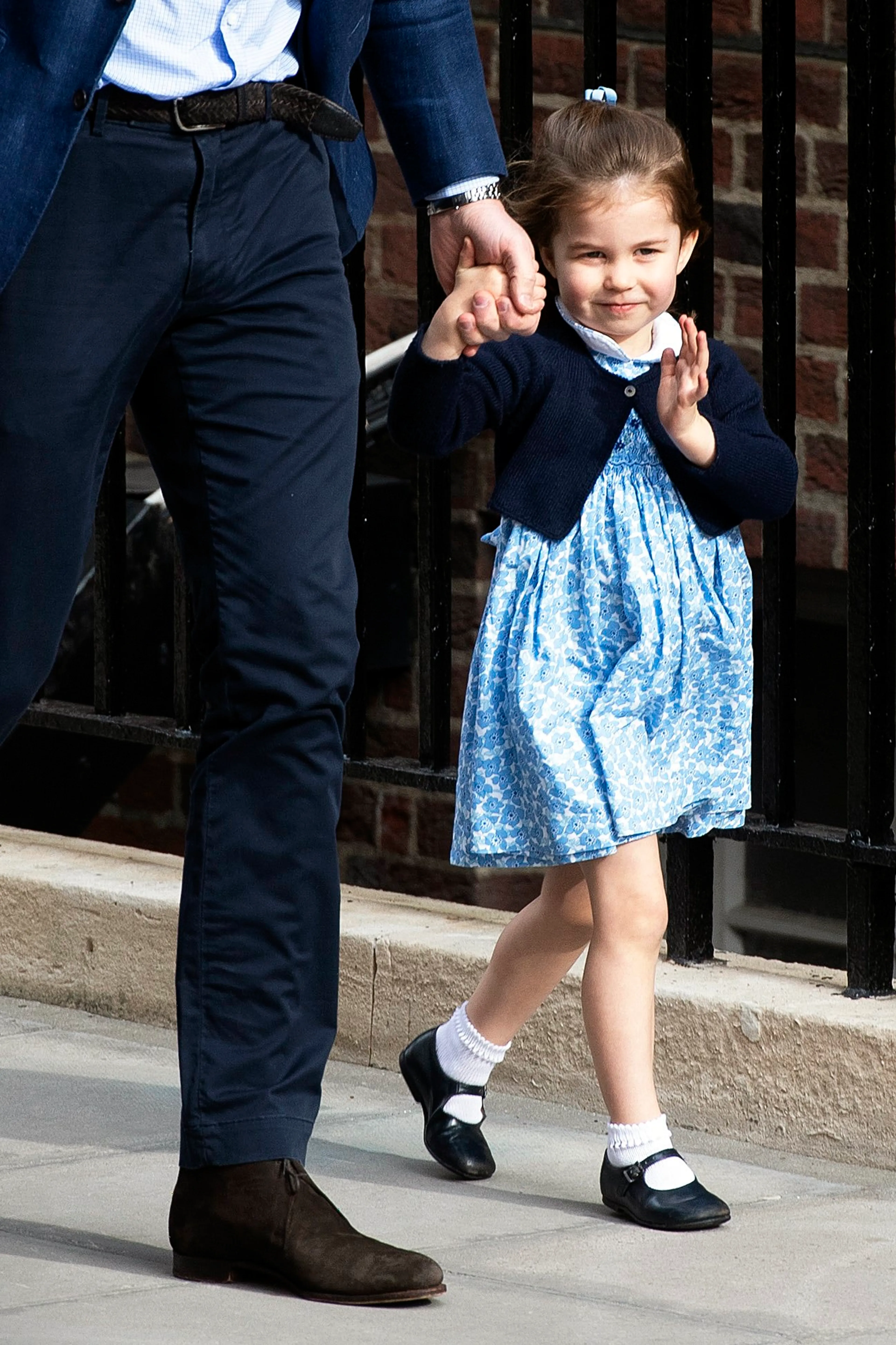 Prins William zei bij zijn vertrek tegen de massaal toegestroomde pers en aanwezigen dat hij snel terug zou komen. En dat maakte hij waar. Samen met George - in zijn schooluniform - en Charlotte keerde William terug bij het ziekenhuis. De bijna driejarige Charlotte stal de harten van alle toeschouwers met haar schattige handzwaai.