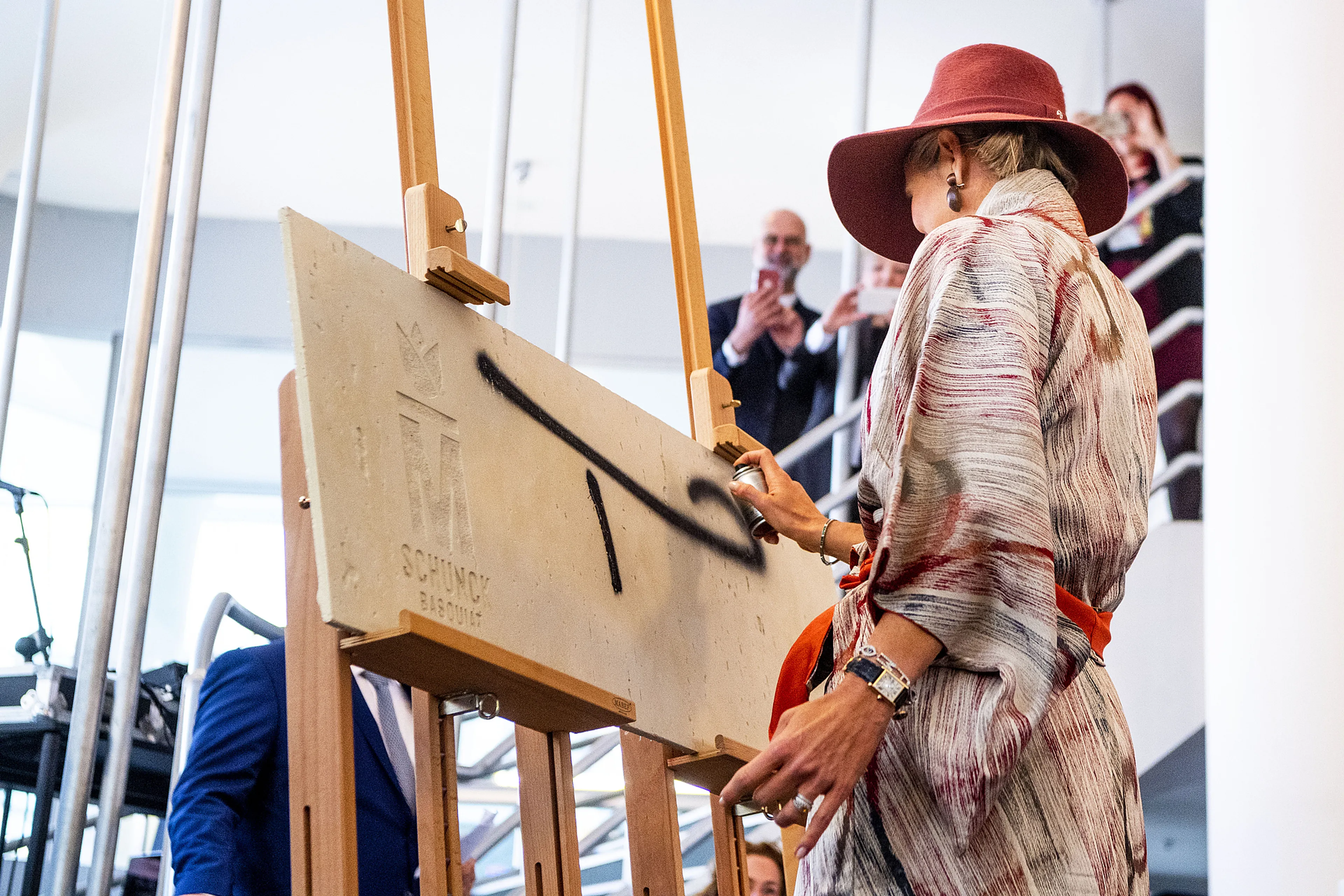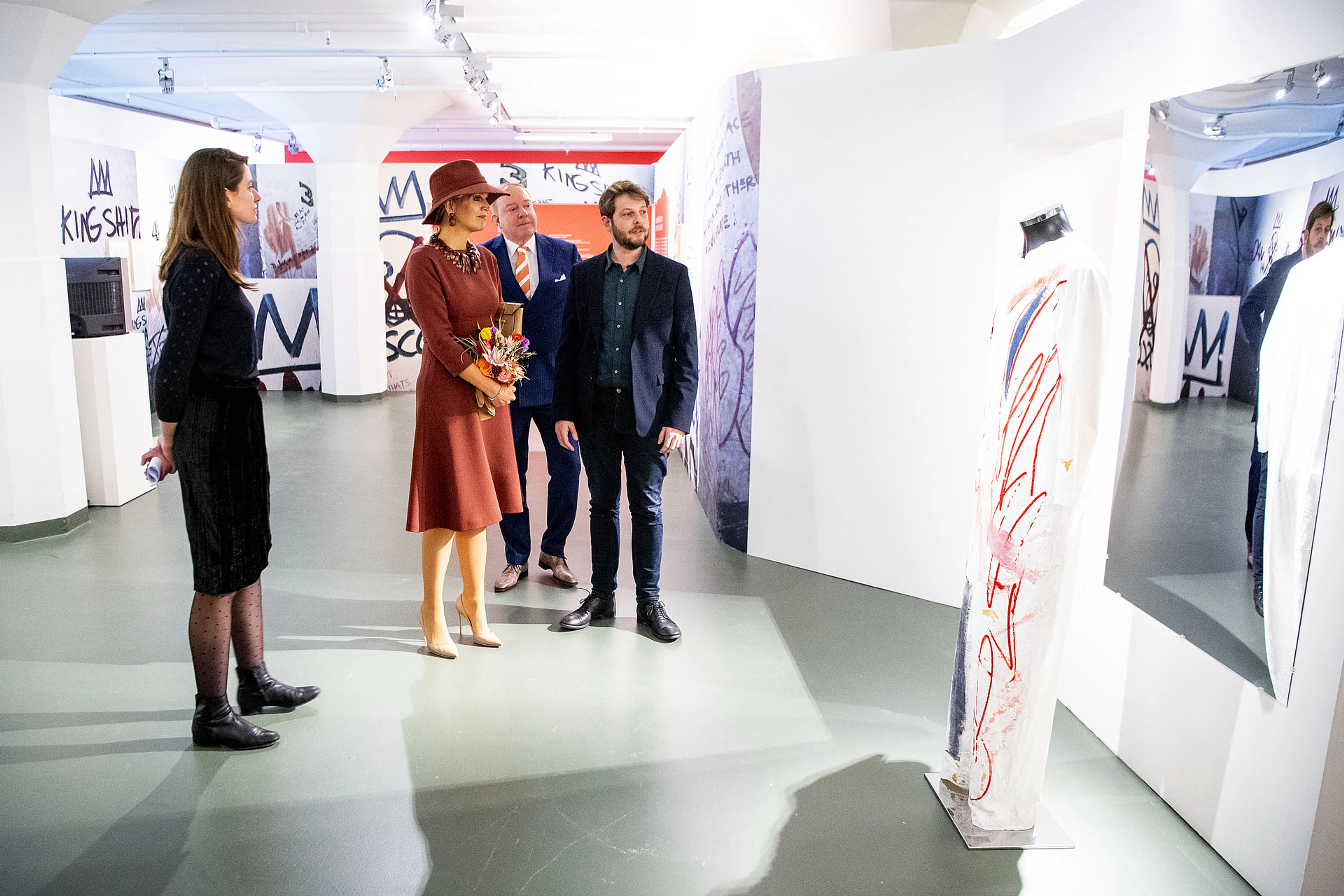 Koningin Máxima heeft donderdag de tentoonstelling 'Basquiat - The Artist and His New York Scene' geopend in het Heerlense museum SCHUNCK. Het New Yorkse fenomeen Jean-Michel Basquiat, in 1988 op 27-jarige leeftijd gestorven aan een overdosis drugs, werd door zijn eerste tentoonstellingen begin jaren tachtig op slag een megaster in de internationale kunstwereld.