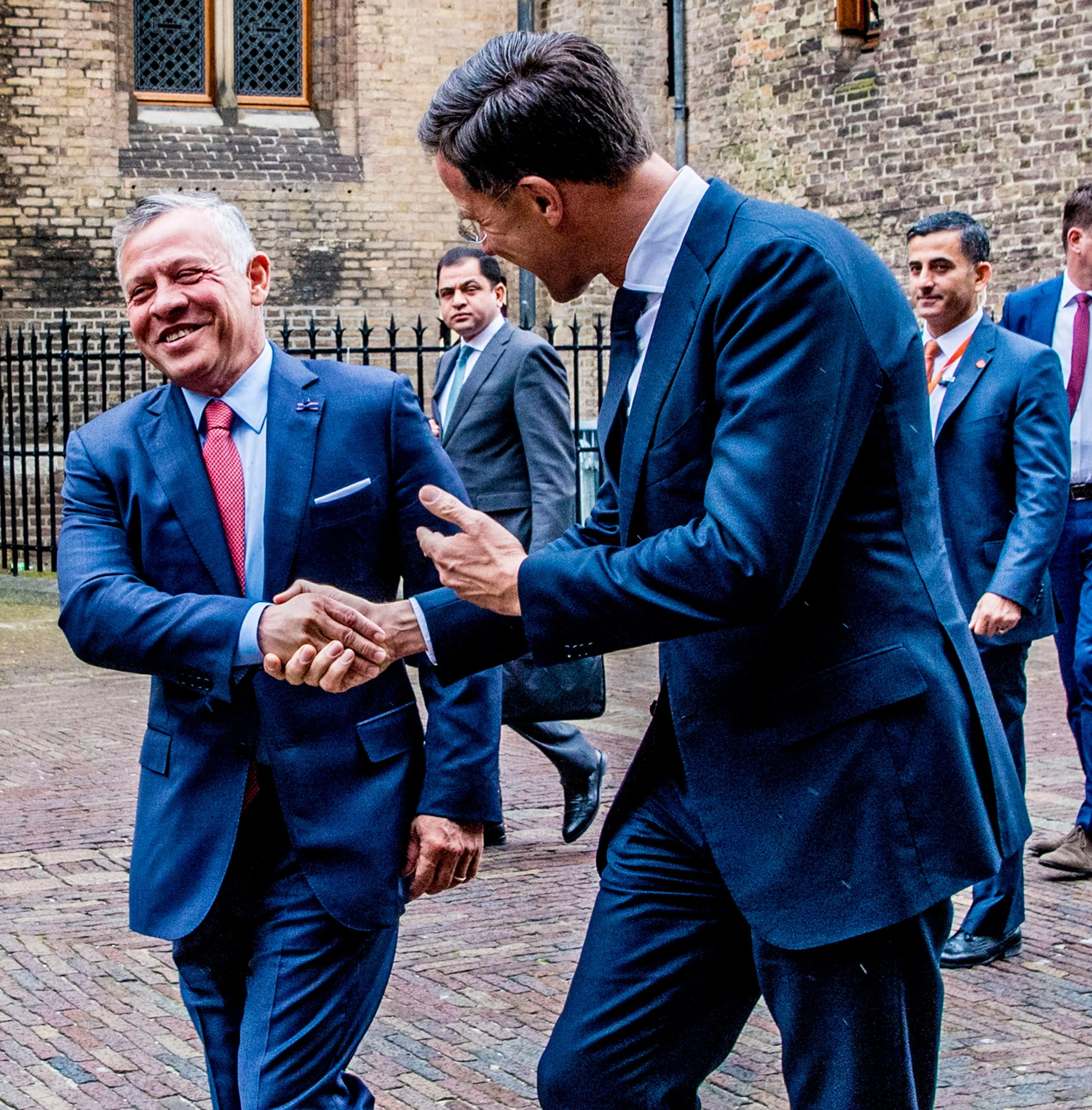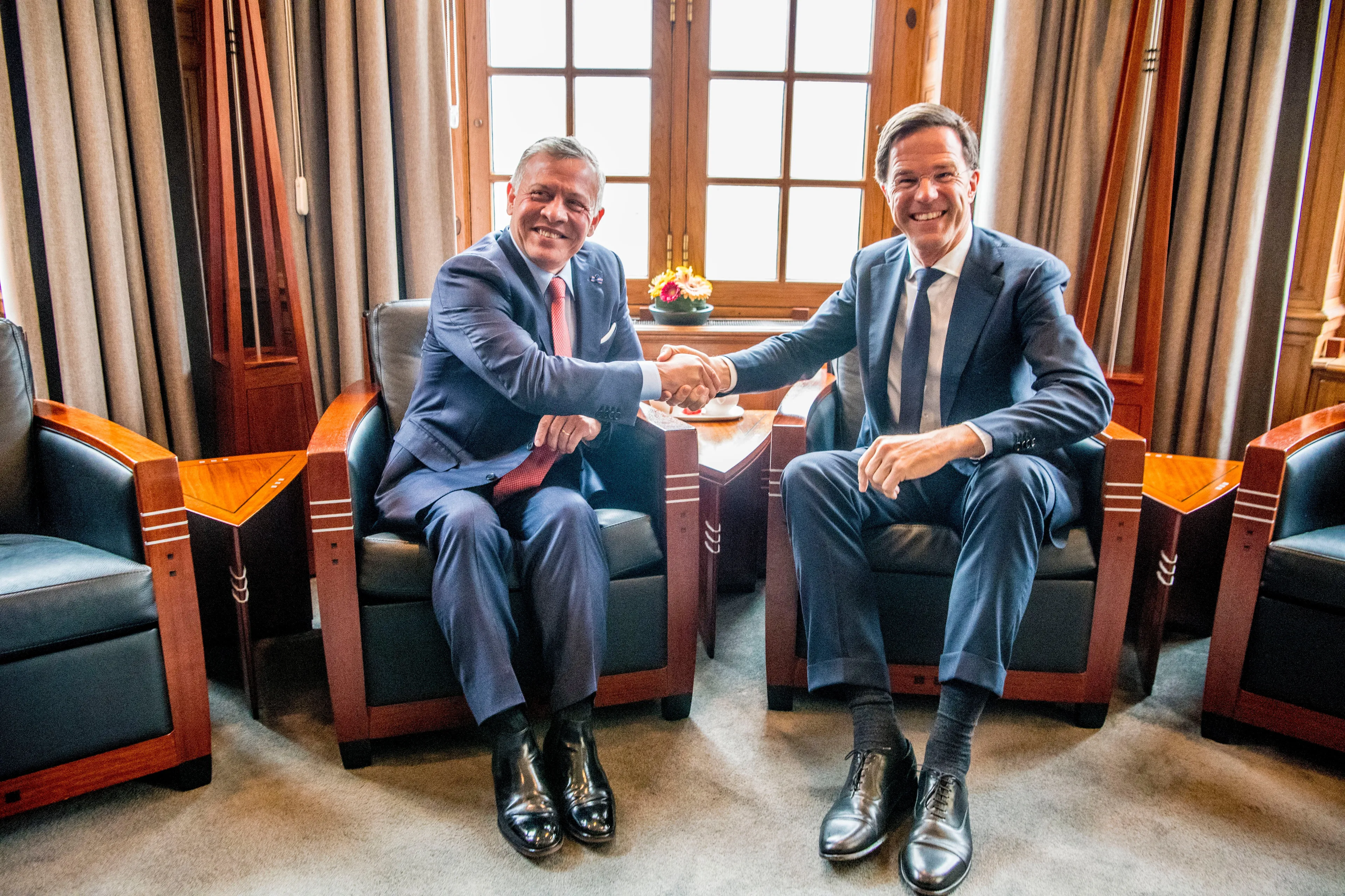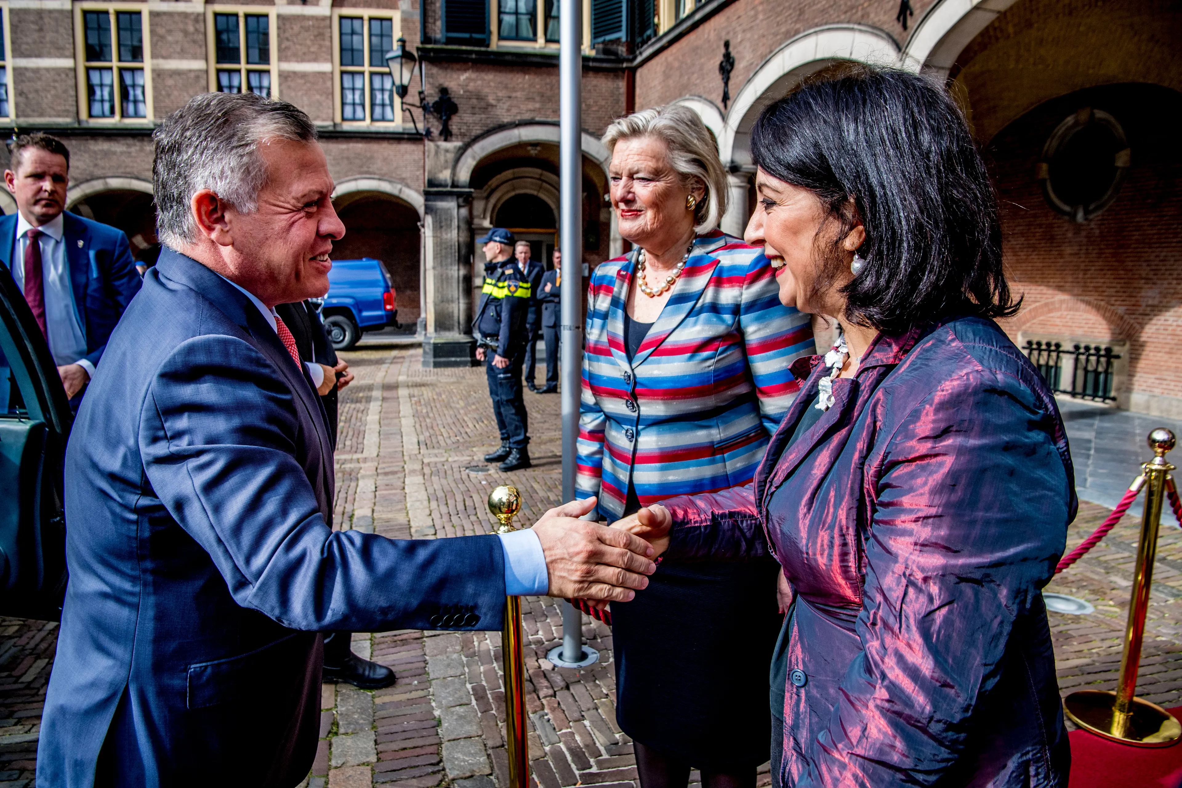 Koning Abdullah bevond zich woensdagochtend al aan het Binnenhof, waar hij werd ontvangen door de voorzitters van Eerste- en Tweede Kamer. Na het bezoek aan de Staten-Generaal volgde een hartelijke ontmoeting met premier Rutte in het Torentje.