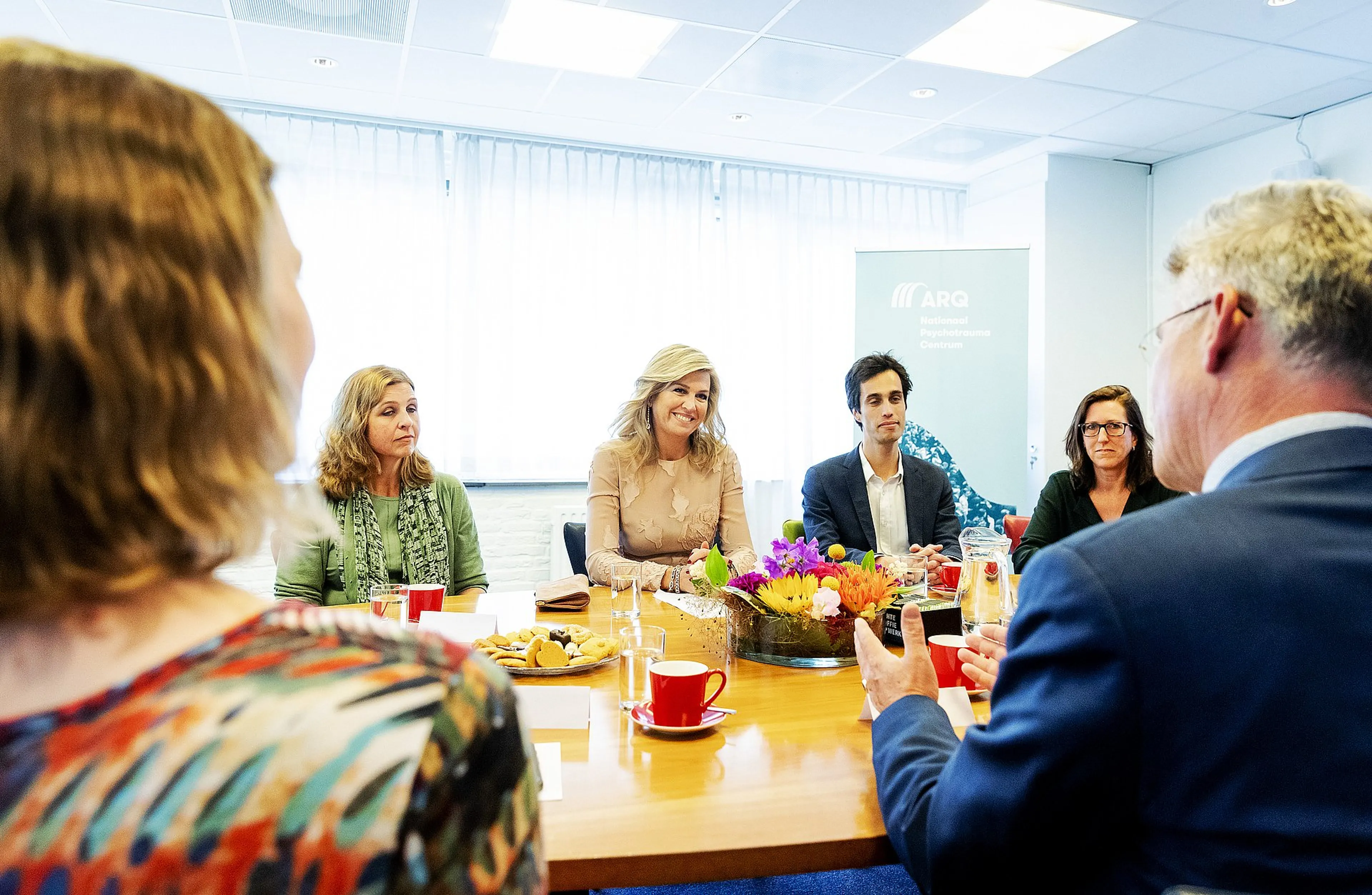Na de uitreiking van de Appeltjes van Oranje donderdagochtend stond ’s middags traumaverwerking centraal voor koningin Máxima. In Diemen bezocht ze het ARQ Nationaal Psychotrauma Centrum, waar zag hoe mensen die een trauma hebben opgelopen worden geholpen.