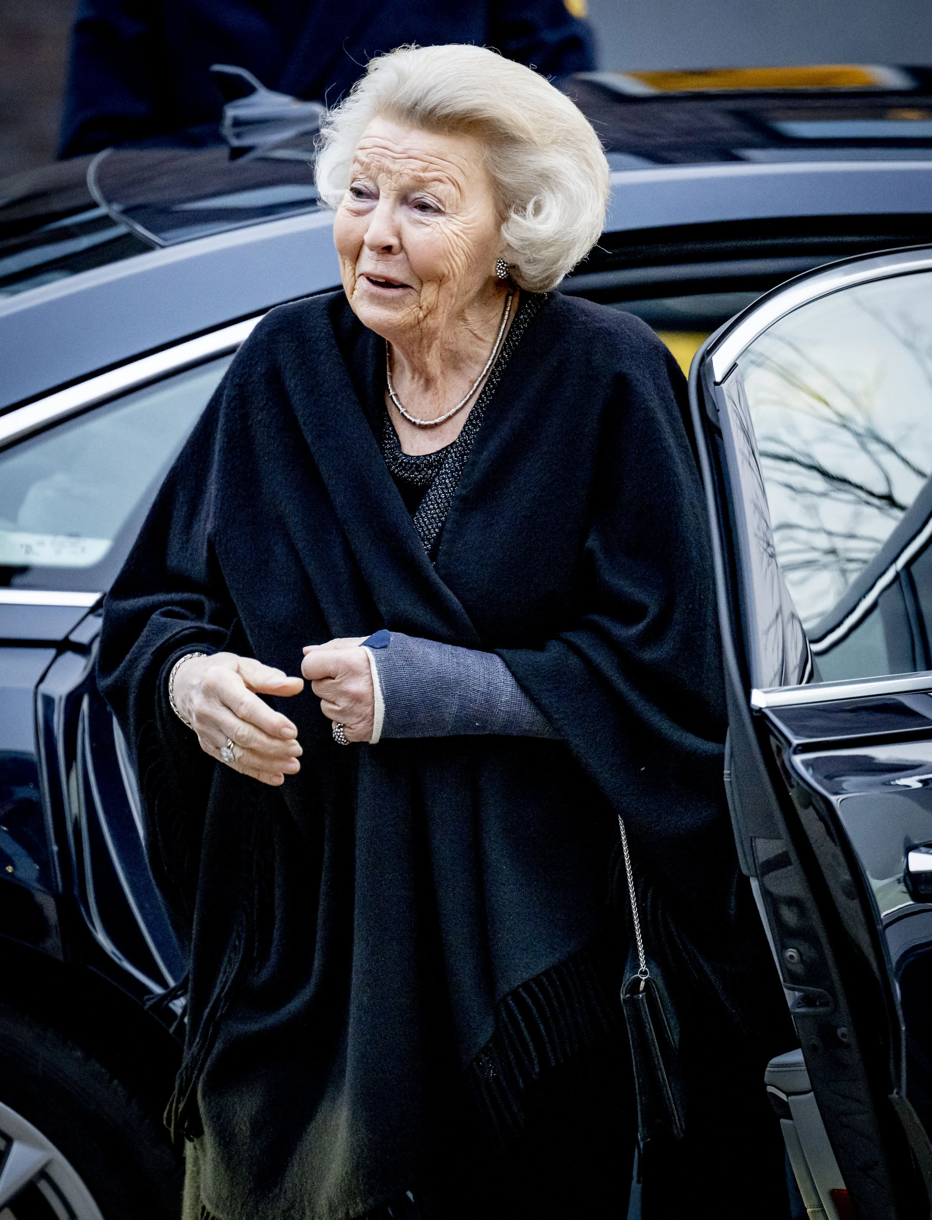 Prinses Beatrix is woensdagavond met haar pols in het gips aangekomen bij het Auditorium van Boskalis in Papendrecht voor de Prins Friso Ingenieursprijs. Het is het eerste openbare bezoek van de 85-jarige prinses sinds zij in februari haar pols brak op wintersportvakantie in Oostenrijk.