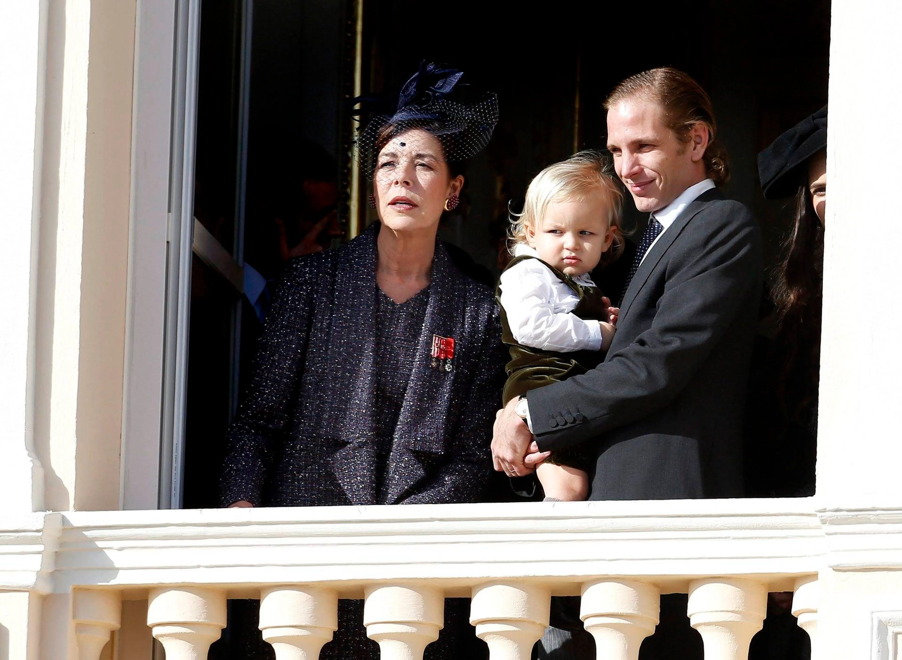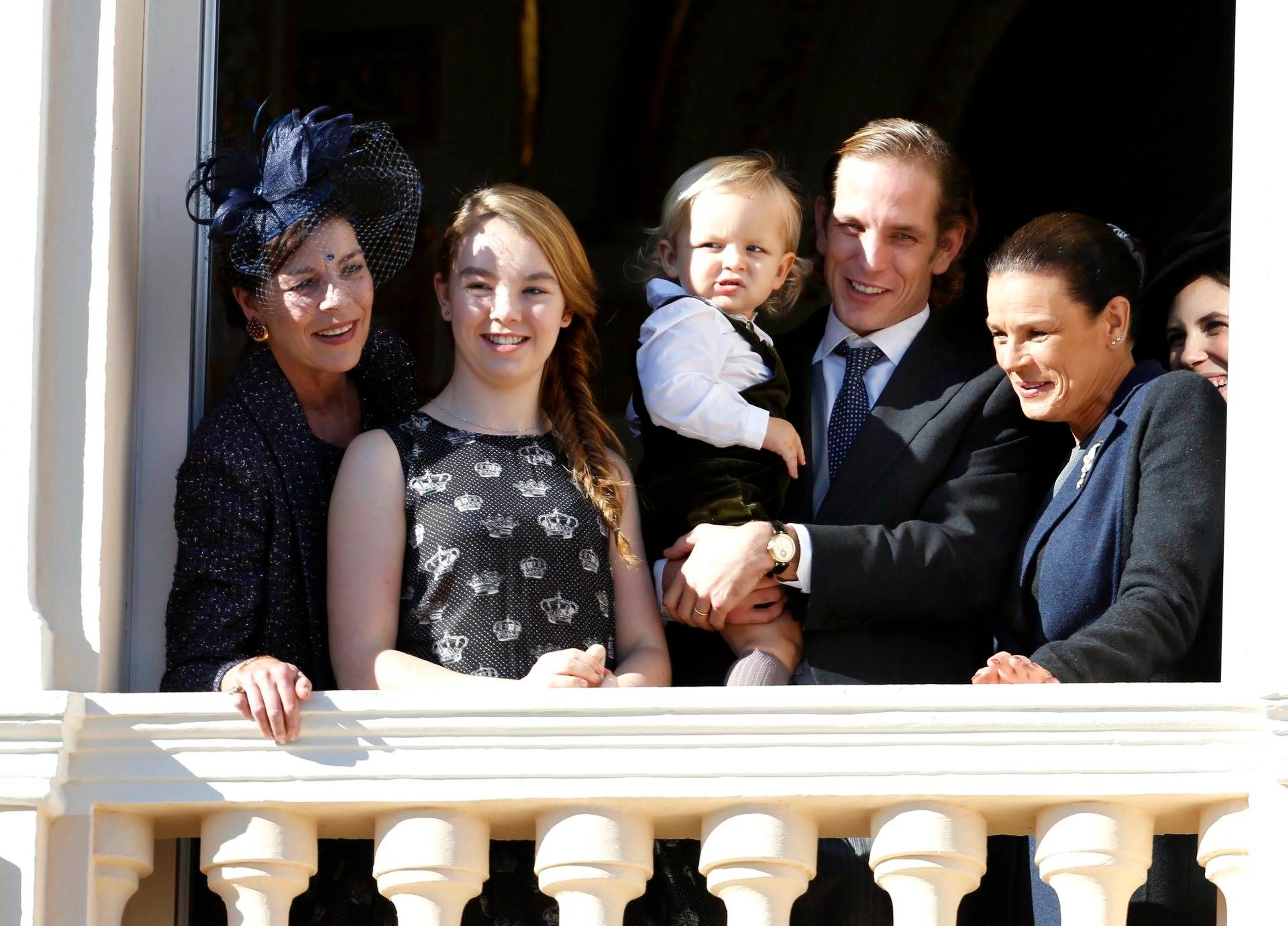 2014 - Prinses Caroline tijdens de viering van de nationale feestdag met dochter prinses Alexandra, kleinzoon Sacha, zoon Andrea en zus prinses Stéphanie.