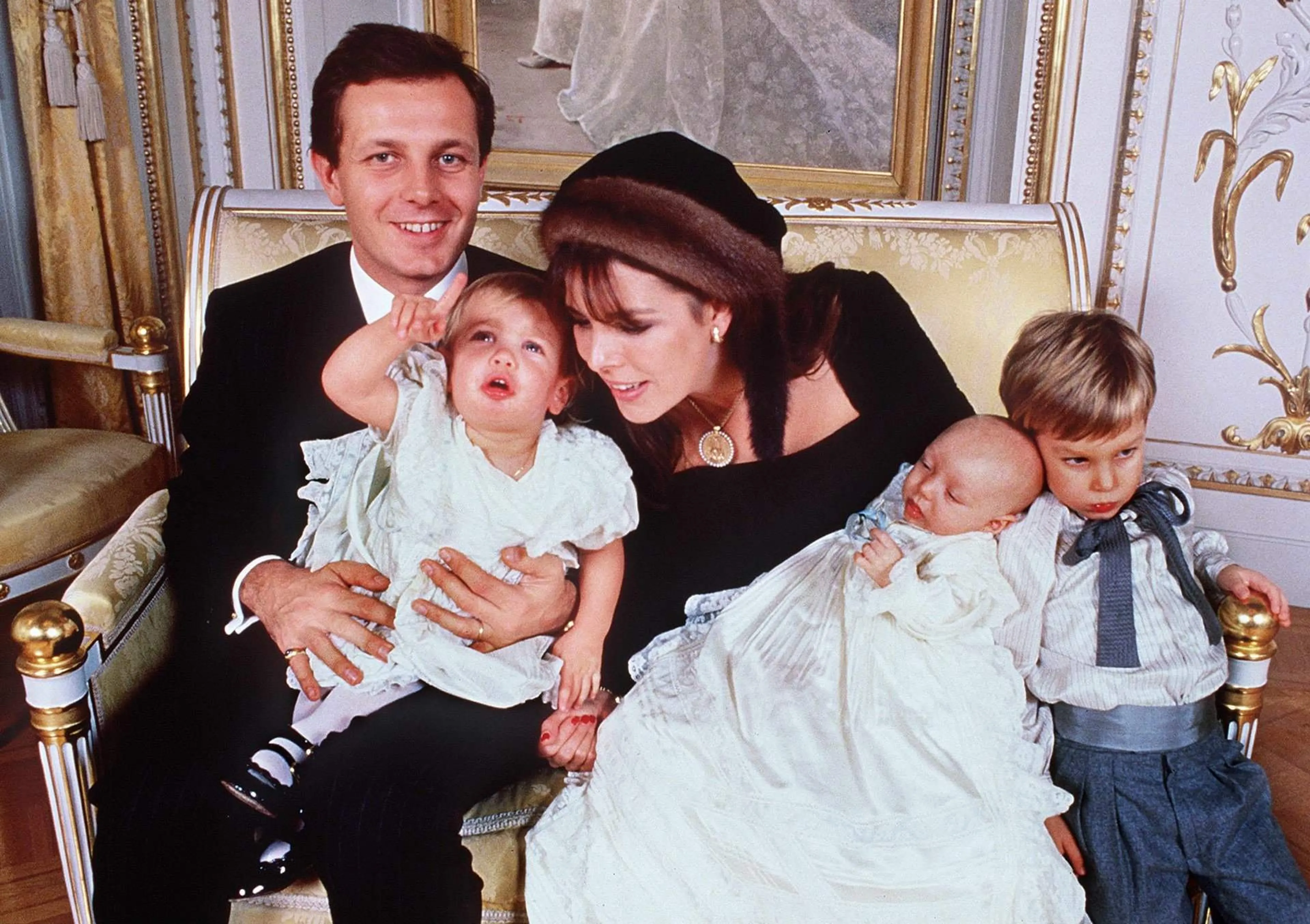1988 - Prinses Caroline en Stefano Casiraghi met kinderen Charlotte, Pierre en Andrea
