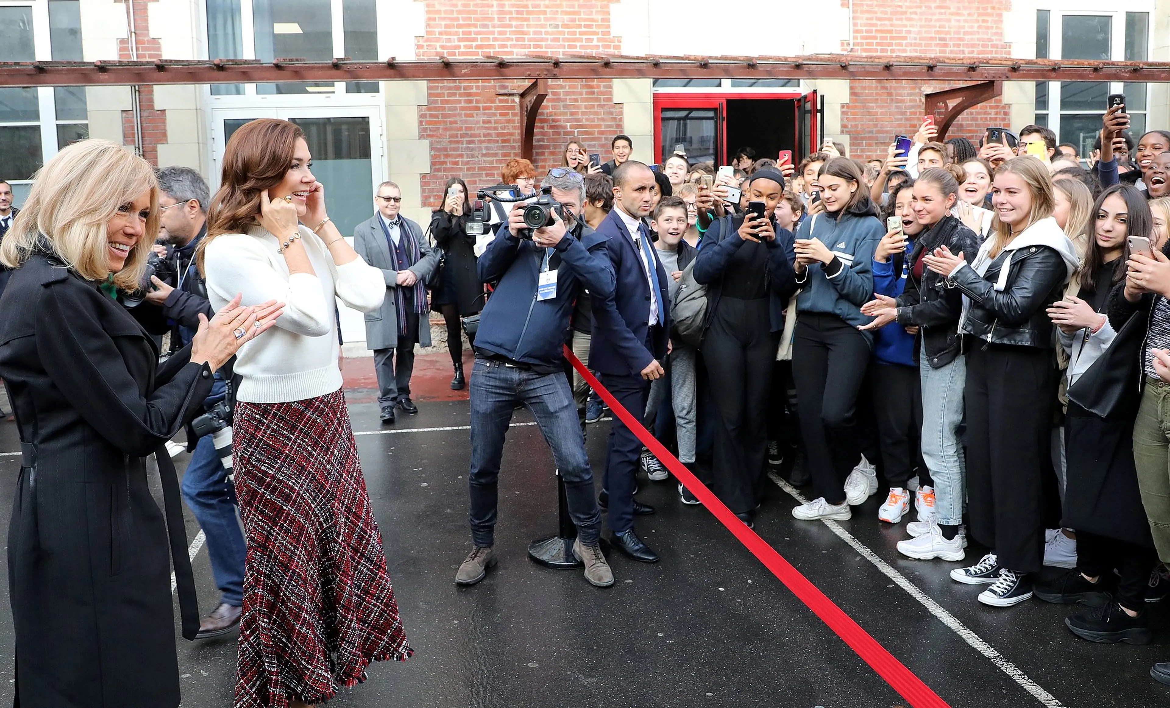 Op de derde dag van het bezoek aan Parijs bezocht prinses Mary vandaag met presidentsvrouw Brigitte Macron een school in Parijs.