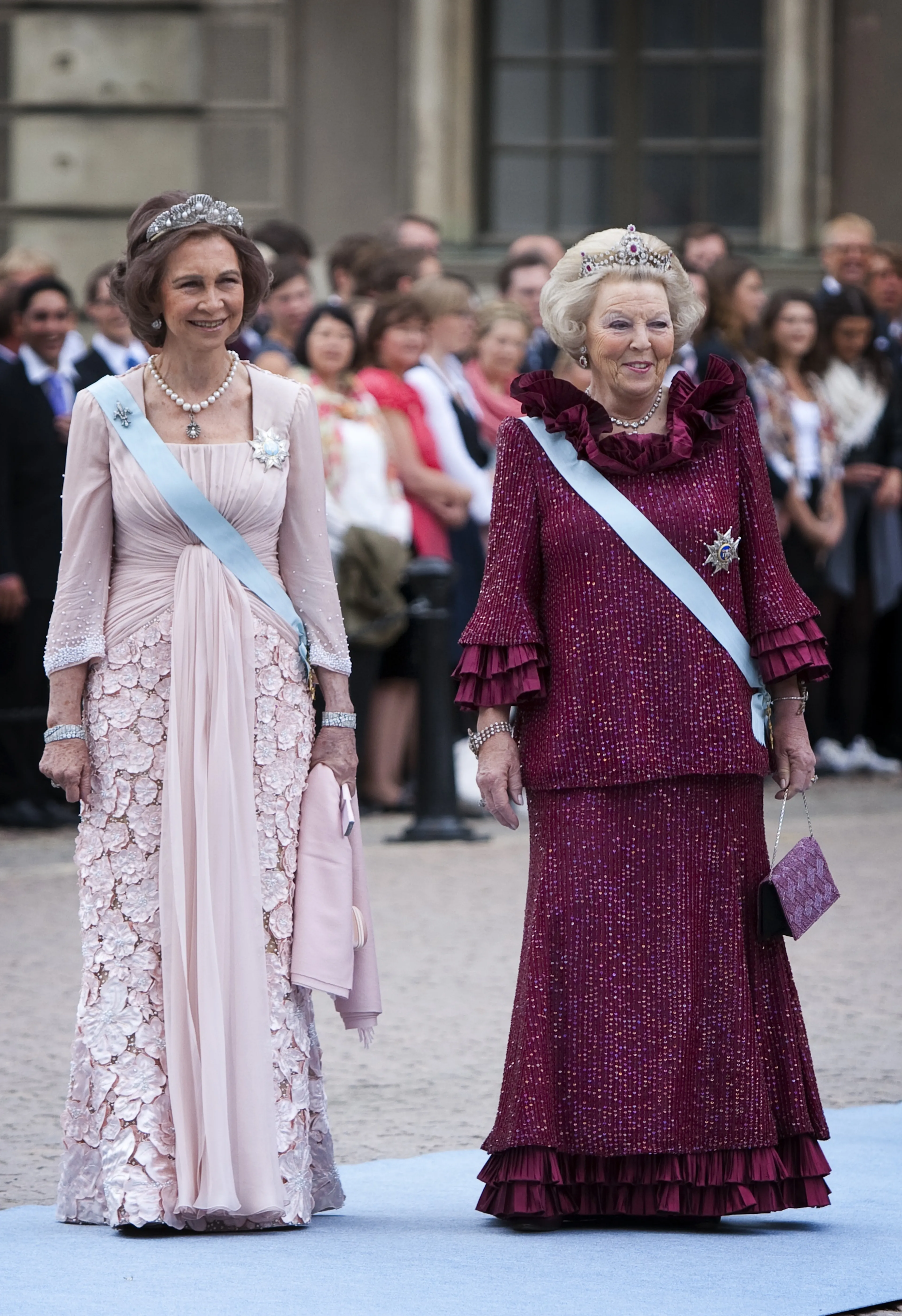 Gelukkig zien de vriendinnen elkaar ook in vrolijkere tijden, zoals tijdens huwelijken. Beatrix en Sofia arriveren zelfs tegelijkertijd bij de kerk in Stockholm om het huwelijk van kroonprinses Victoria en Daniel bij te wonen.