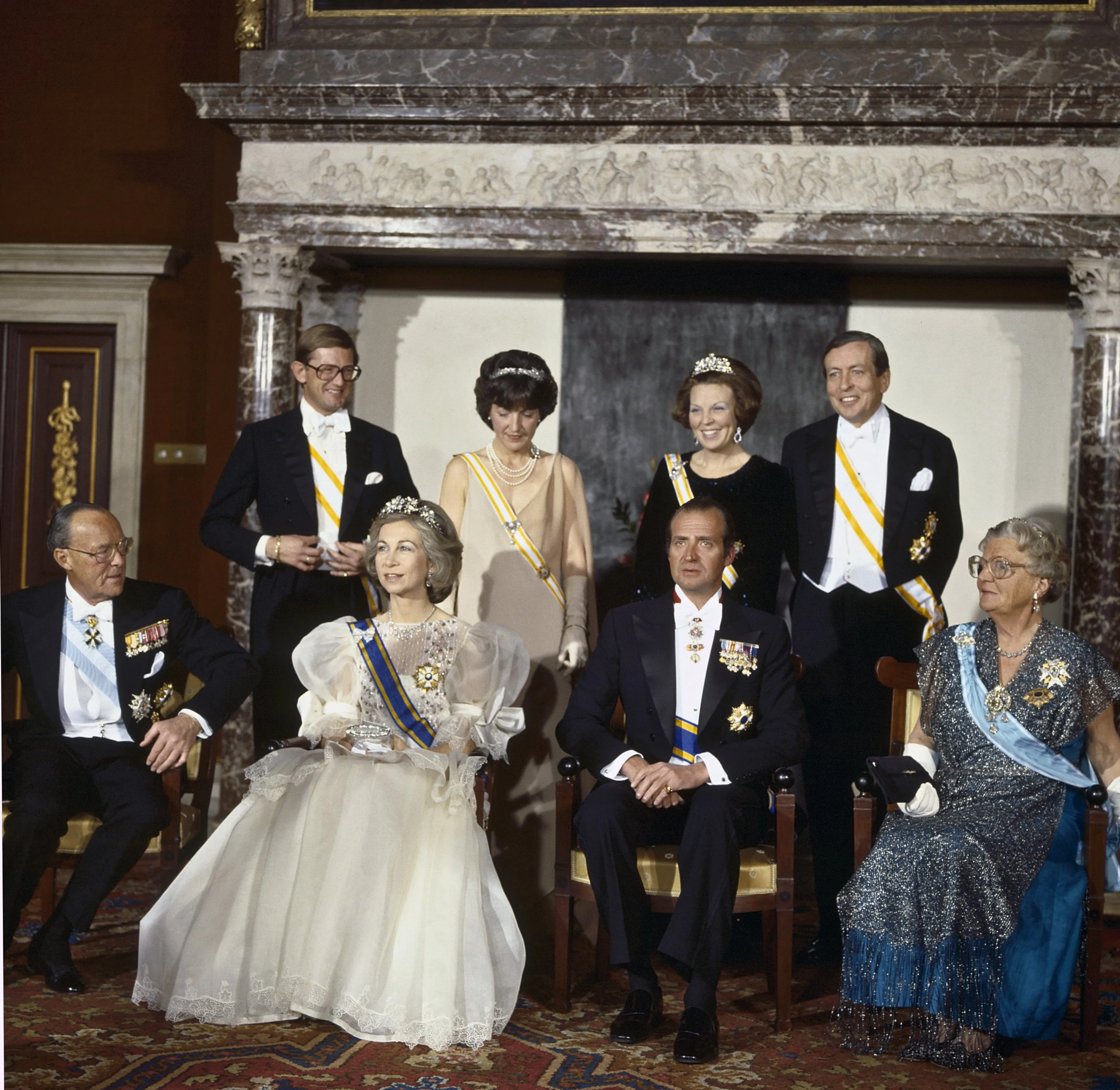 Vijf jaar later brengt Beatrix, dan koningin, een staatsbezoek aan Spanje. Op de eerste dag van het bezoek krijgt Beatrix in het Koninklijk Paleis van koning Juan Carlos en koningin Sofia een galadiner aangeboden. De koninginnen pakken groot uit, door allebei een diadeem en ordes te dragen.