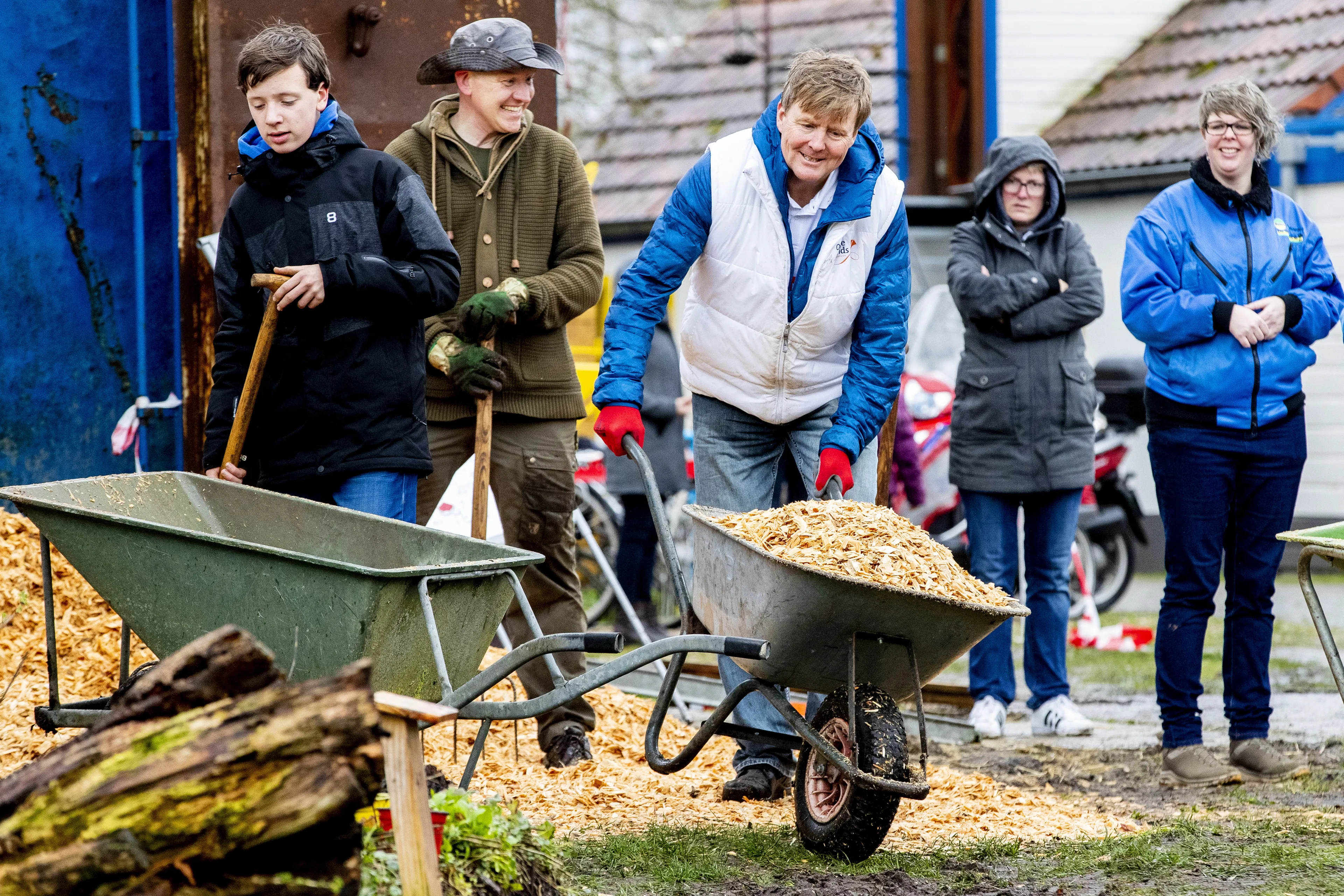 "Het leuke van vrijwilligerswerk is dat je gewoon vaak meerdere mensen bij elkaar hebt die dat niet dagelijks doen, maar wel onder leiding van mensen die weten hoe het moet", zegt koning Willem-Alexander tijdens een persmoment bij NLdoet in 2022. "Het is gezellig, leuk, dat je met elkaar dingen doet die je niet elke dag doet."