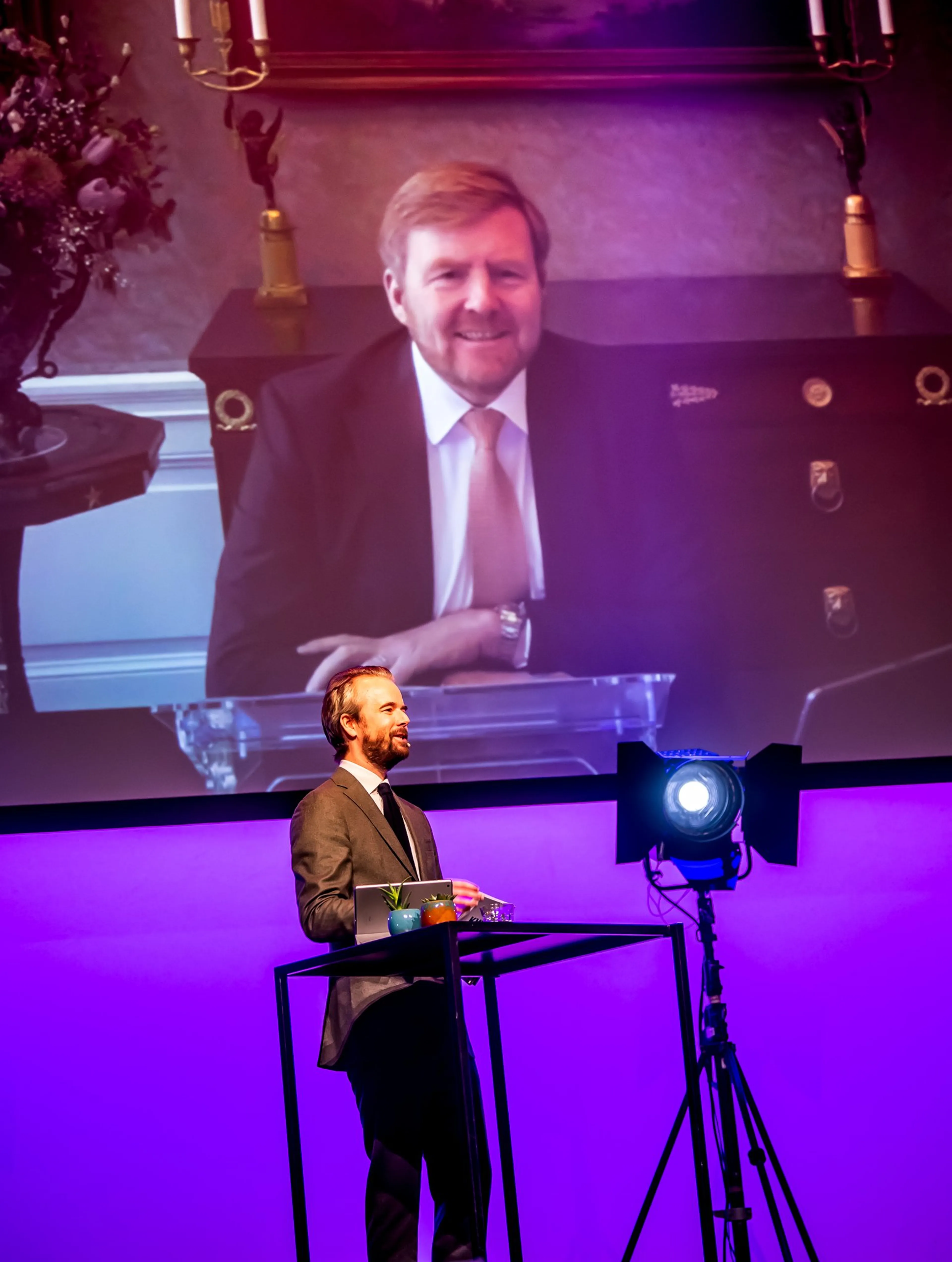 De KVK organiseert sinds 15 jaar dit evenement waarbij innovatieve ondernemers van mkb-bedrijven een onderscheiding krijgen. Dit jaar staat vanwege de pandemie ondernemen in crisistijd centraal. "Het verschilt erg per sector maar velen hebben het extreem moeilijk", aldus de vorst. "In deze corona-tijd gaat er heel veel aandacht uit naar ondernemers die in zwaar weer verkeren. En dat is uitermate terecht."