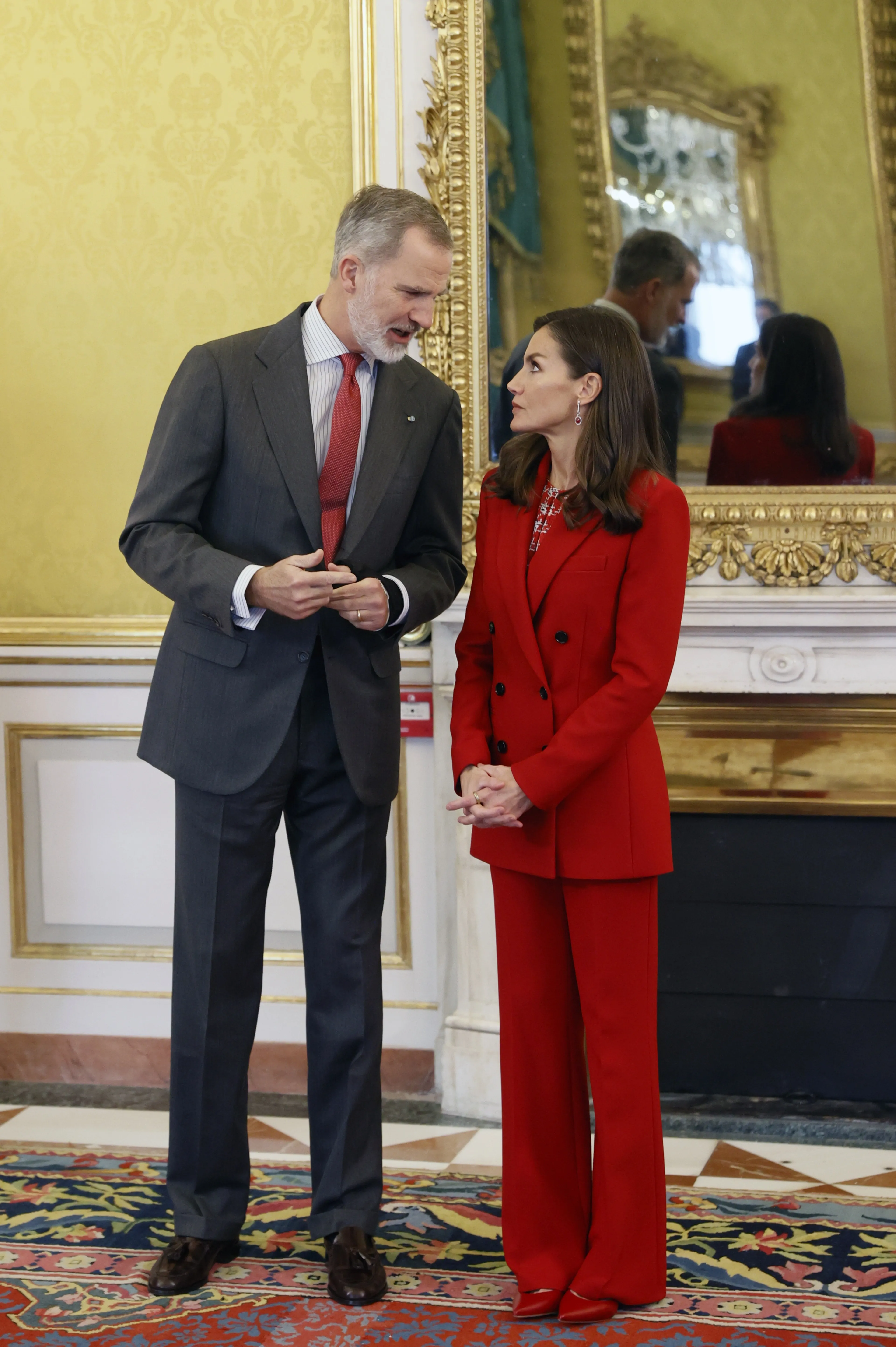 De Spaanse koningin zien we vaak in knalroze outfits. Toch heeft ze al een aantal keer haar favoriete kleur ingewisseld voor het rood en dat staat haar net zo prachtig. Vooral het felrode pak is favoriet, kijk maar!
