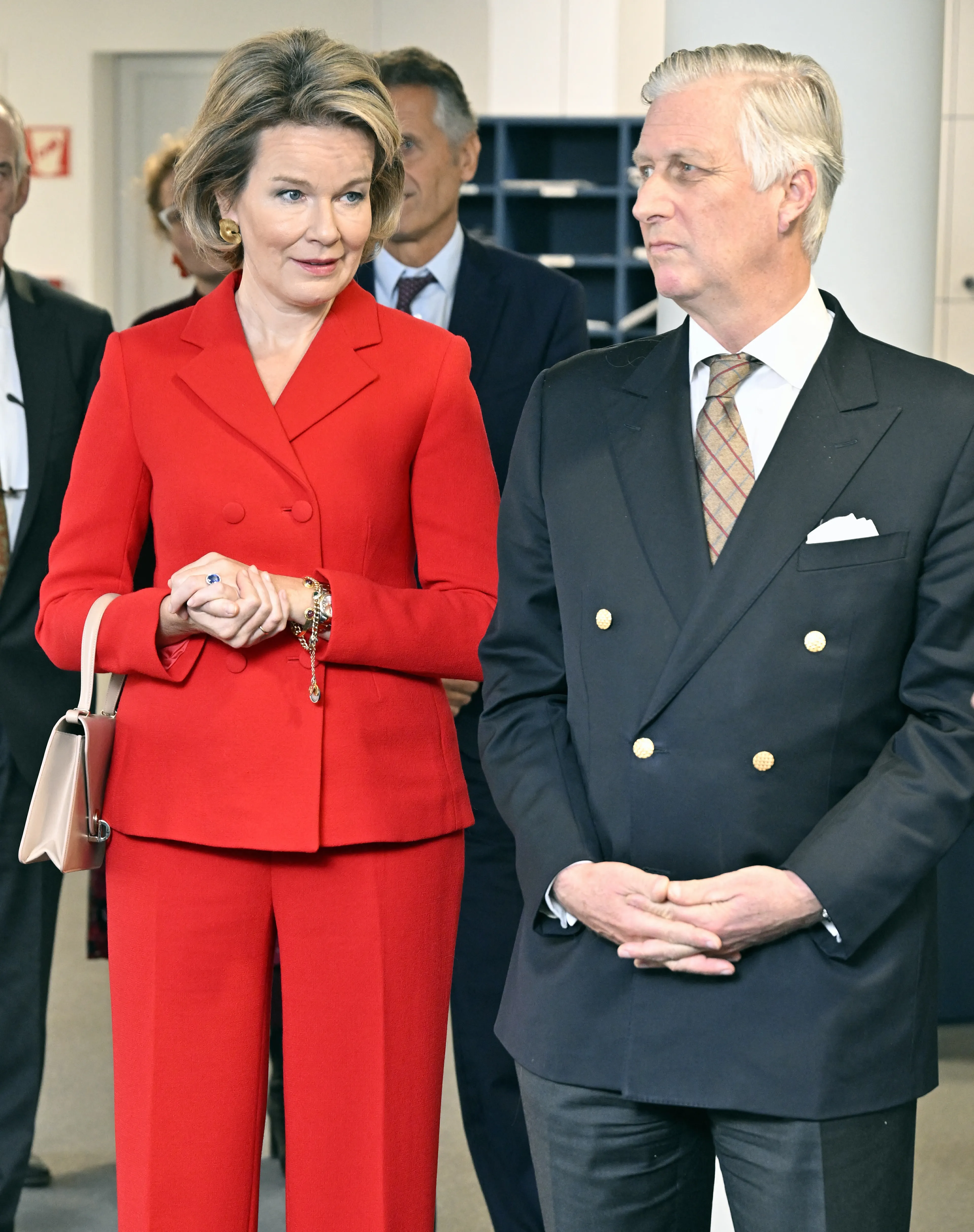 Waar de Belgische koningin Mathilde normaliter voor wat zachtere kleuren gaat, pakt ze de afgelopen weken juist uit met rode outfits. Van een knalrood pak tot aan een stoer leren jack in de kleur: we zagen het allemaal voorbij komen.