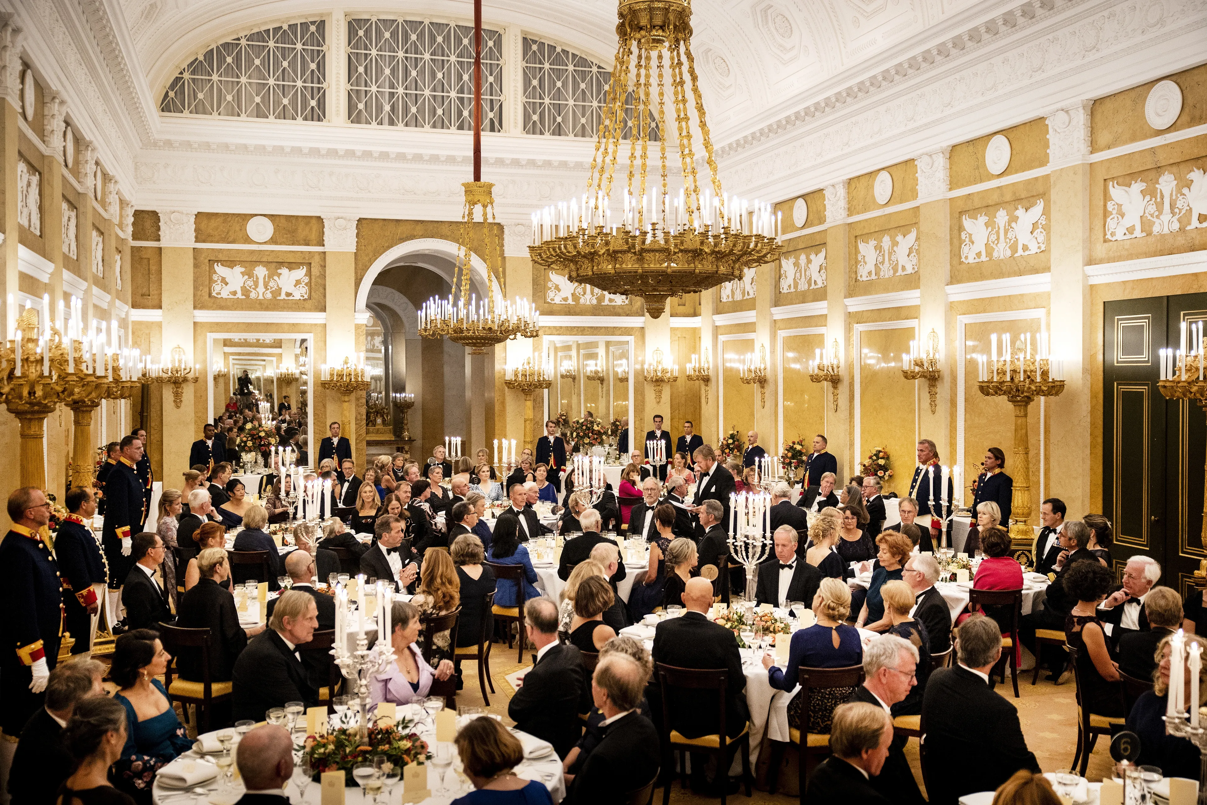 Koning Willem-Alexander, koningin Máxima en prinses Amalia hebben woensdagavond de leden van de Raad van State een diner aangeboden. Het was voor de prinses de eerste keer dat ze gastvrouw was van het tweejaarlijkse diner op Paleis Noordeinde in Den Haag.