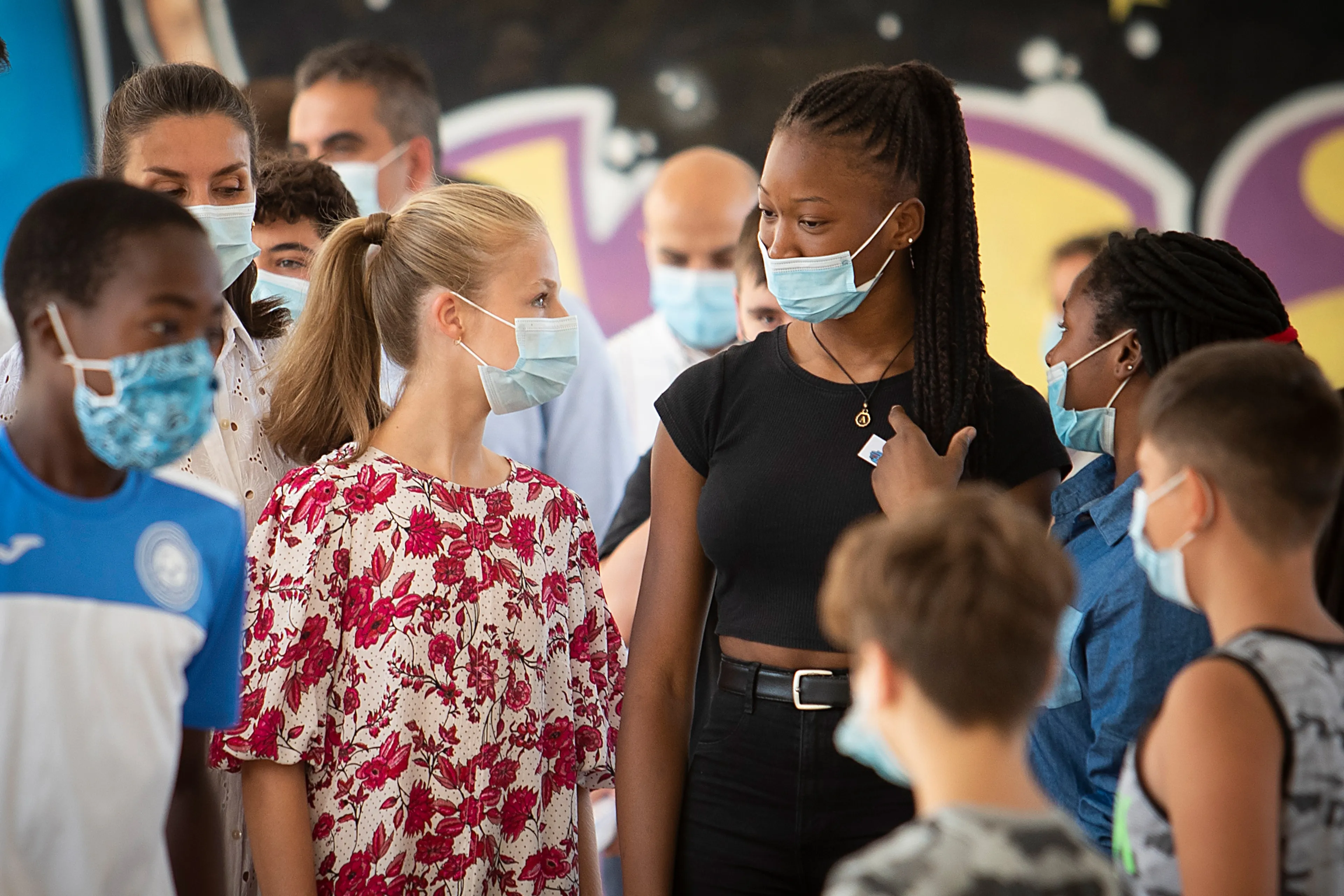 Het koninklijke viertal kreeg een rondleiding van de directeur door de klaslokalen en faciliteiten. Zo zagen ze ook de loodgieterswerkplaats, waar jongeren aan het werk waren. Na de toer door het centrum werden Felipe, Letizia, Leonor en Sofia begroet door sponsoren, medewerkers en jongeren.