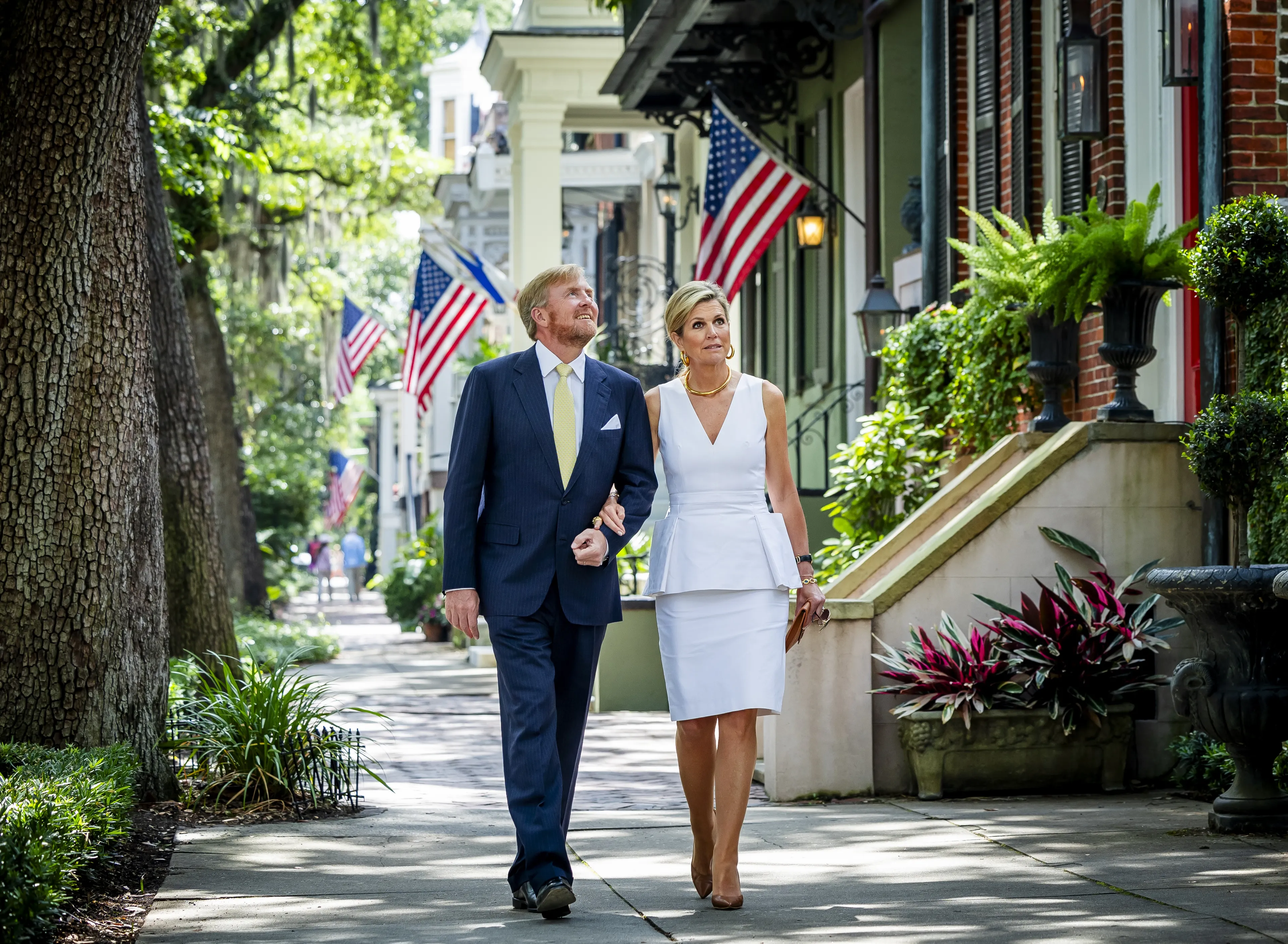 De tweede dag van het werkbezoek begon in de stad Savannah, waar het koningspaar een wandeling maakte door het historische centrum. Ook bekeken ze de populaire toeristische attractie Jones Street, dat zich leent voor het maken van prachtige foto's. Koning Willem-Alexander en koningin Máxima lieten zich dan ook uitgebreid vastleggen op deze fotogenieke plek. Wat een plaatje!