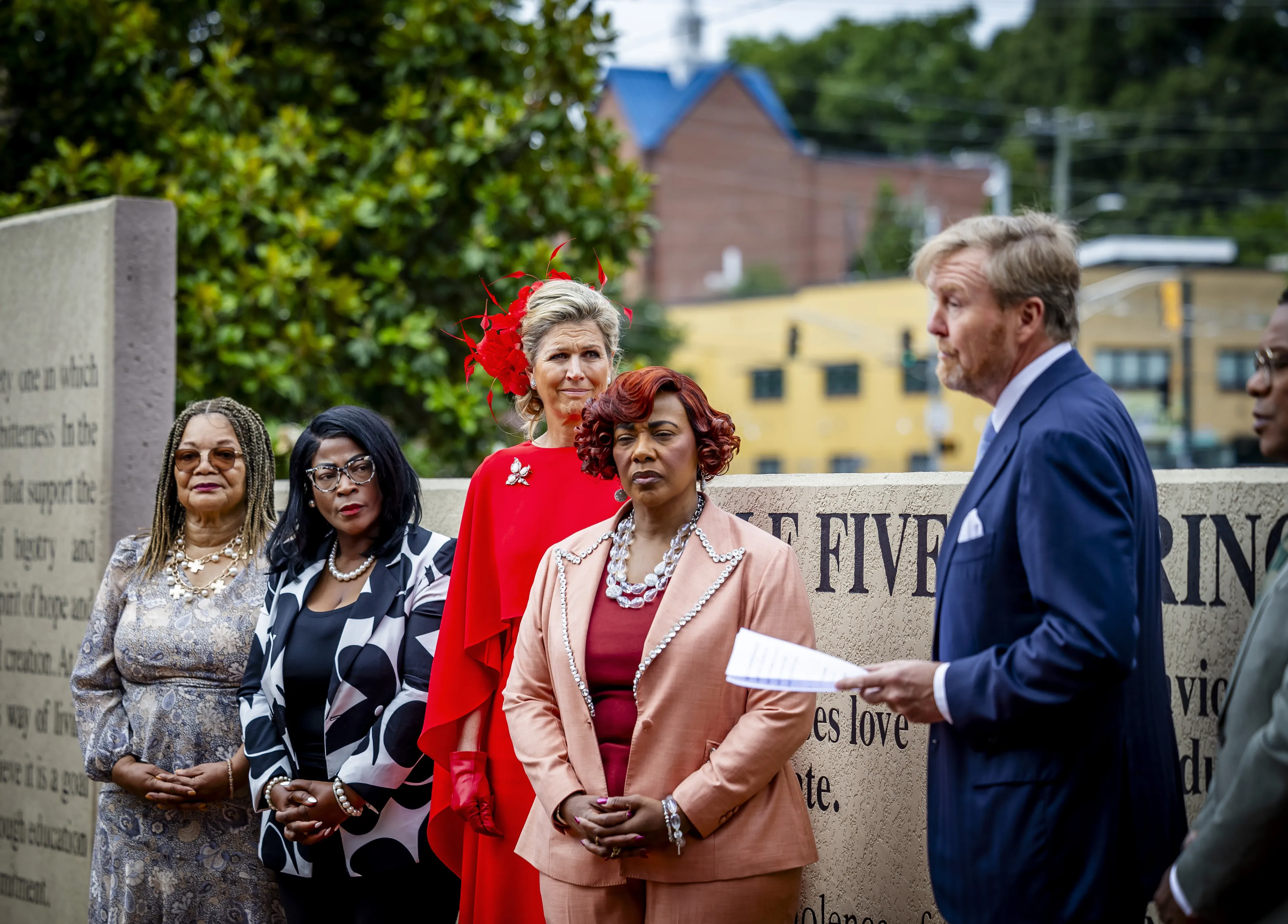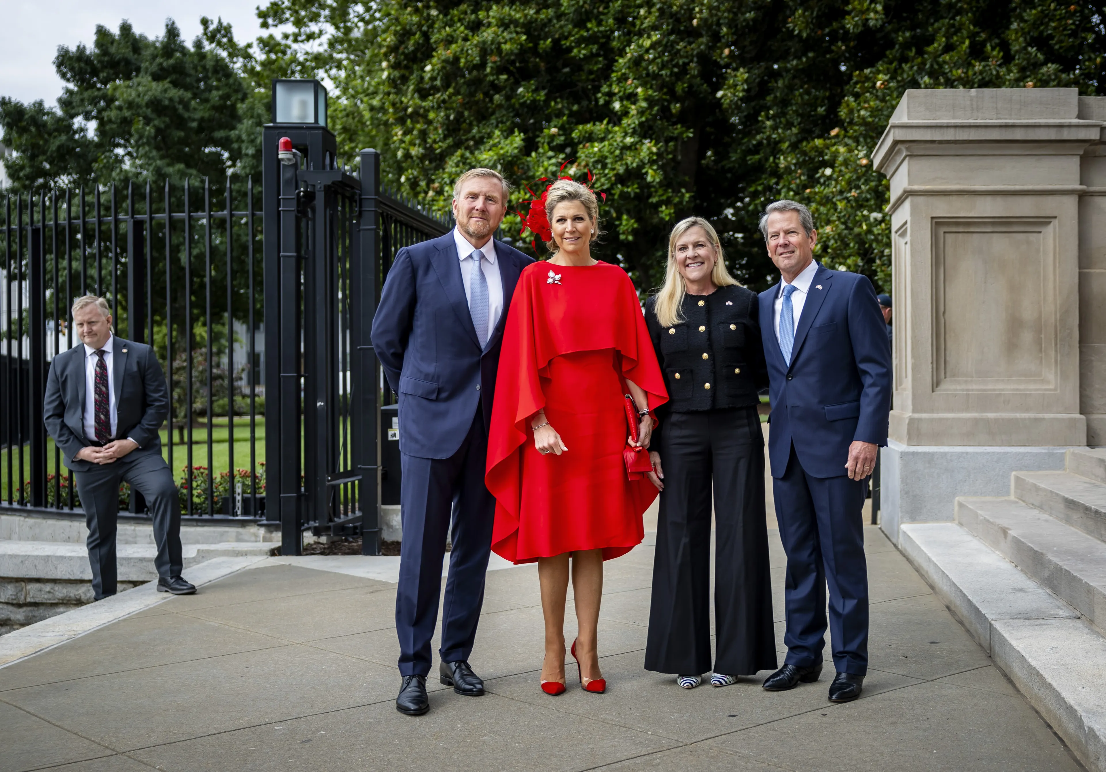 In Atlanta werden de koning en koningin ontvangen door de gouverneur van de staat Georgia in het State Capitol. Ze spraken daar met hem en CEO's van Nederlandse bedrijven over economische samenwerking, voornamelijk op het gebied van duurzame logistiek. Koningin Máxima droeg op de eerste dag van het werkbezoek een vuurrode capejurk van modehuis Natan, die ze eerder droeg tijdens het staatsbezoek aan Oostenrijk in 2022. Daarbij droeg ze een haardecoratie in dezelfde kleur, die we eerder hebben gezien op Prinsjesdag 2002.