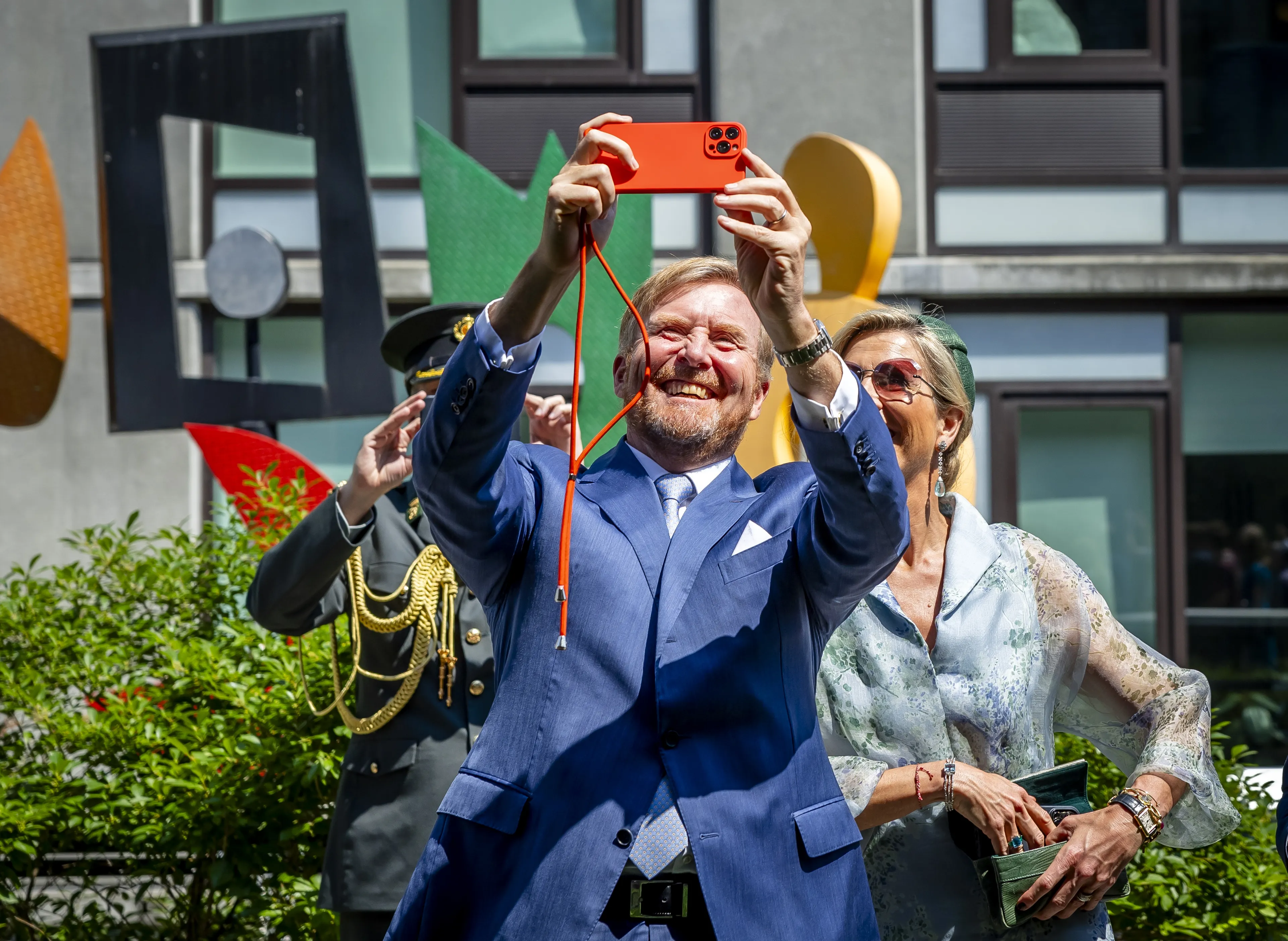 Koning Willem-Alexander en koningin Máxima werden de afgelopen vier dagen continu omringd door fotografen, maar toch wilde Máxima dat de koning ook nog even een privéfoto van haar maakte. Voor een appartement poseerde de koningin even voor de telefoon van de koning. "Leuk om te sturen", zei Willem-Alexander tijdens het maken van de foto.