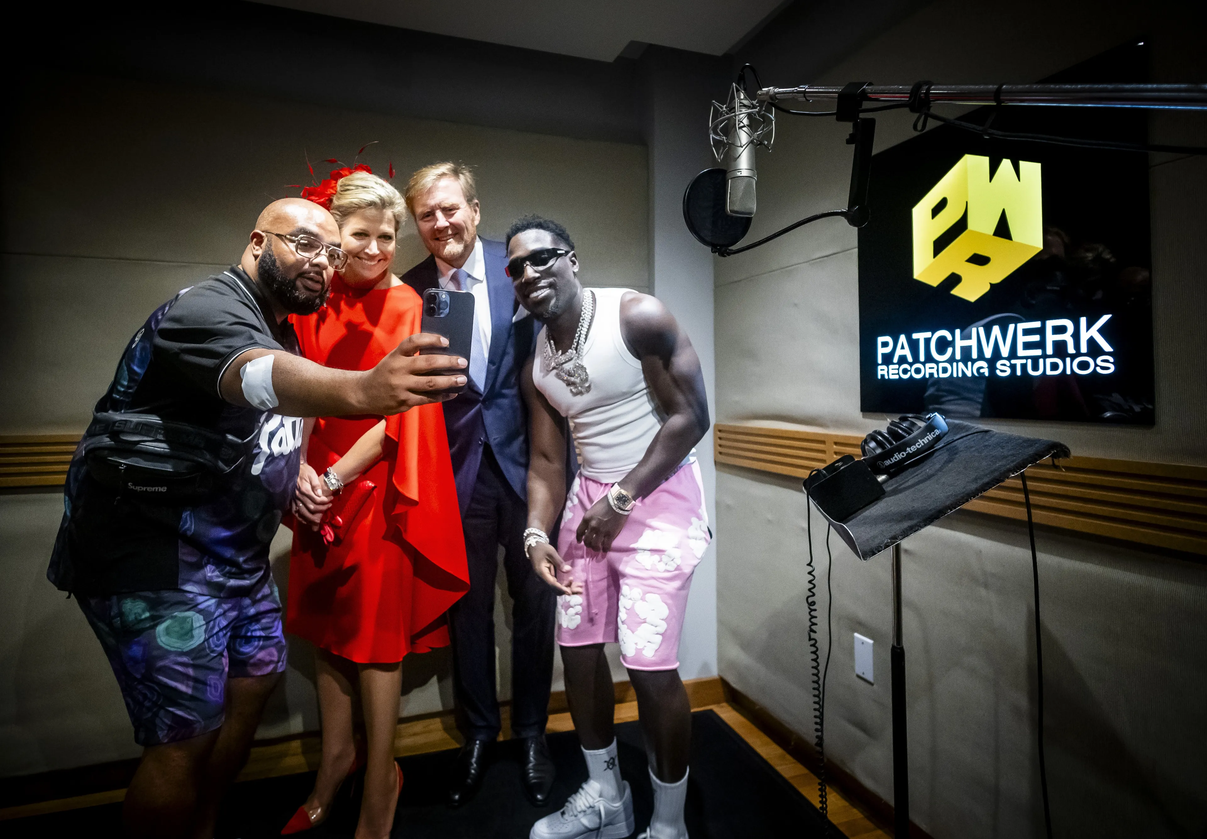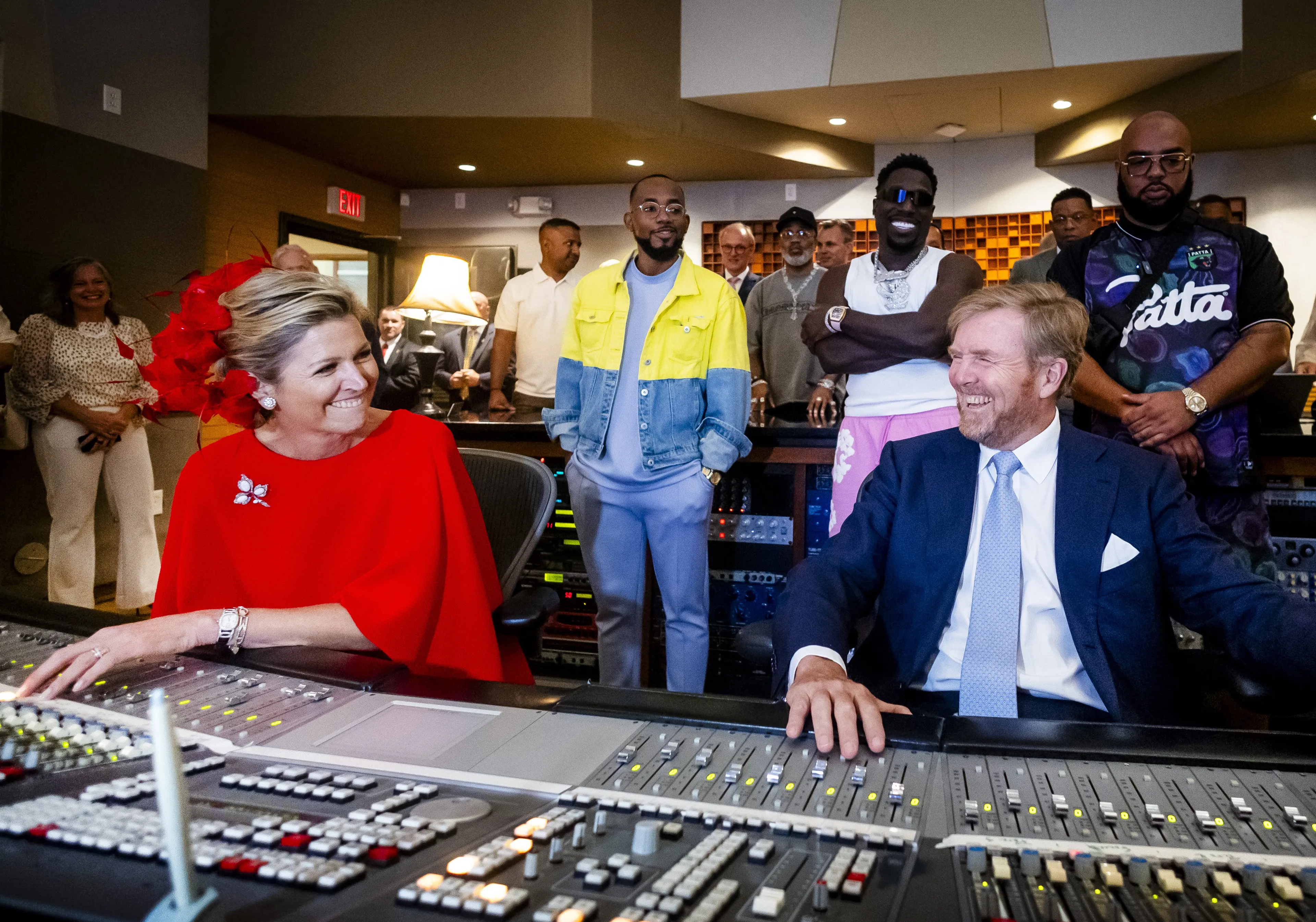 Tijdens het bezoek aan de studio ontmoette het koningspaar de Nederlandse rappers Frenna en Rotjoch. "De groeten van onze kinderen", zei koningin Máxima na een gesprek met de artiesten. Rapper Frenna reageerde vol verbazing op de opmerking. "Ja? Luisteren ze naar mijn muziek?" Willem-Alexander en Máxima antwoordden vervolgens een volmondige 'ja'. Volgens de koning zijn vooral prinses Alexia en haar vriendinnen helemaal gek van de rapper. "Oh, dat is nice. Nice om te horen, man", concludeerde Frenna vrolijk.